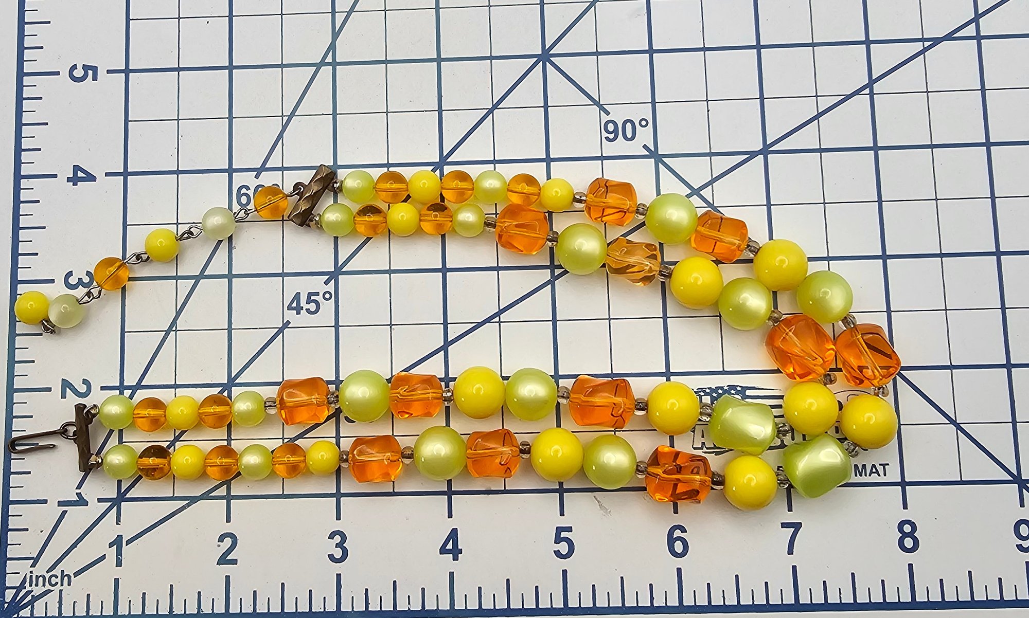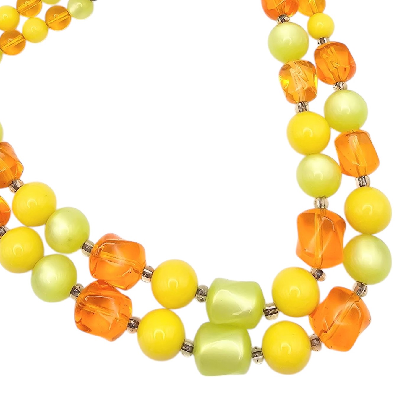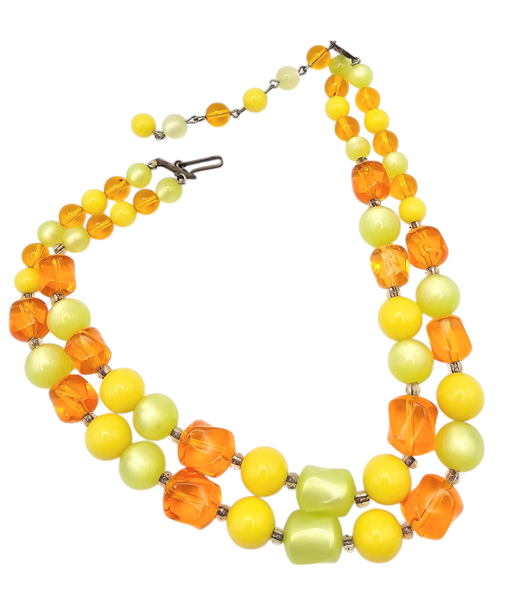 Vintage Green Yellow Orange Moonglow Lucite Bead 2 Strand Necklace