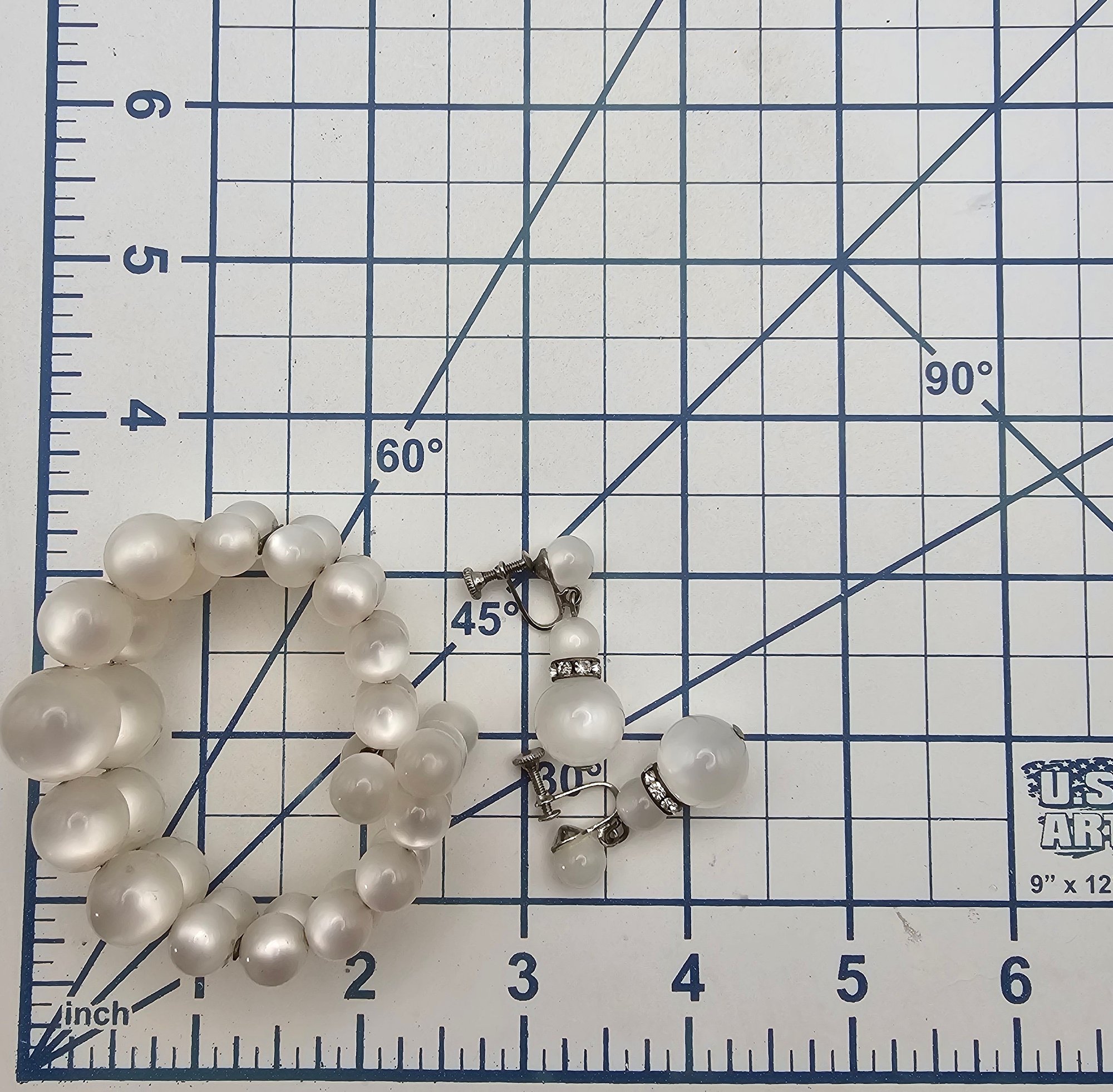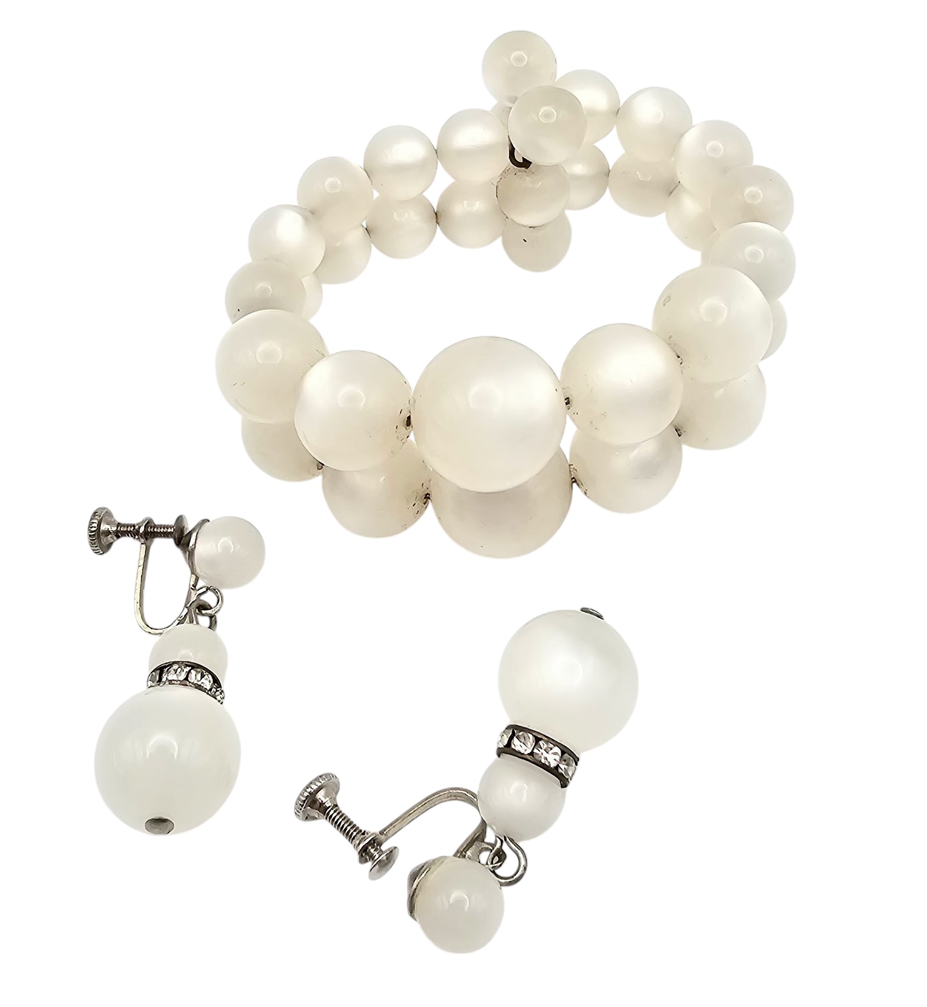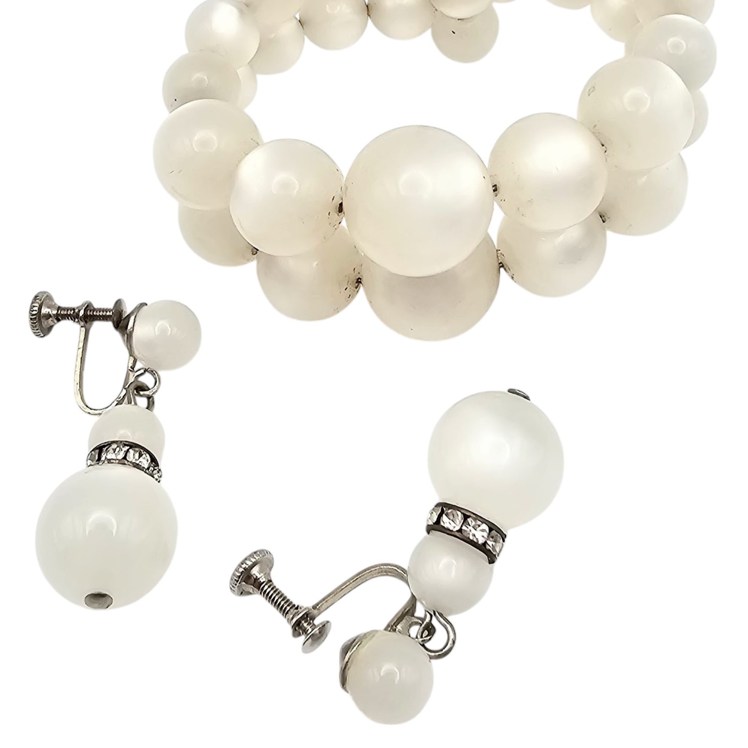 Vintage White Moonglow Lucite Bead Bracelet Earrings Set