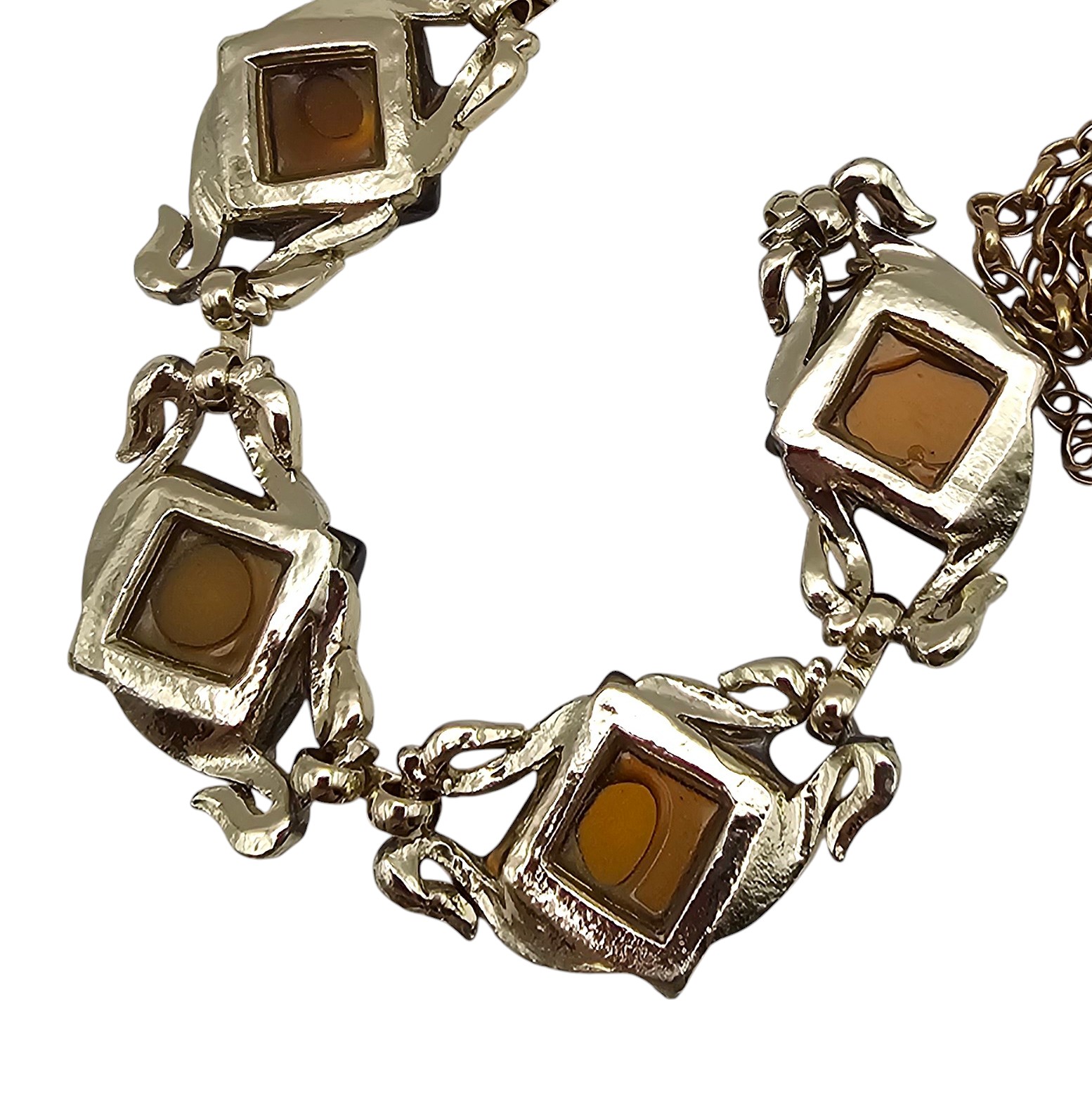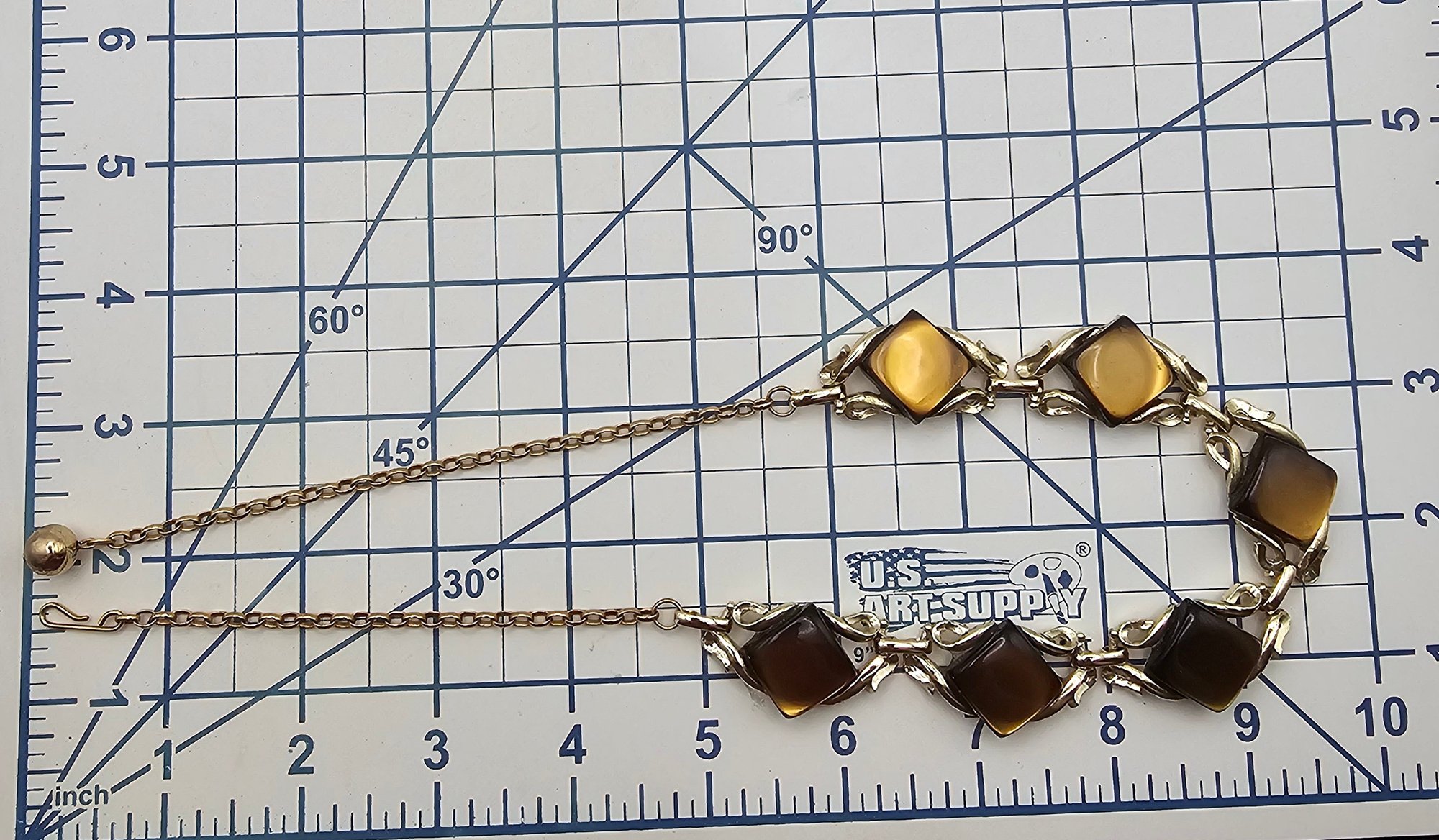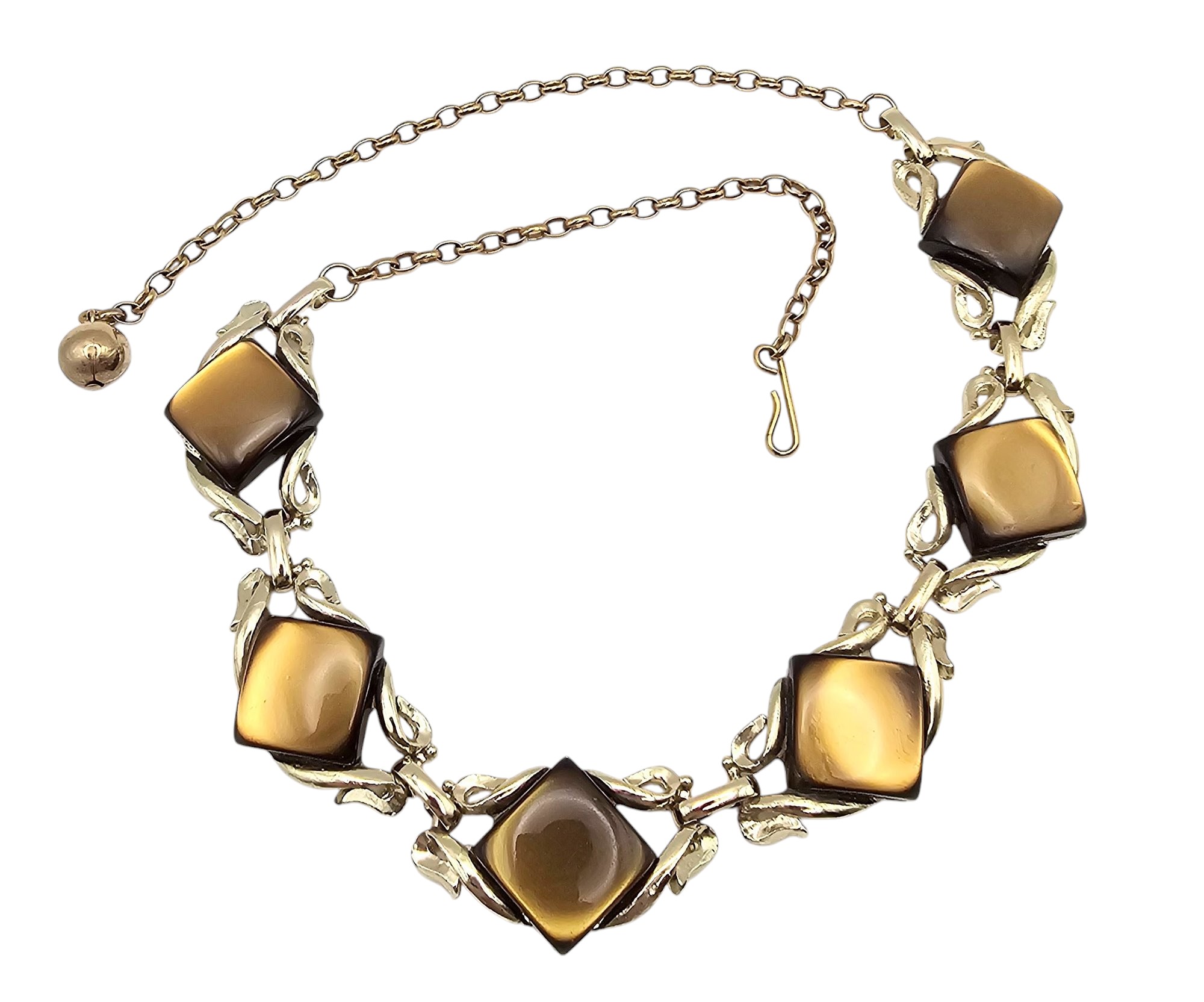 Vintage Tiger’s Eye Color Thermoset/Lucite Moonglow Gold Tone Necklace