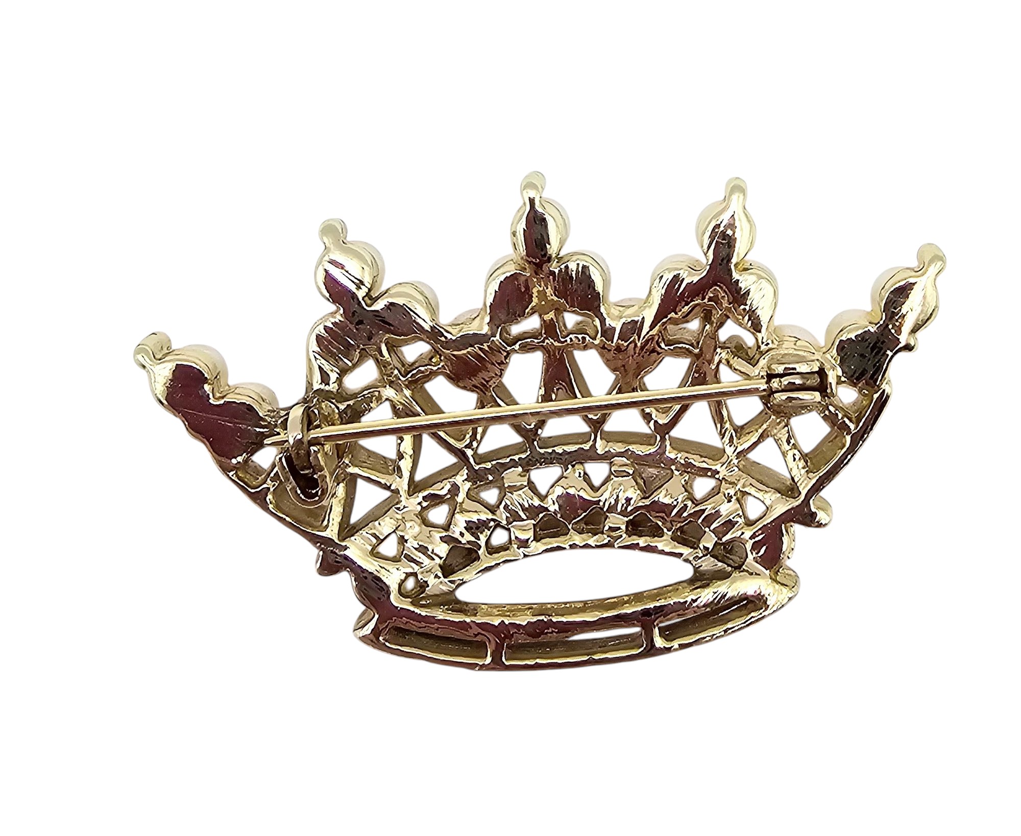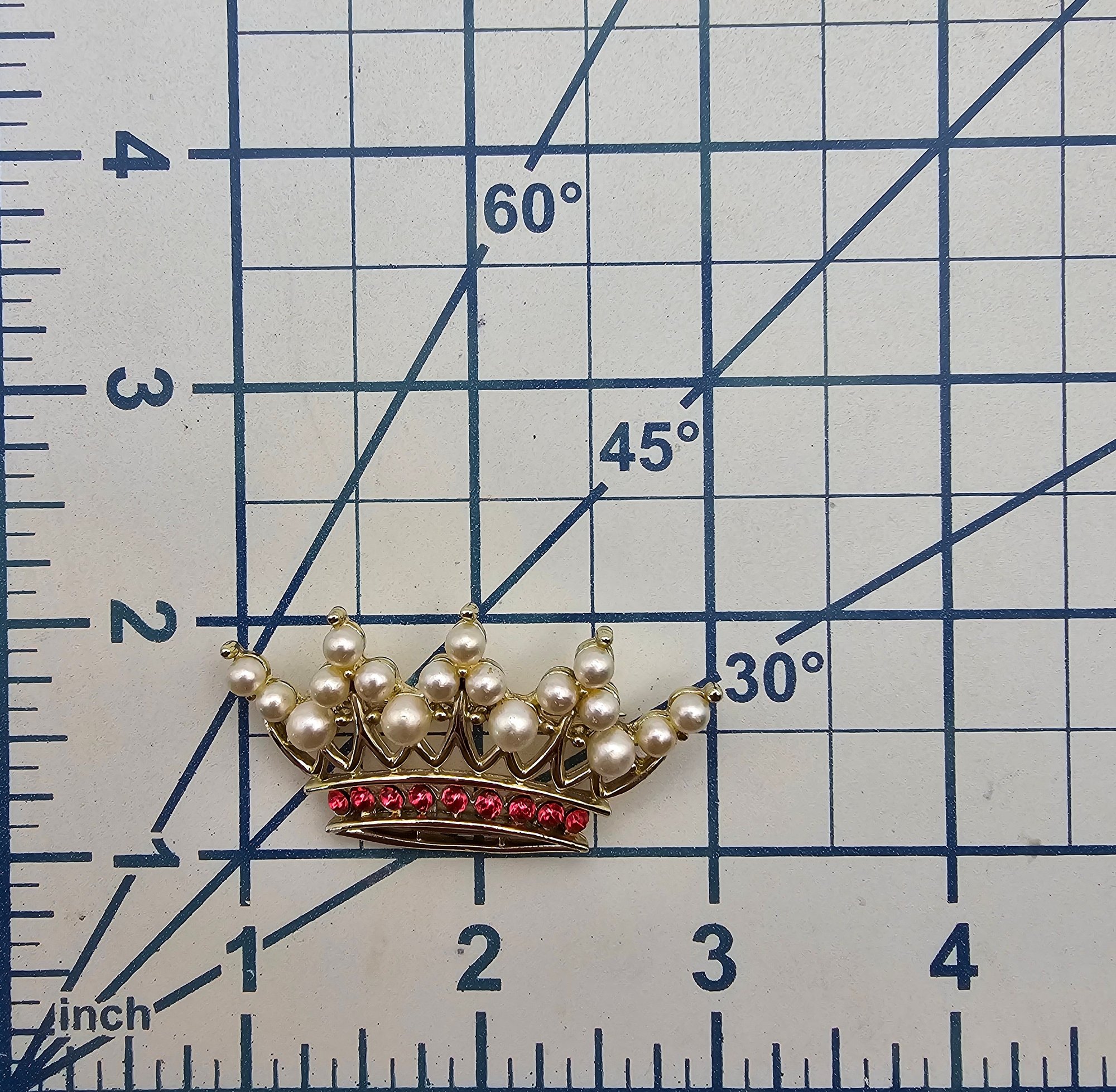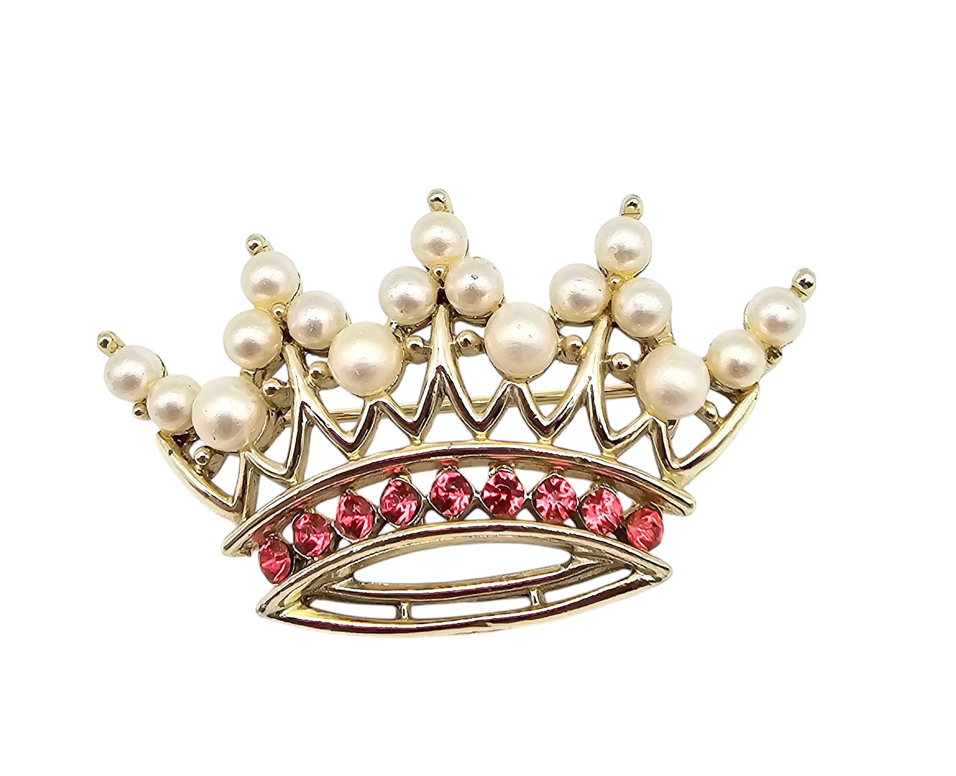 Unsigned Trifari Faux Pearl Red Enamel Gold Tone Crown Brooch