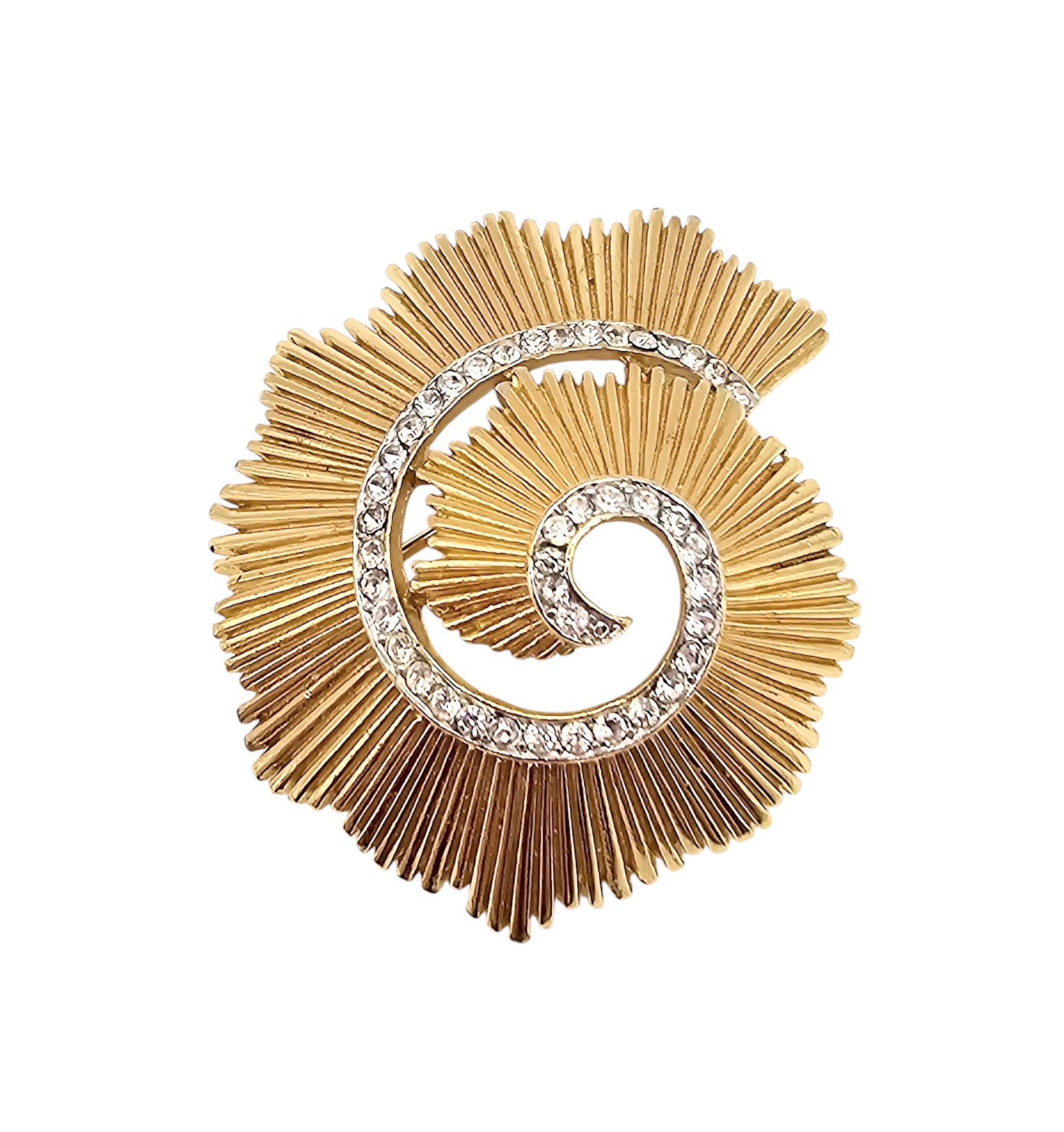 Crown Trifari Vintage Clear Rhinestone Gold Tone