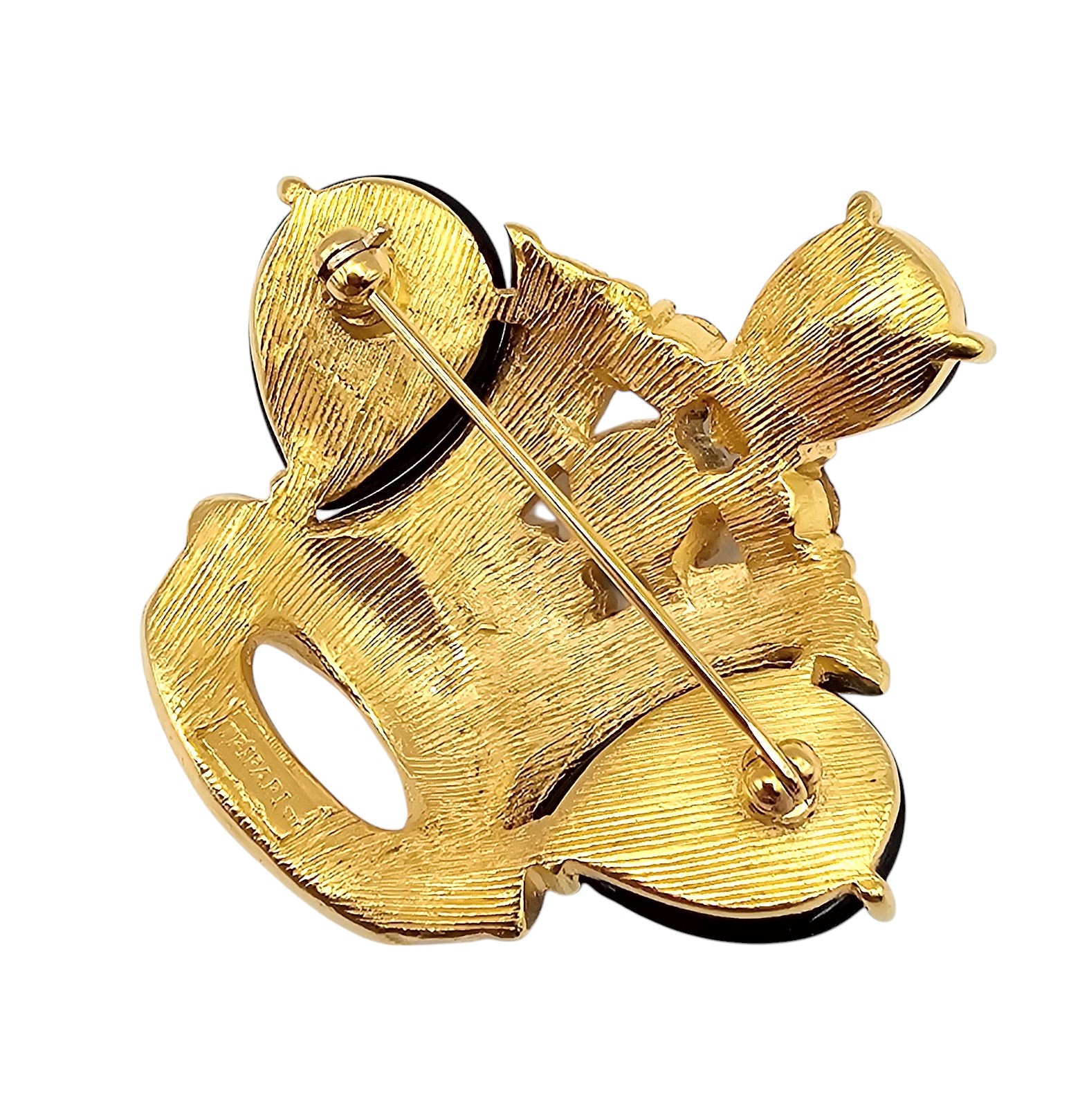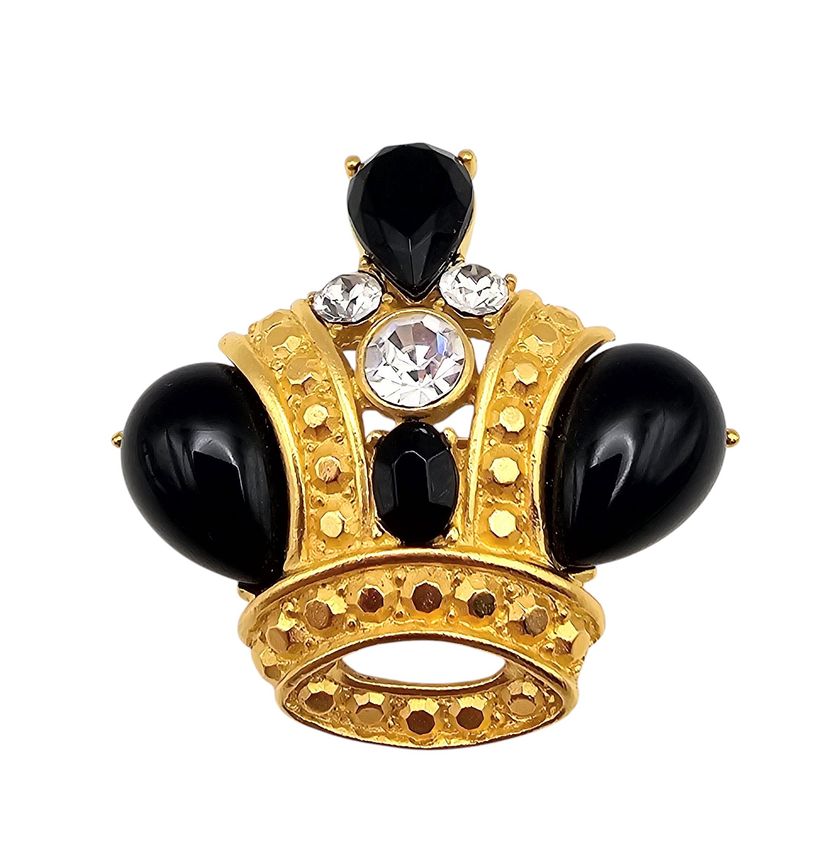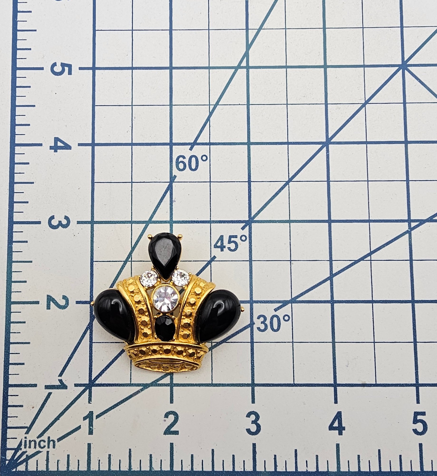 Rare Trifari Black Clear Rhinestone Gold Tone Crown Brooch