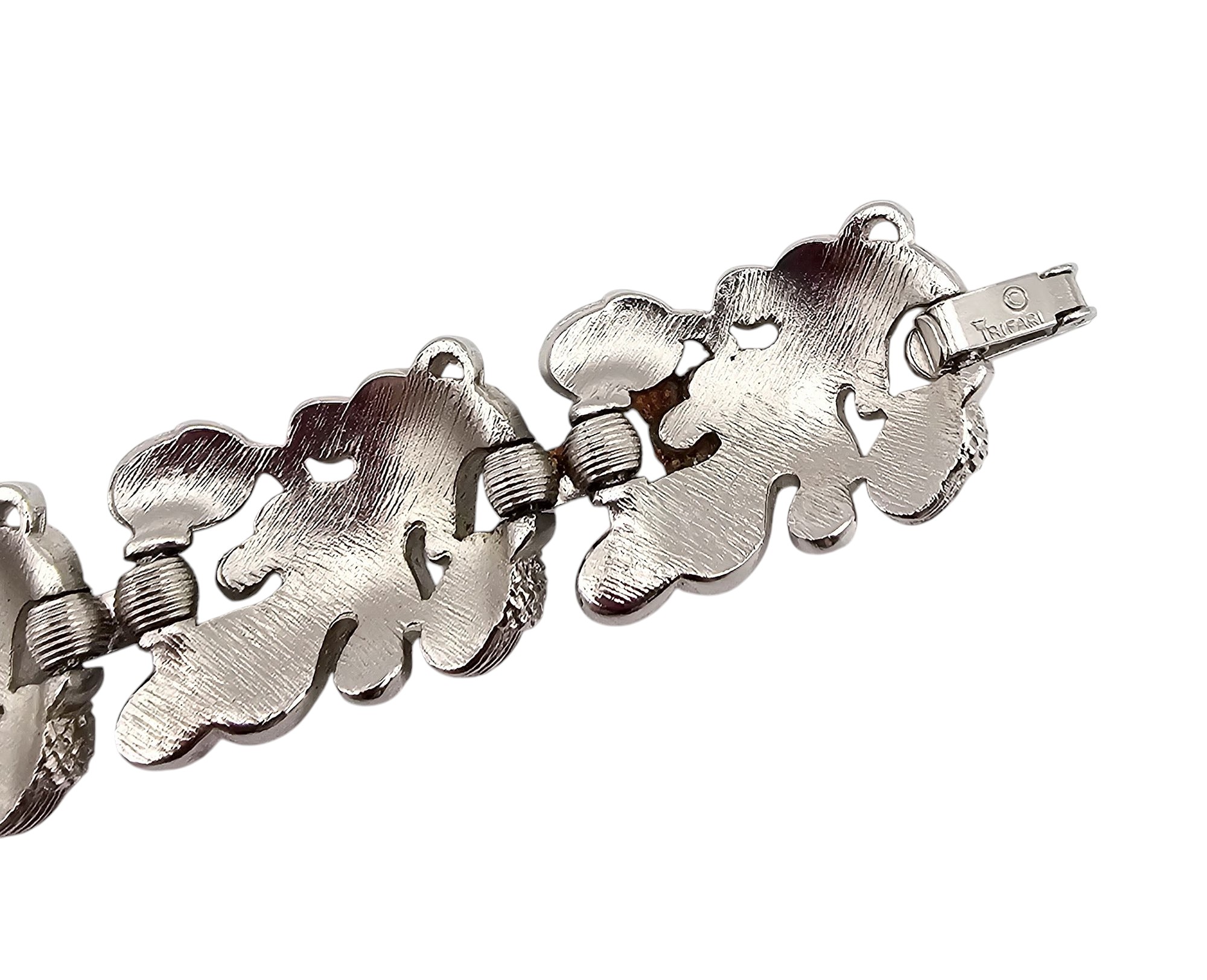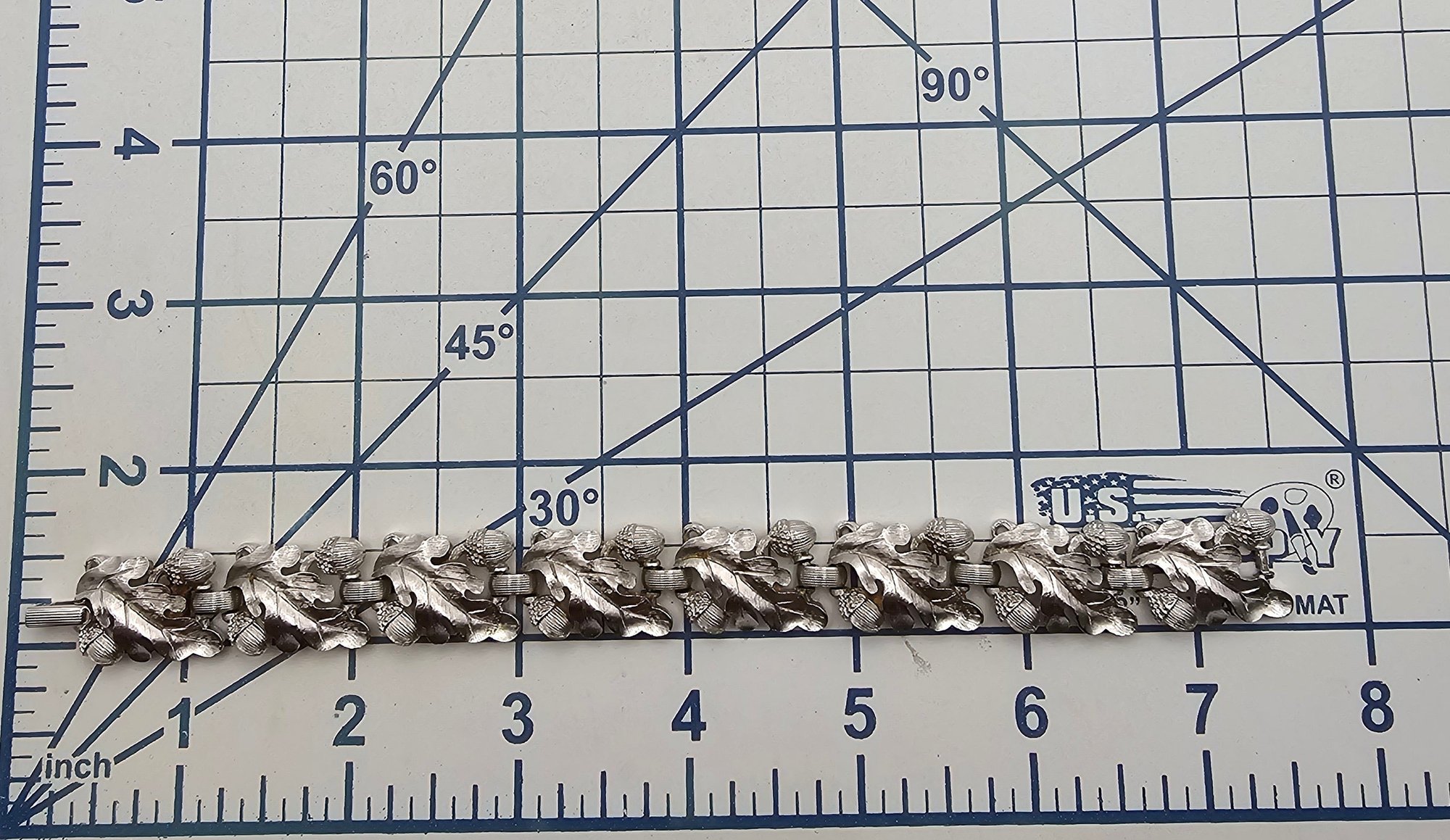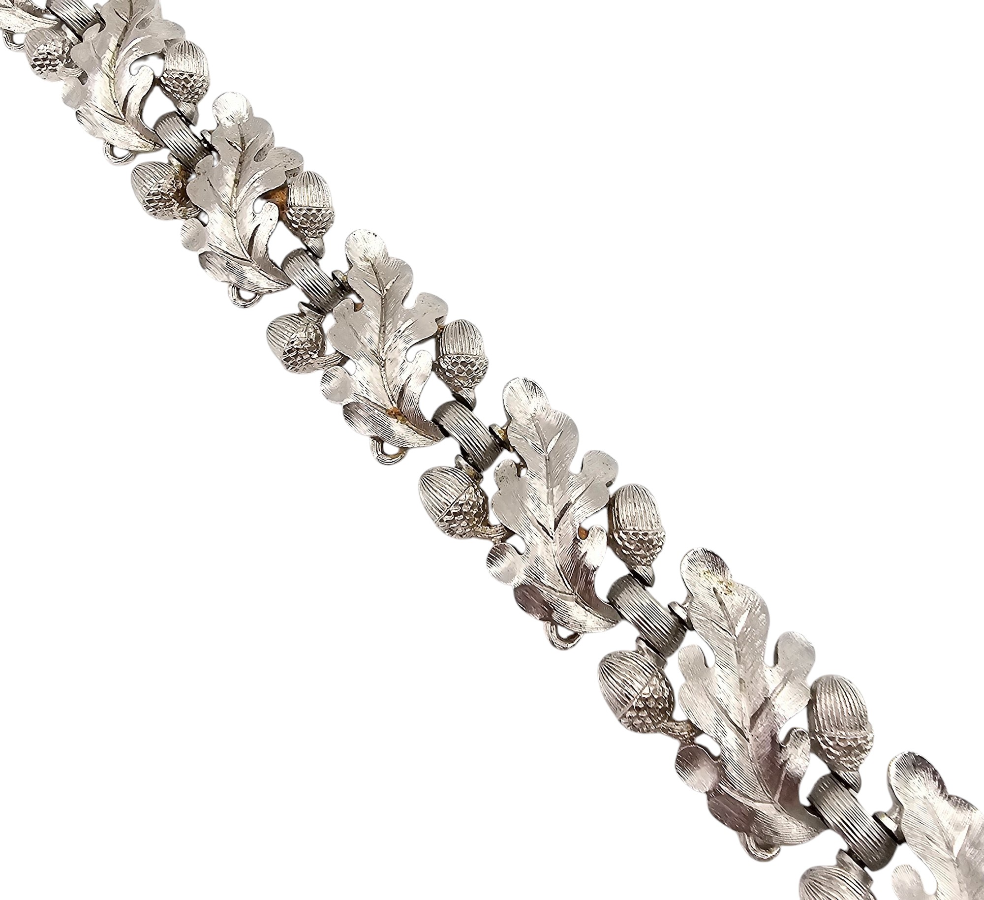 Crown Trifari Oak Leaf Brushed Silver Tone Bracelet
