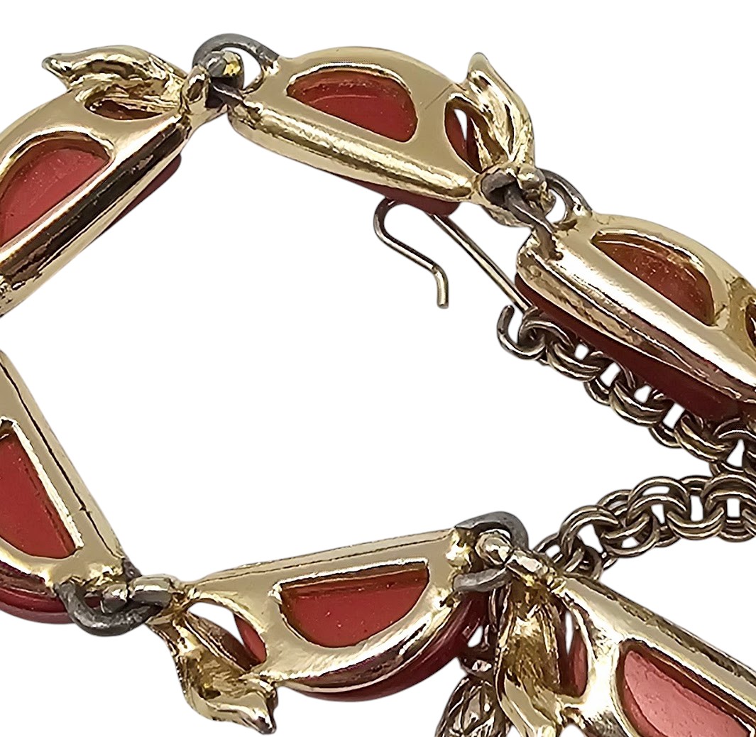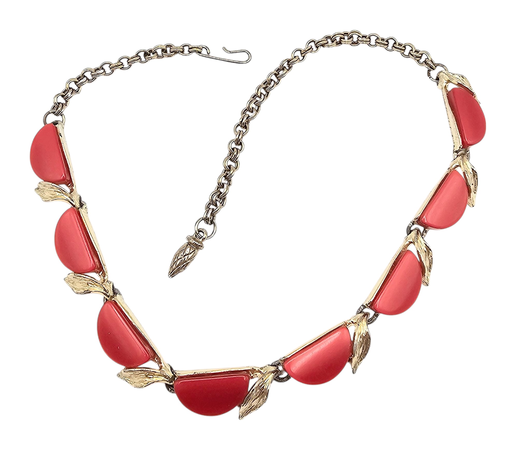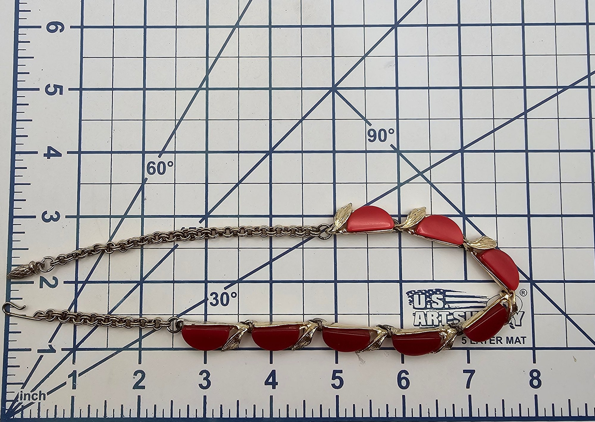 Vintage Red Half Circle Thermoset/Lucite Gold Tone Choker Necklace