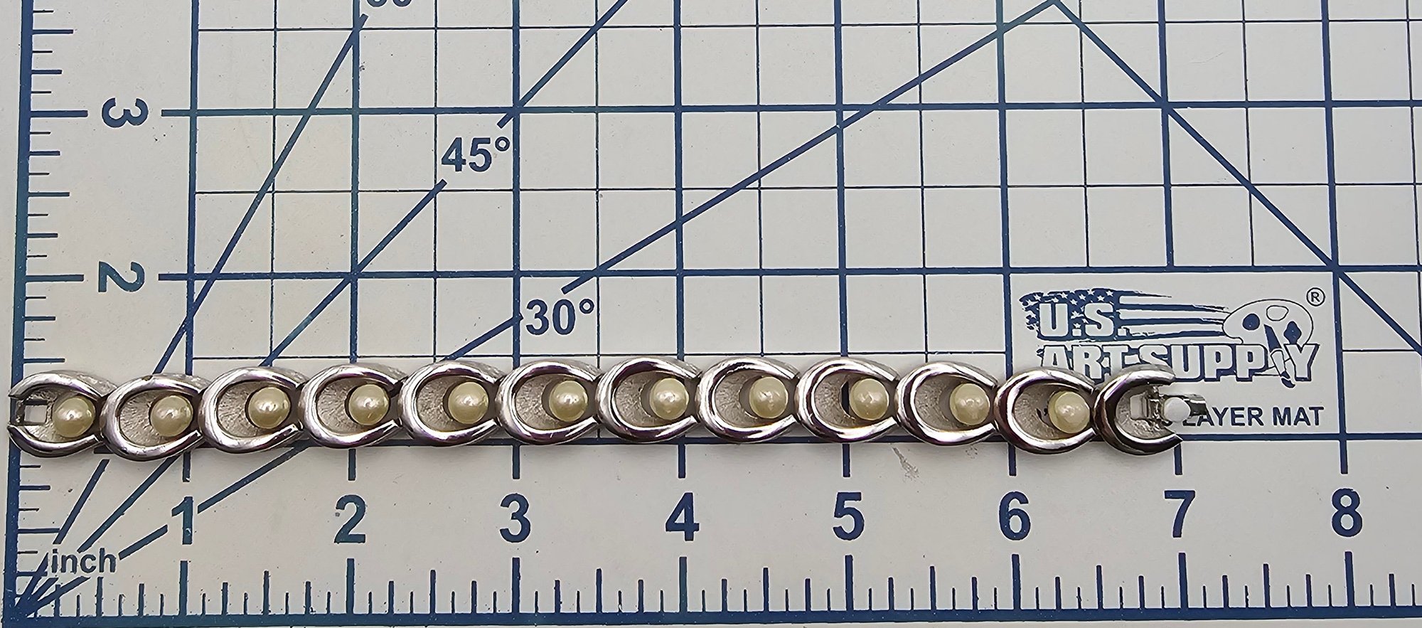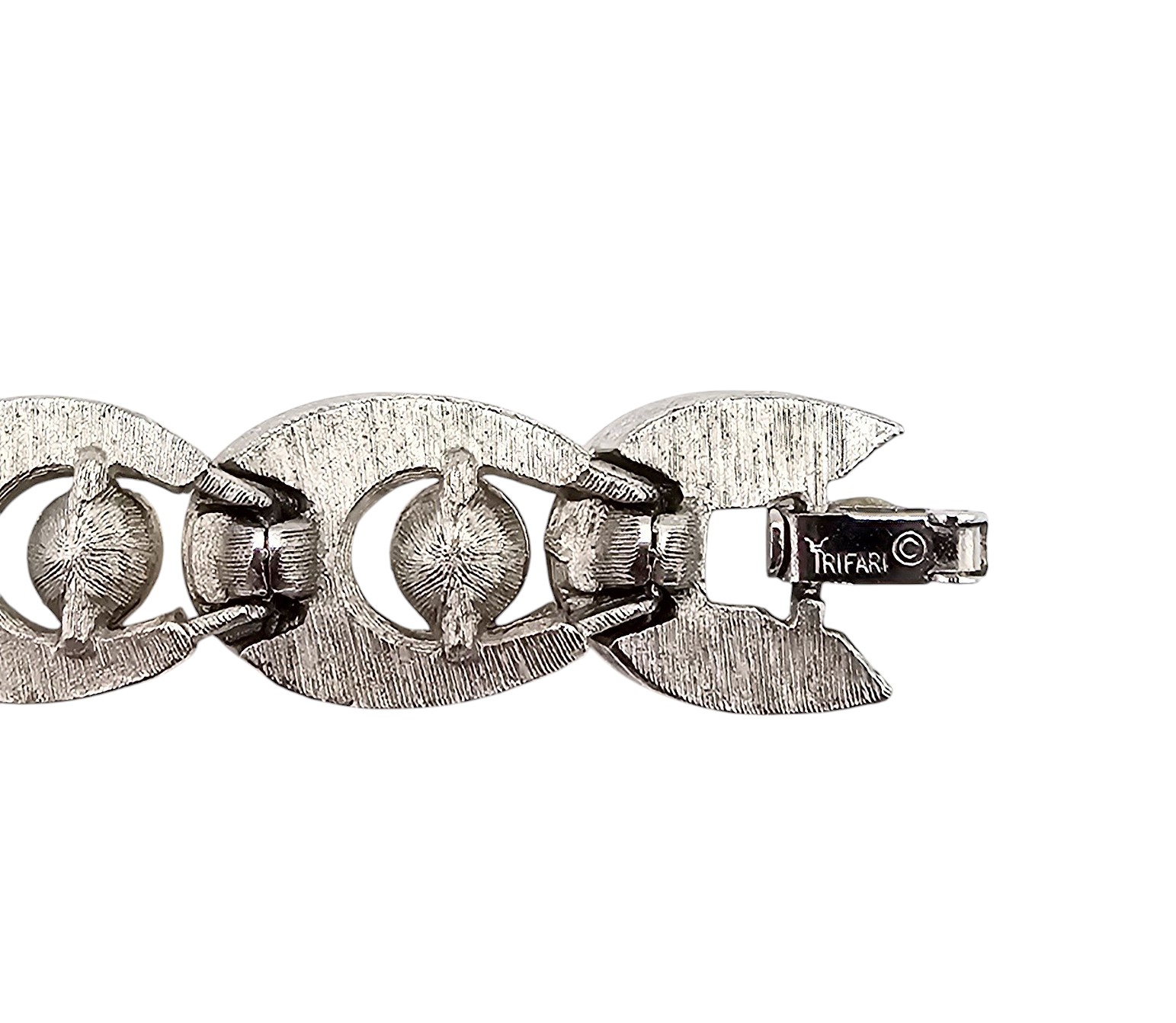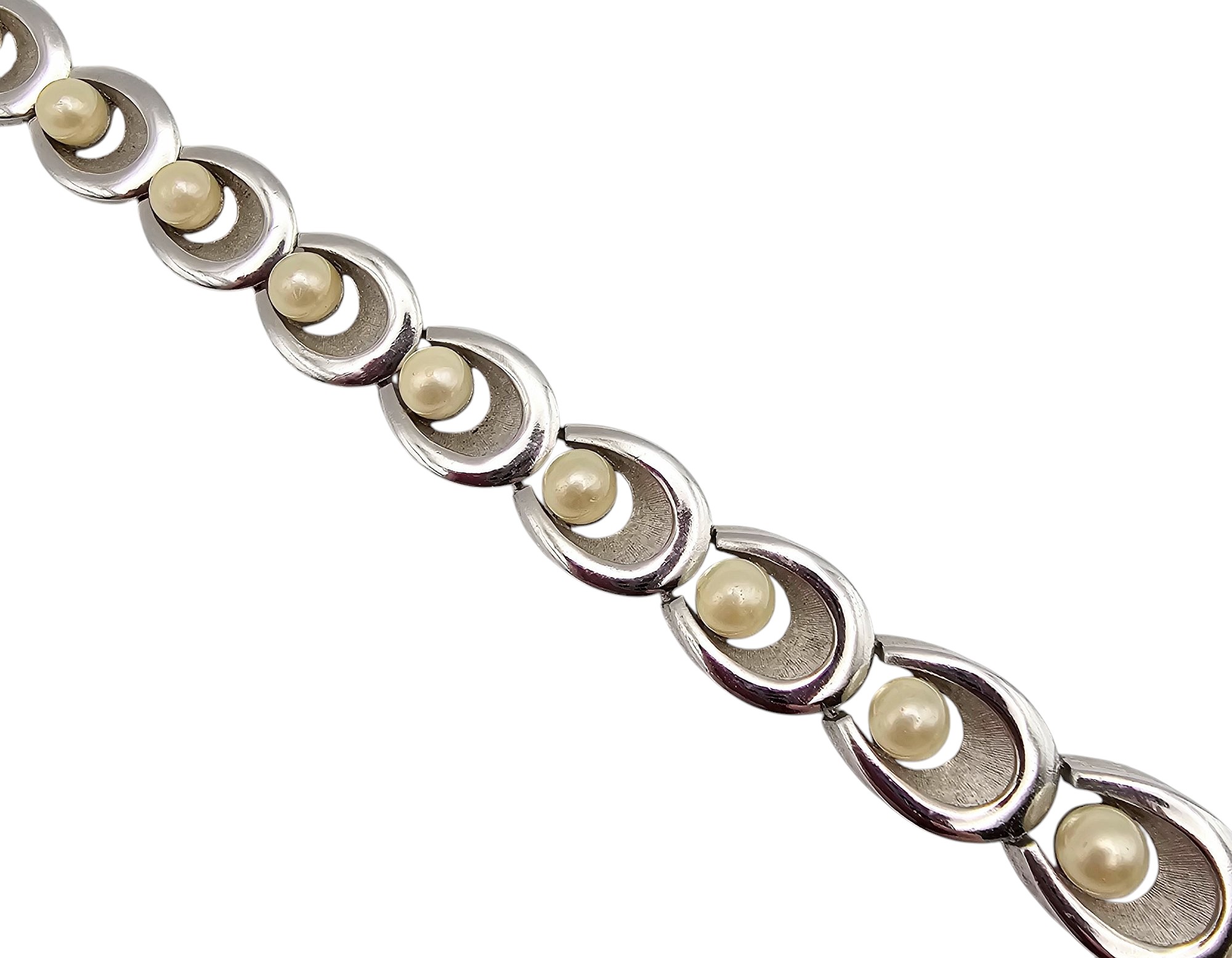 Crown Trifari Vintage Faux Pearl 1960’s Silver Tone Scalloped Style Brooch