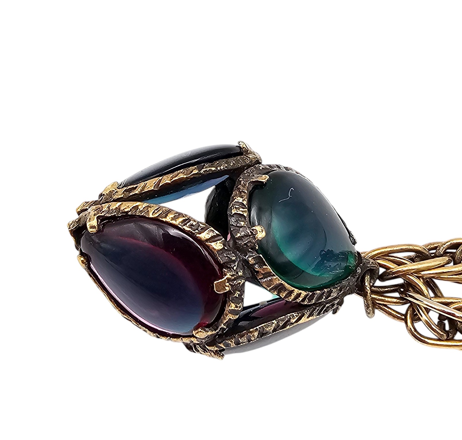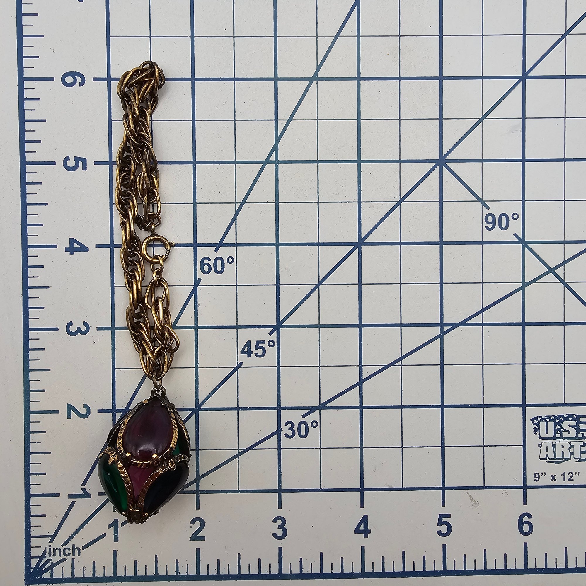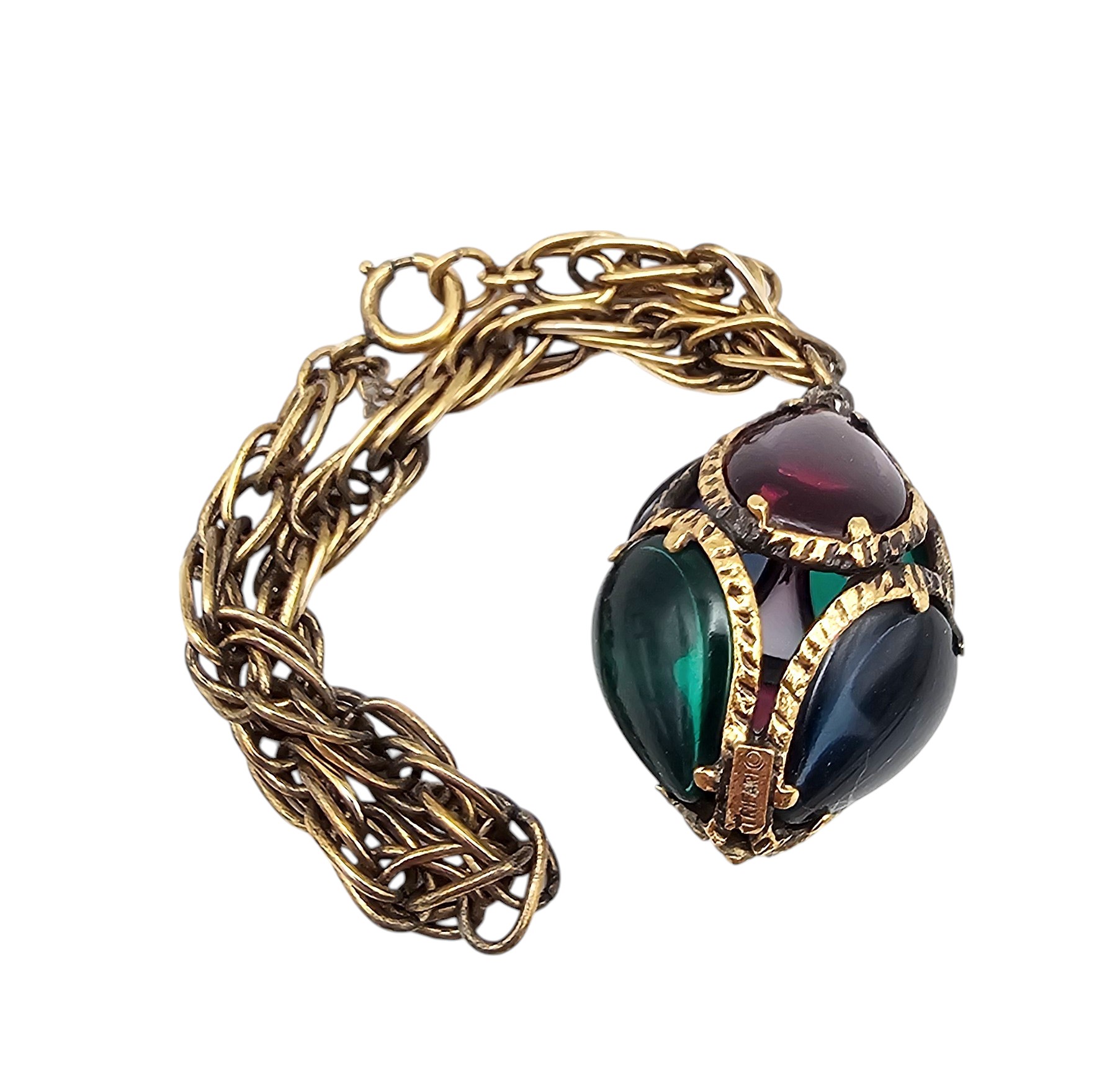 Crown Trifari Vintage Stained Glass Style Red green Blue Gold Tone Bracelet