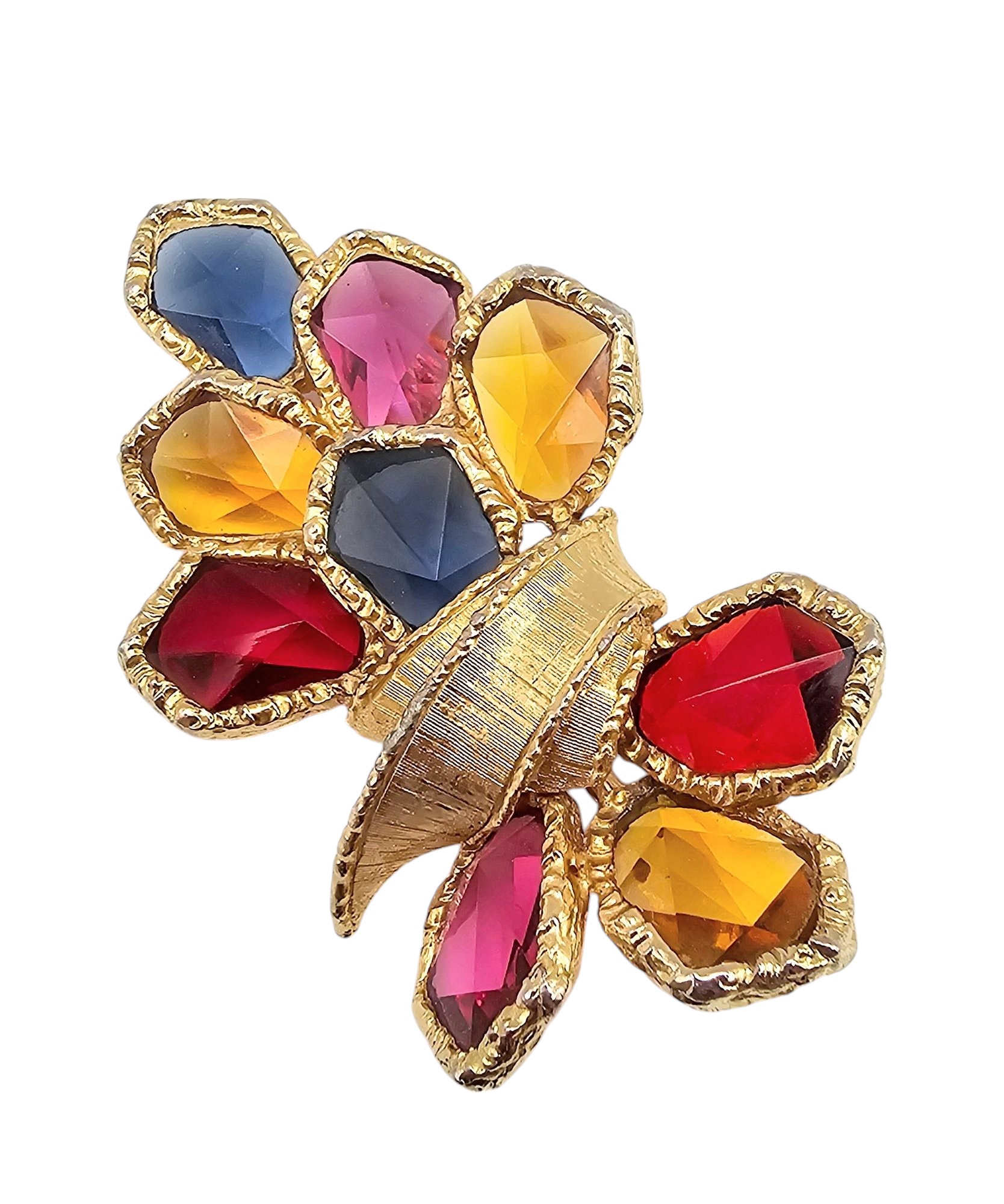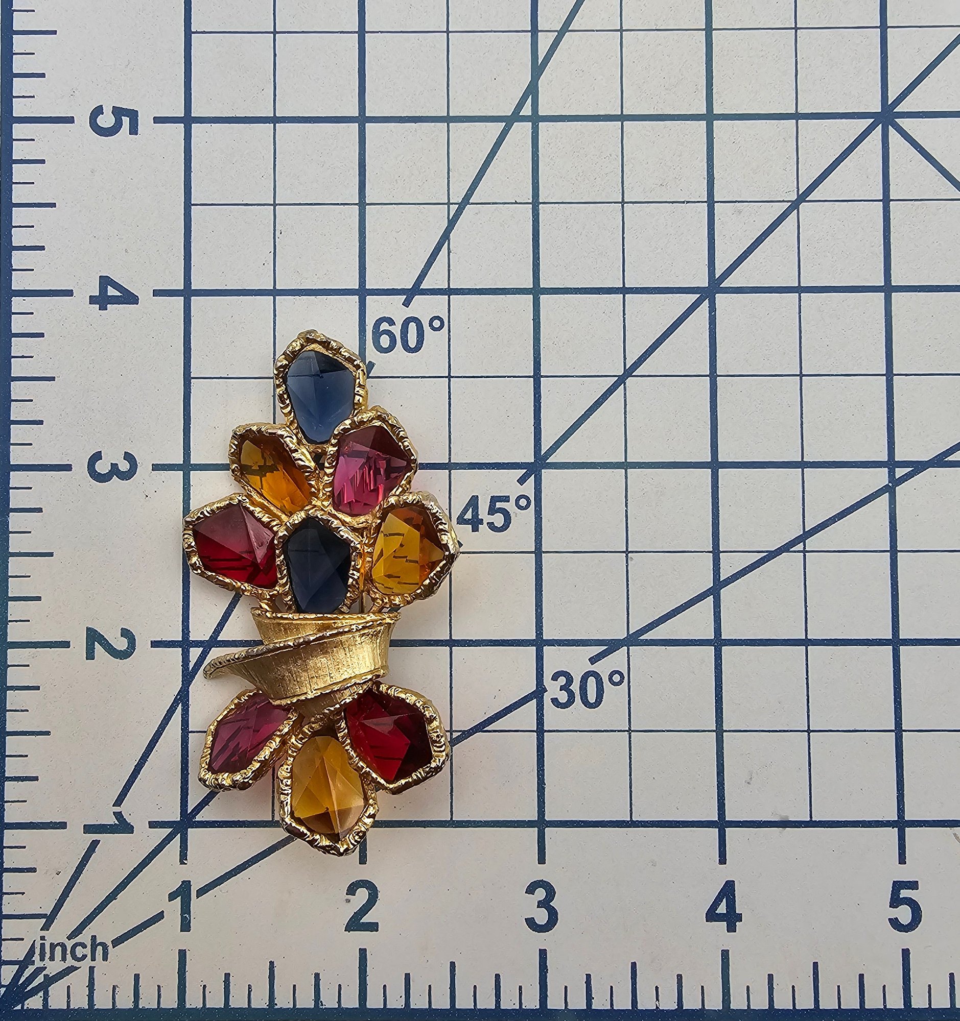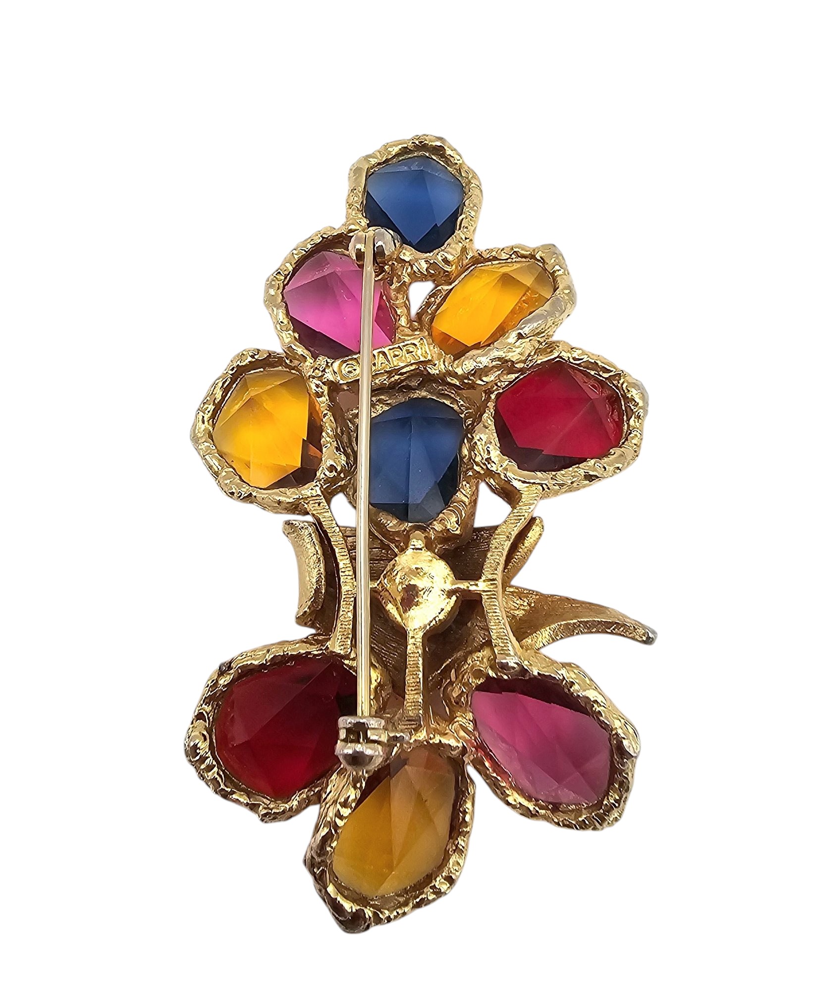 Capri Fleur De Lis Fruit Salad Riviera Open Back Rhinestone Gold Tone Brooch