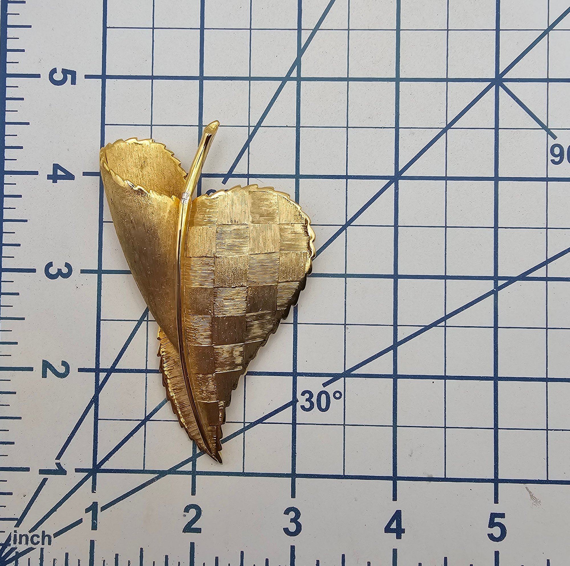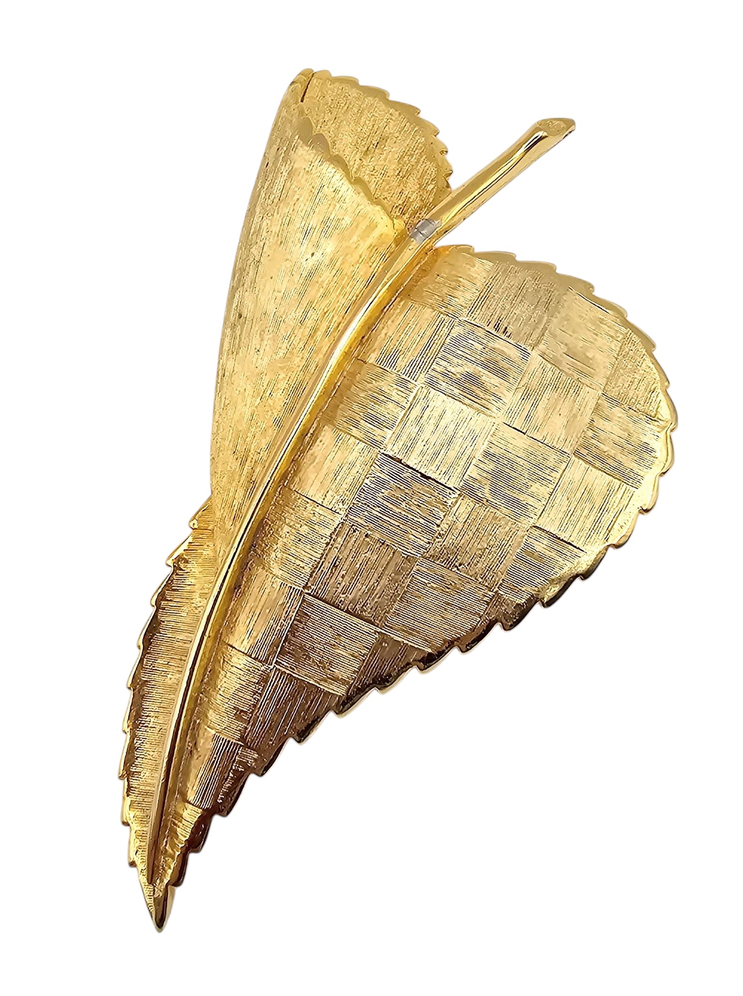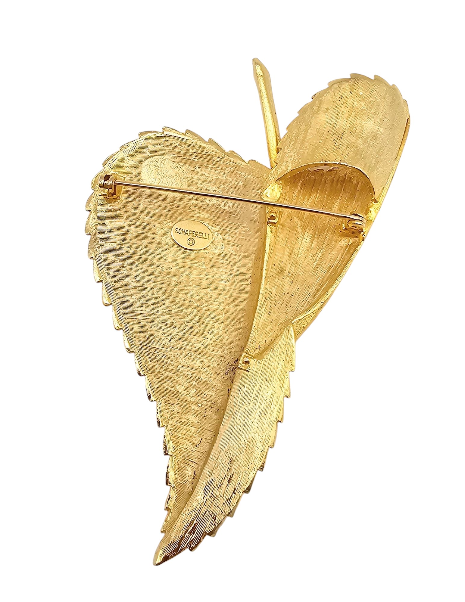 Schiaparelli Vintage Brushed Gold Tone Large Leaf Brooch