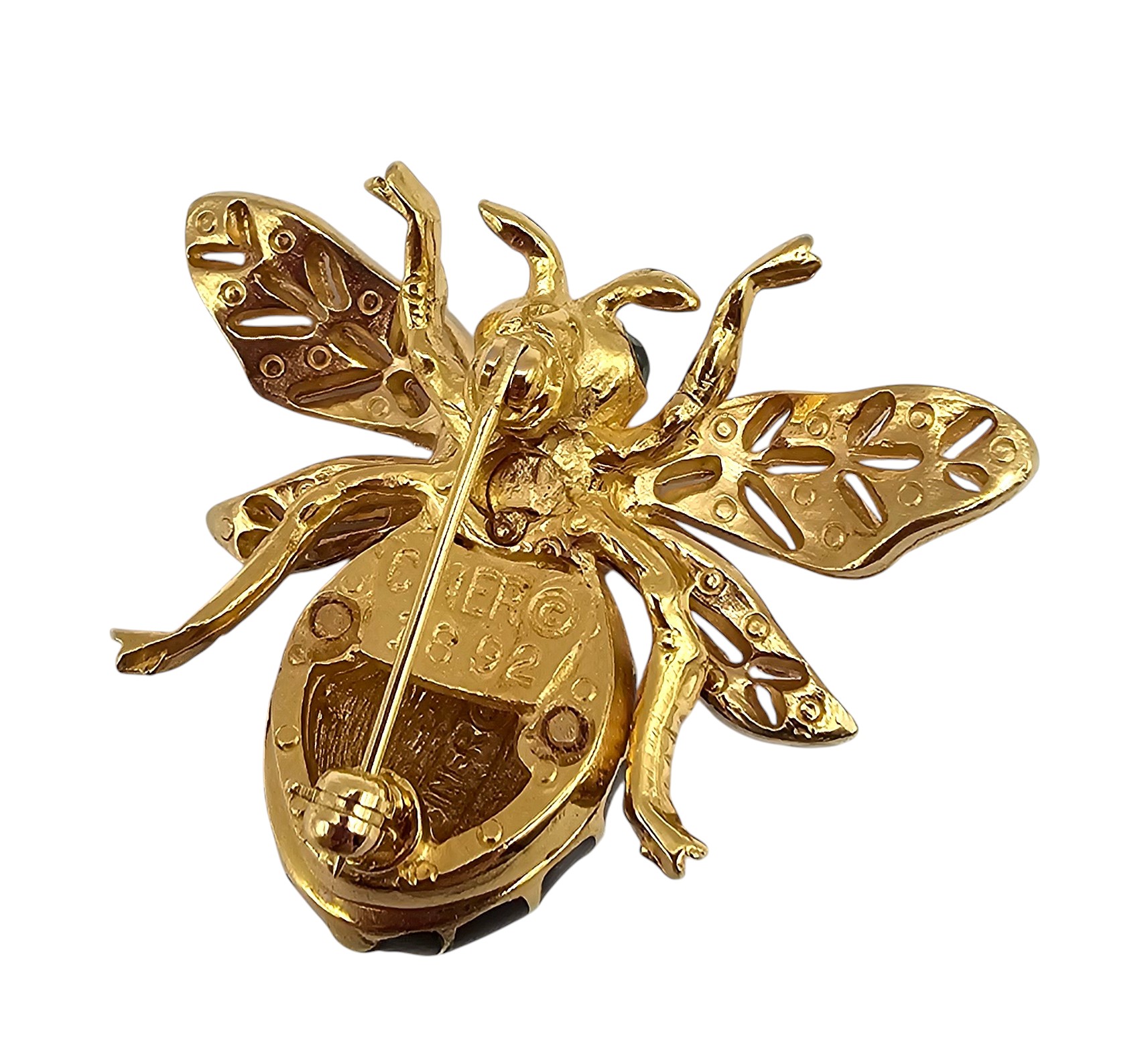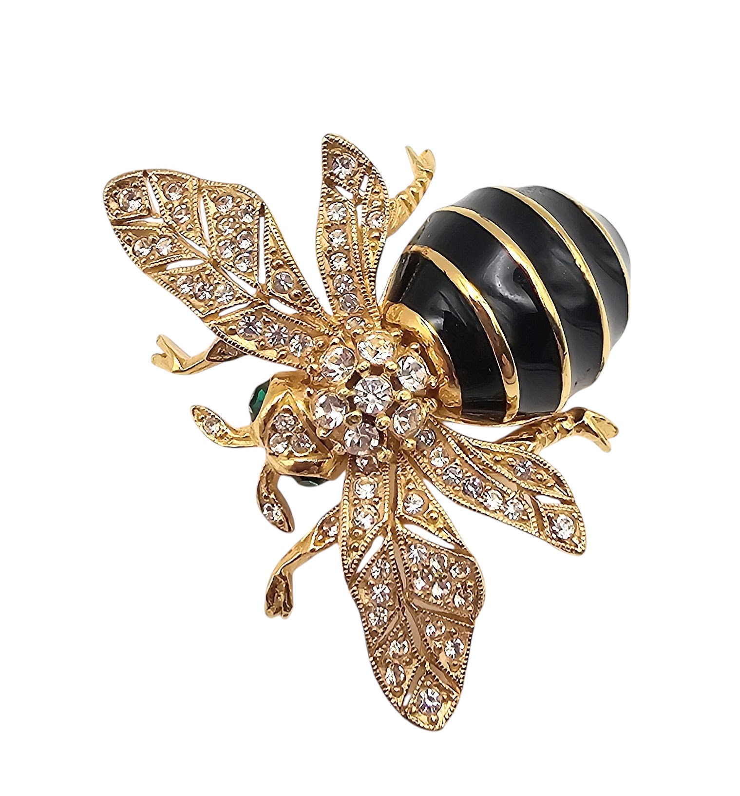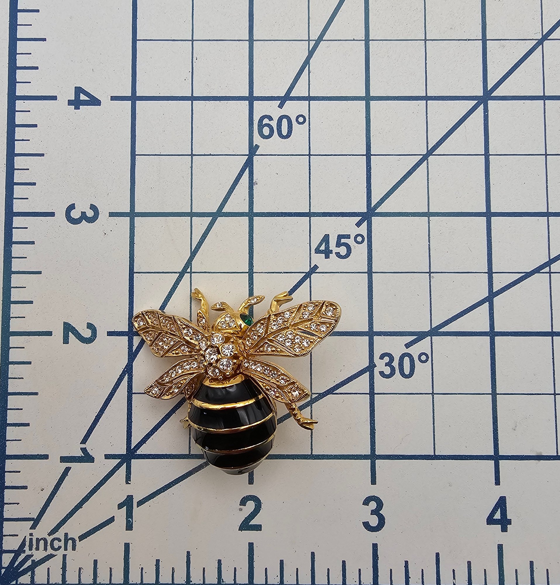 Ciner Black Enamel Rhinestone Gold Tone Bumblebee Bee Brooch