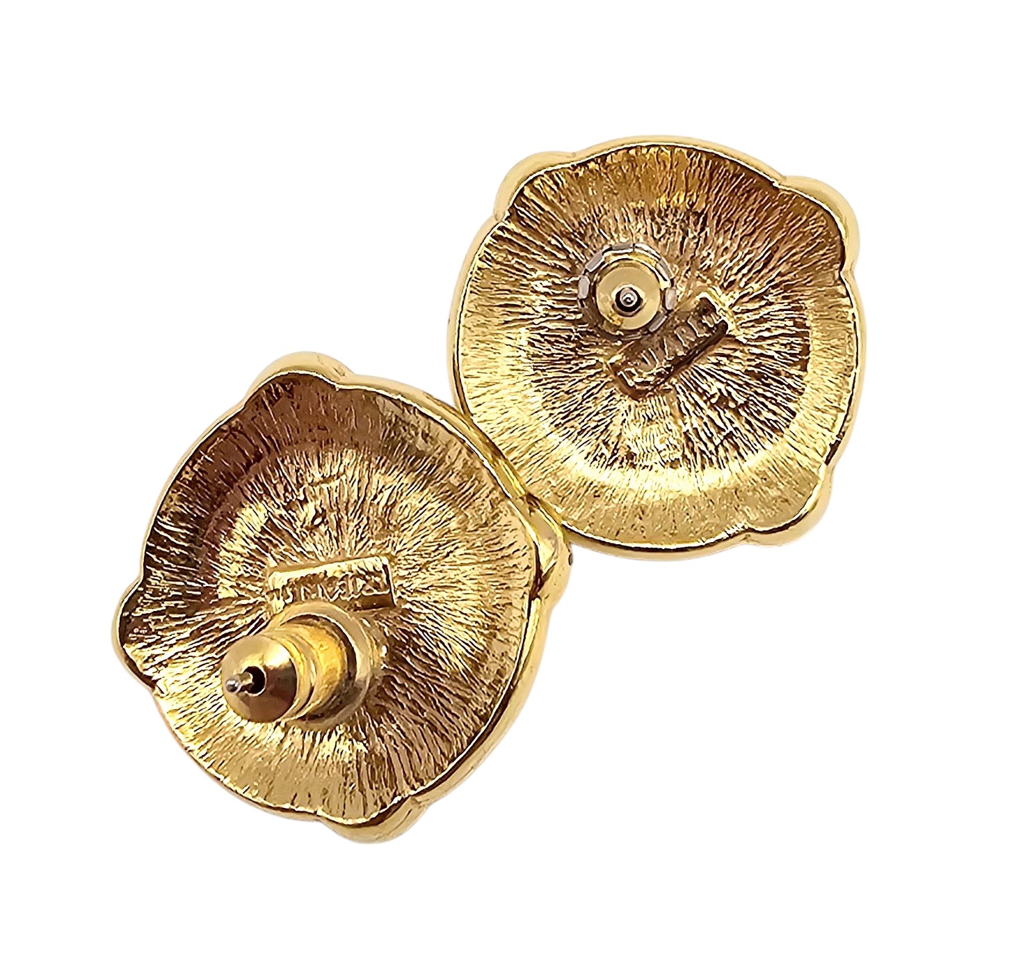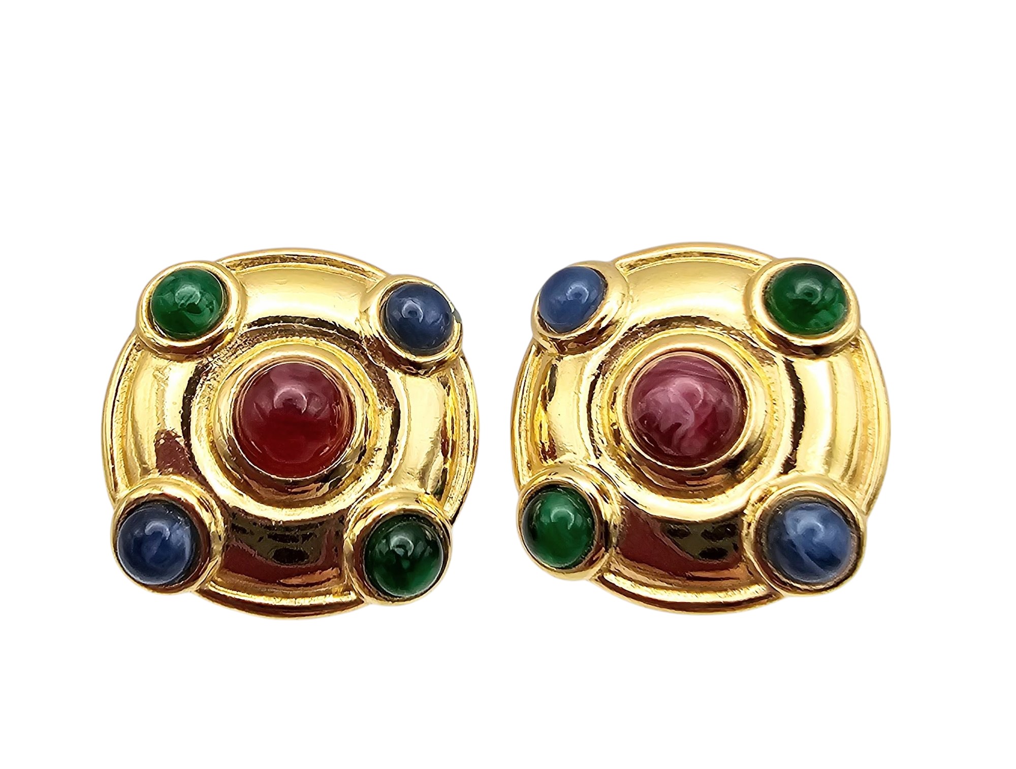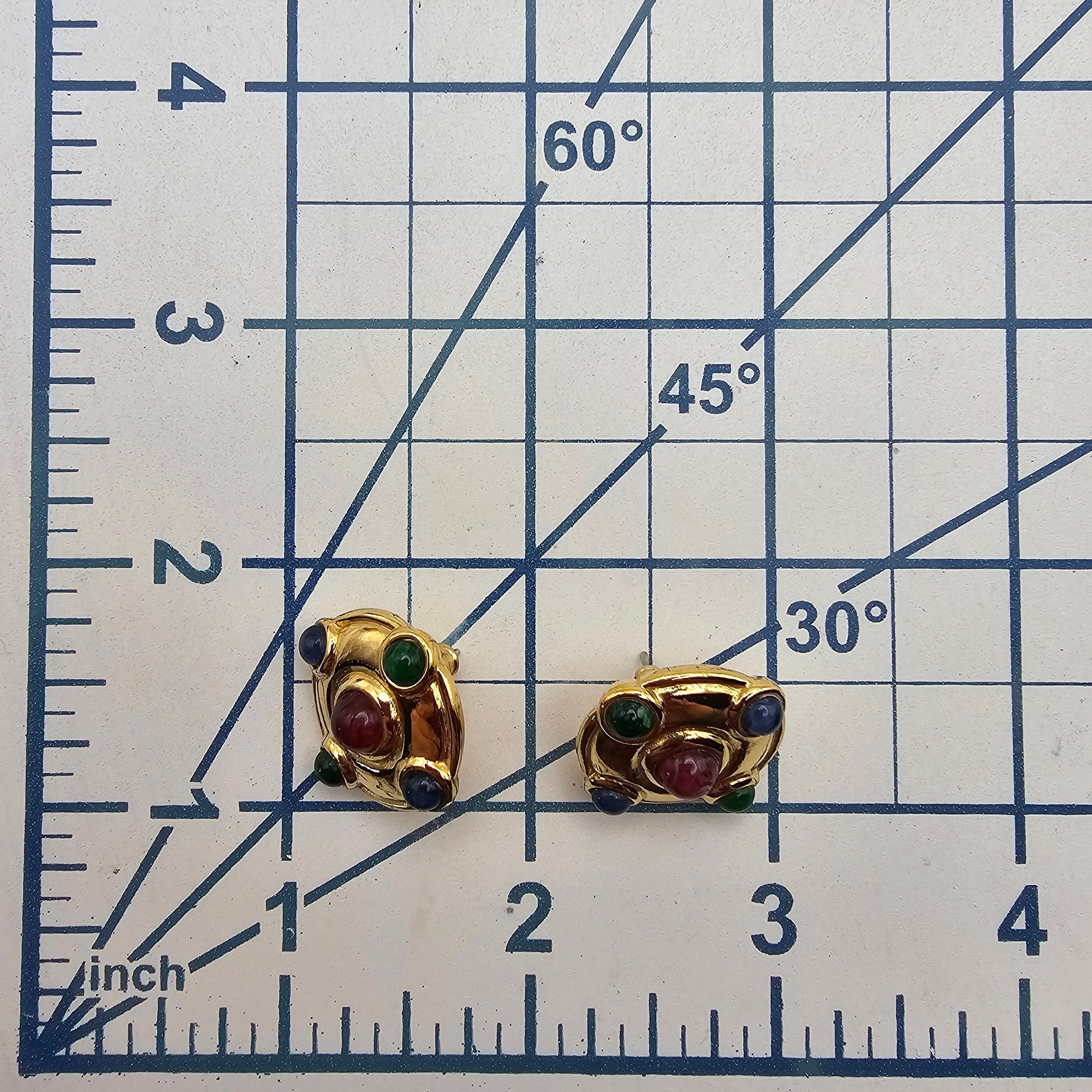 Alfred Philippe Revival Vintage Crown Trifari Maltese Cross Jewels of India Mogul Multi Color Gold Tone Earrings