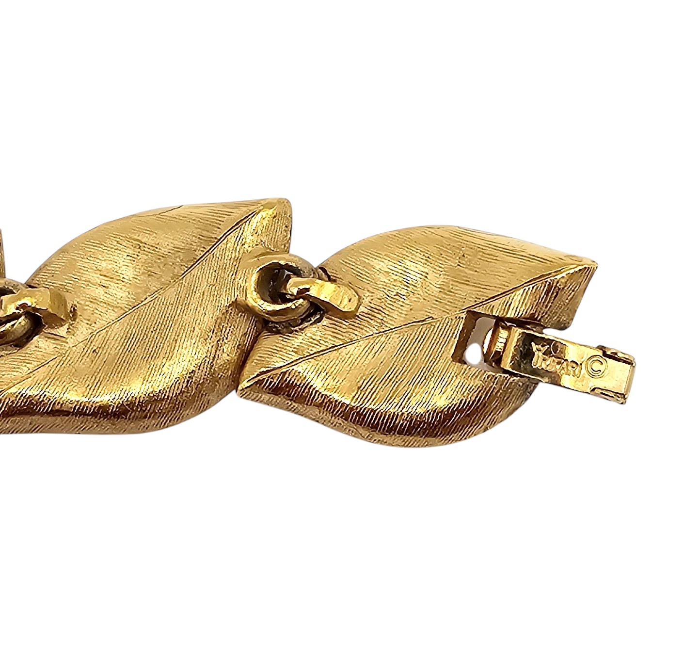 Crown Trifari Vintage Gold Tone Leaf Link Bracelet