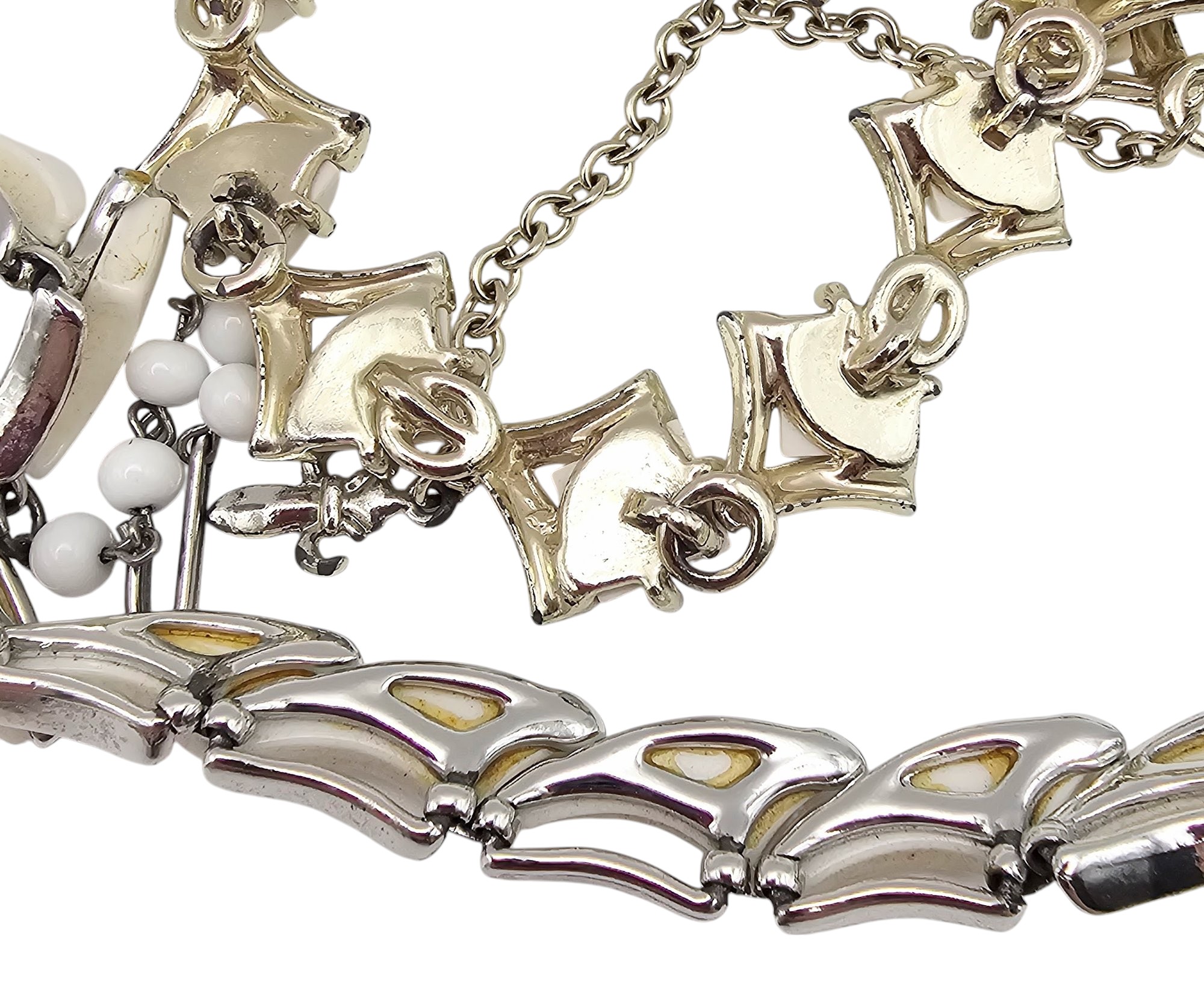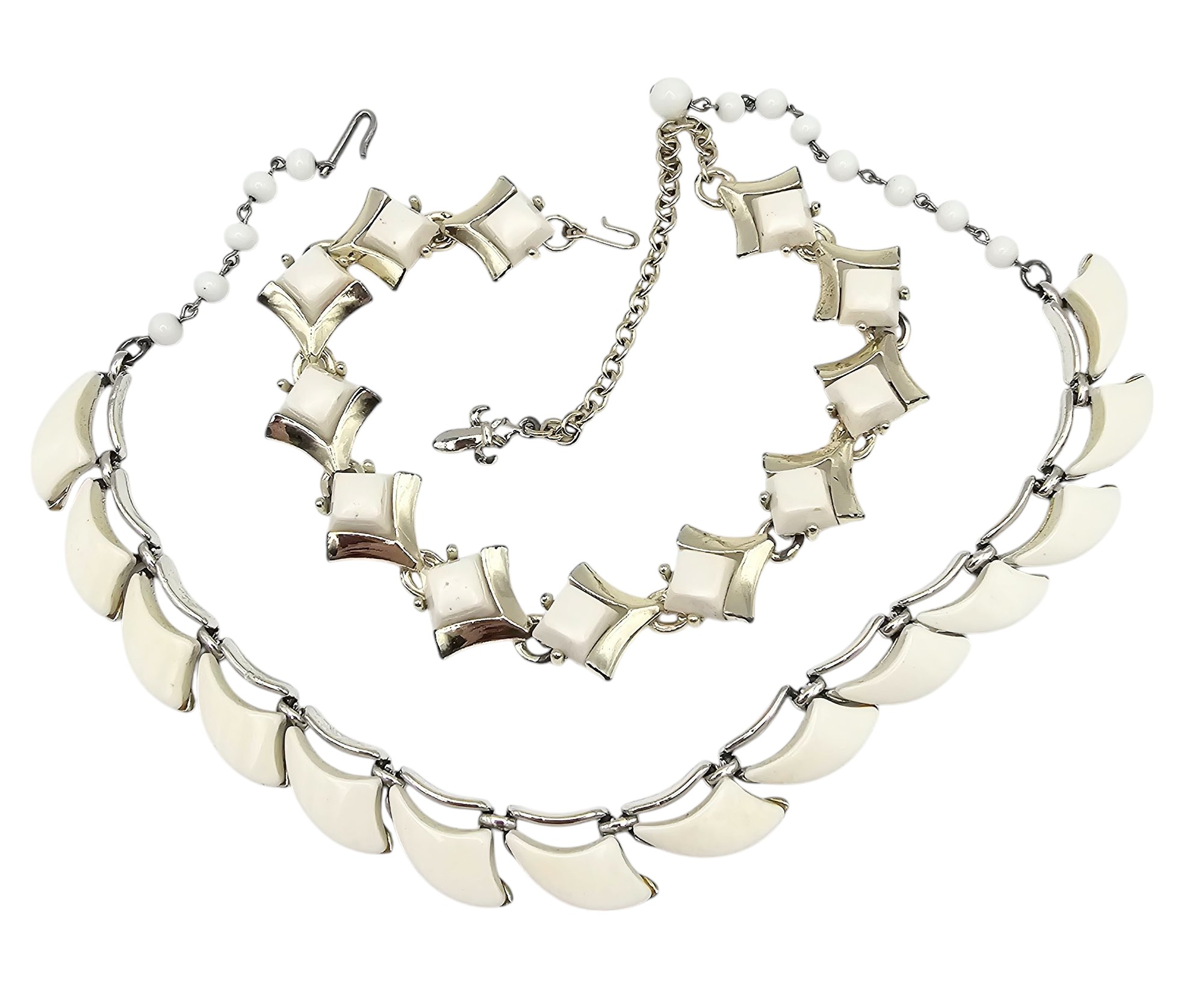 Vintage Lot 2 Bridal White Thermoset/Lucite Necklaces