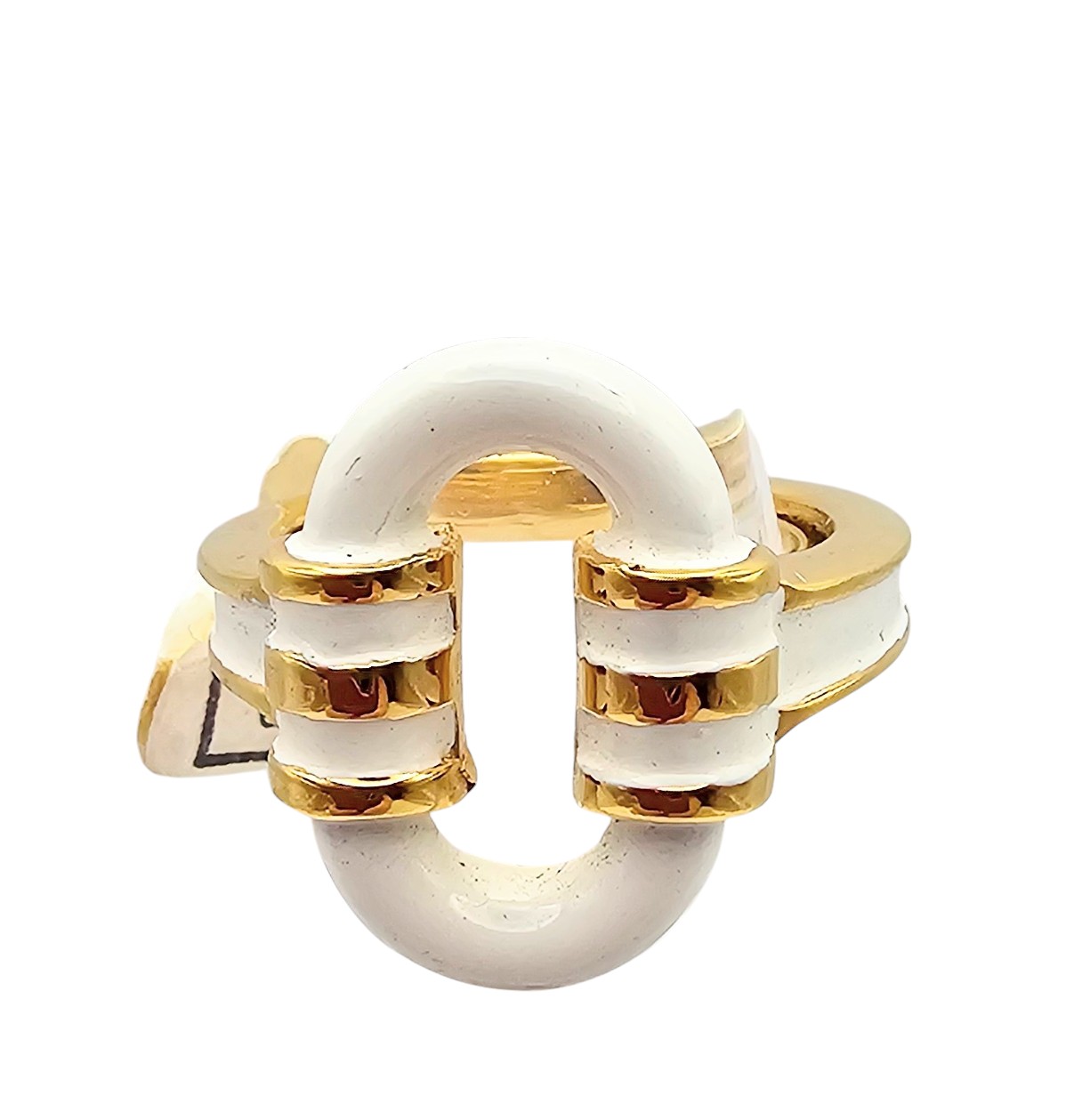 Crown Trifari Vintage White Enamel Gold Tone Ring Size 5