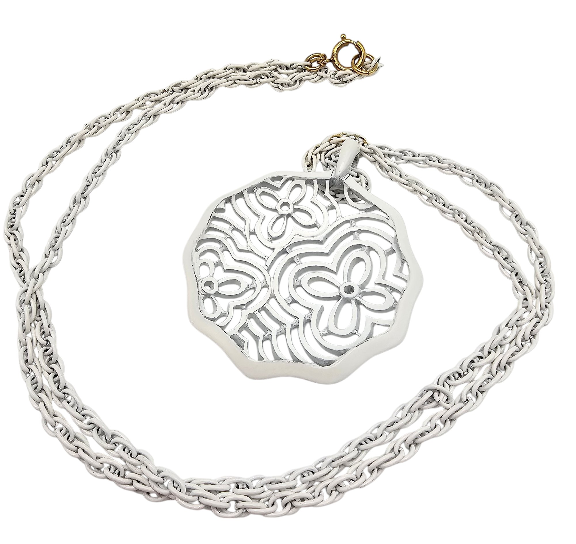 Trifari White Enamel Floral Necklace