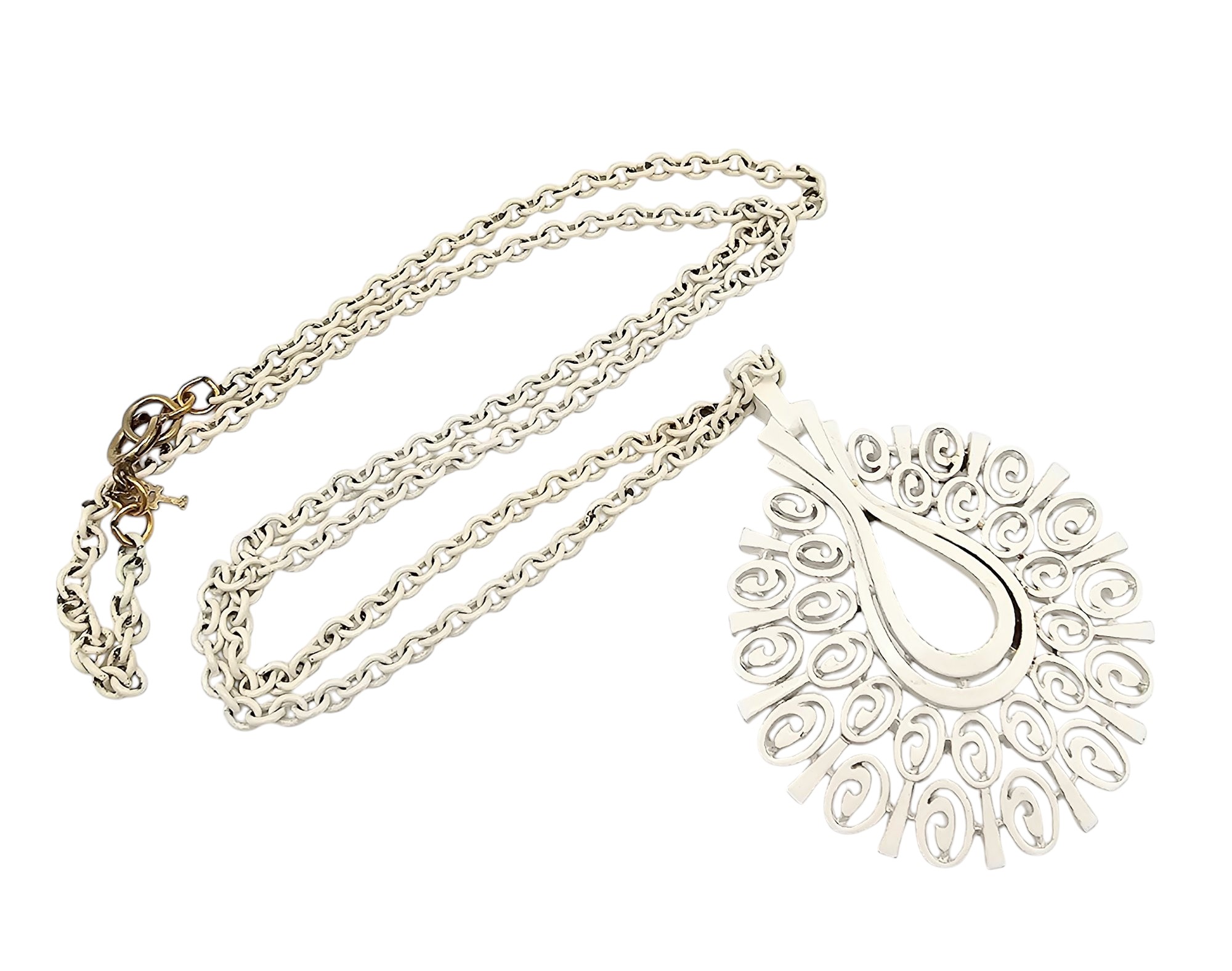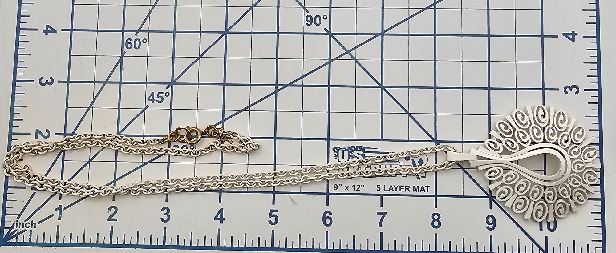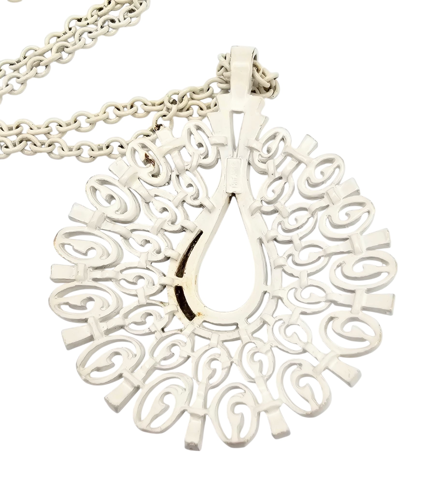 Crown Trifari Vintage White Enamel Open Work Necklace