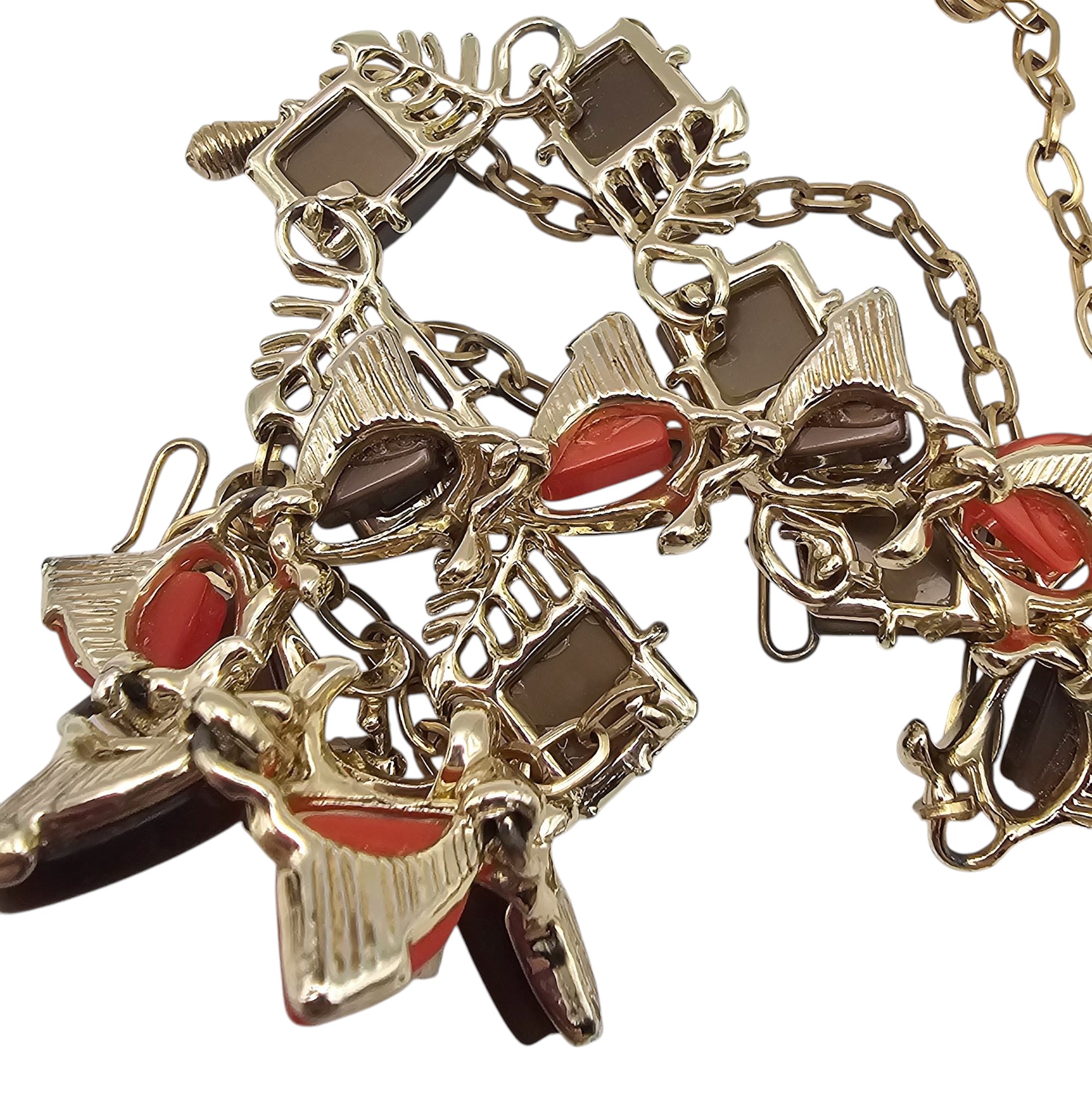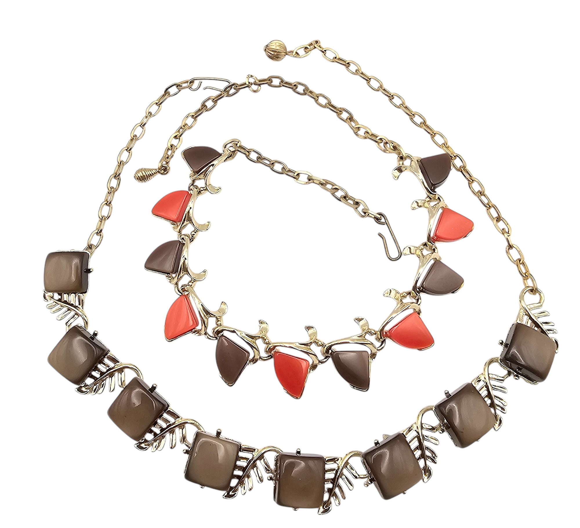 Vintage Lot 2 Thermoset/Lucite Gold Tone Necklaces