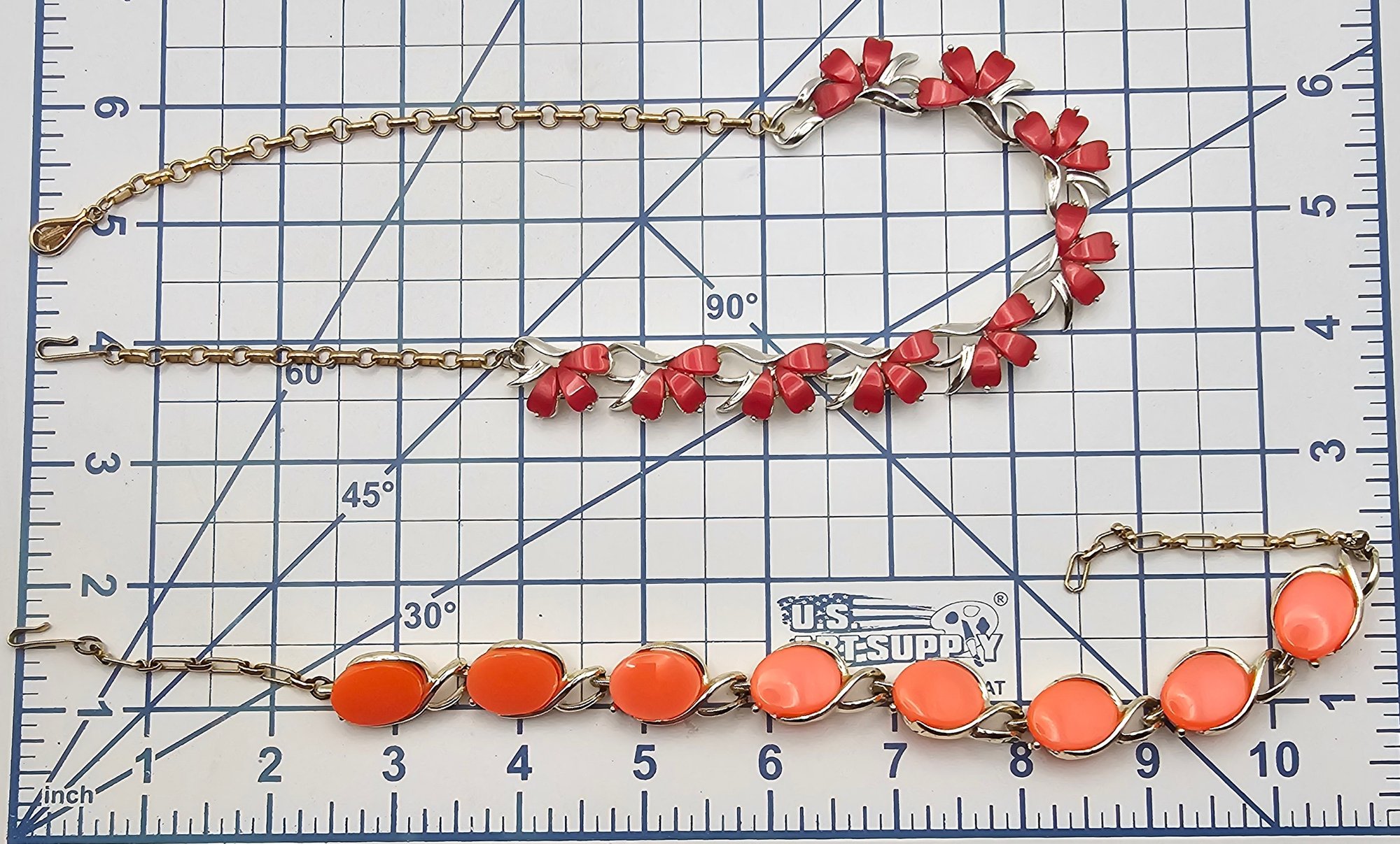 Coro Vintage Lot 2 Orange Red Thermoset/Lucite Necklaces