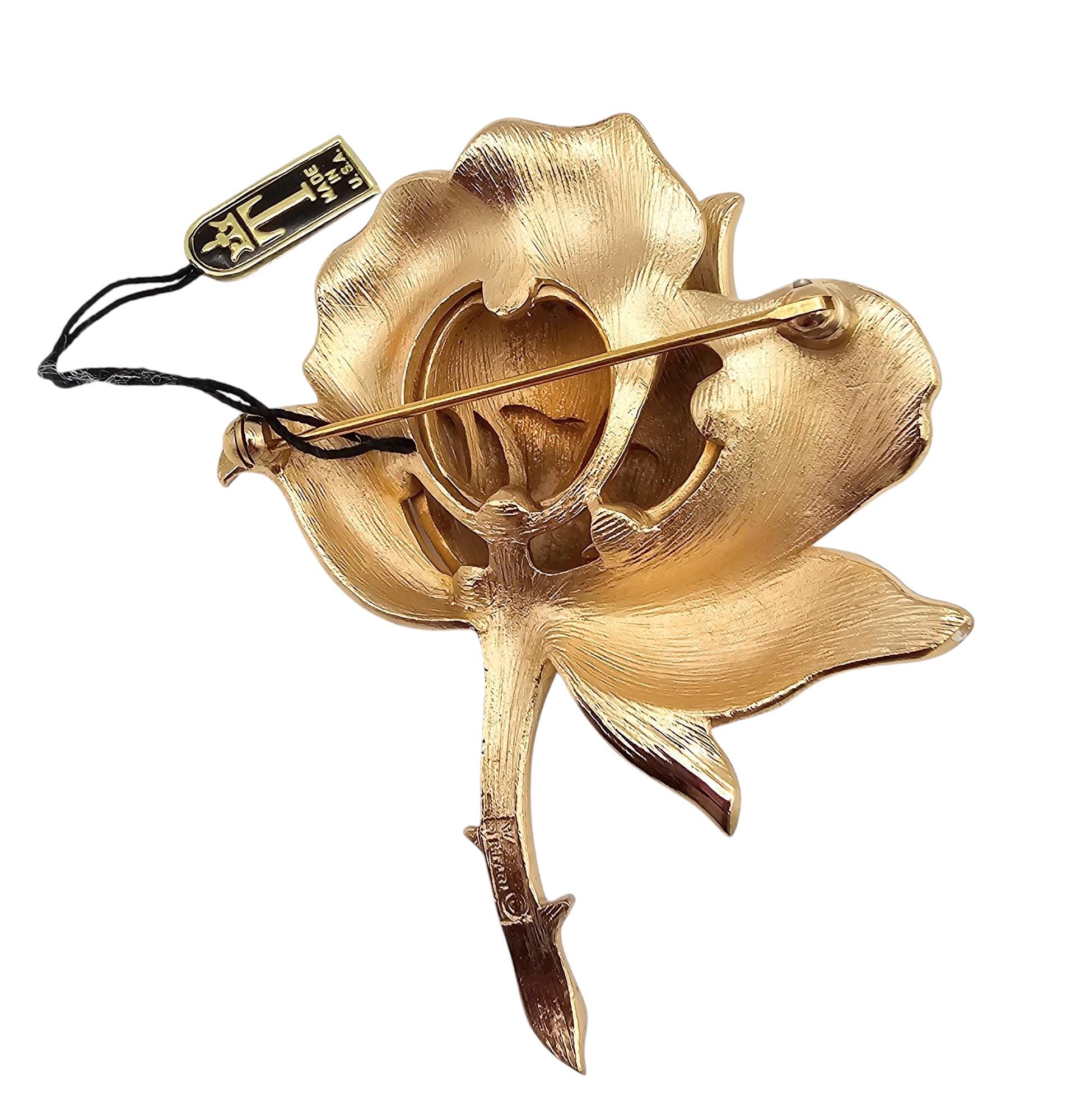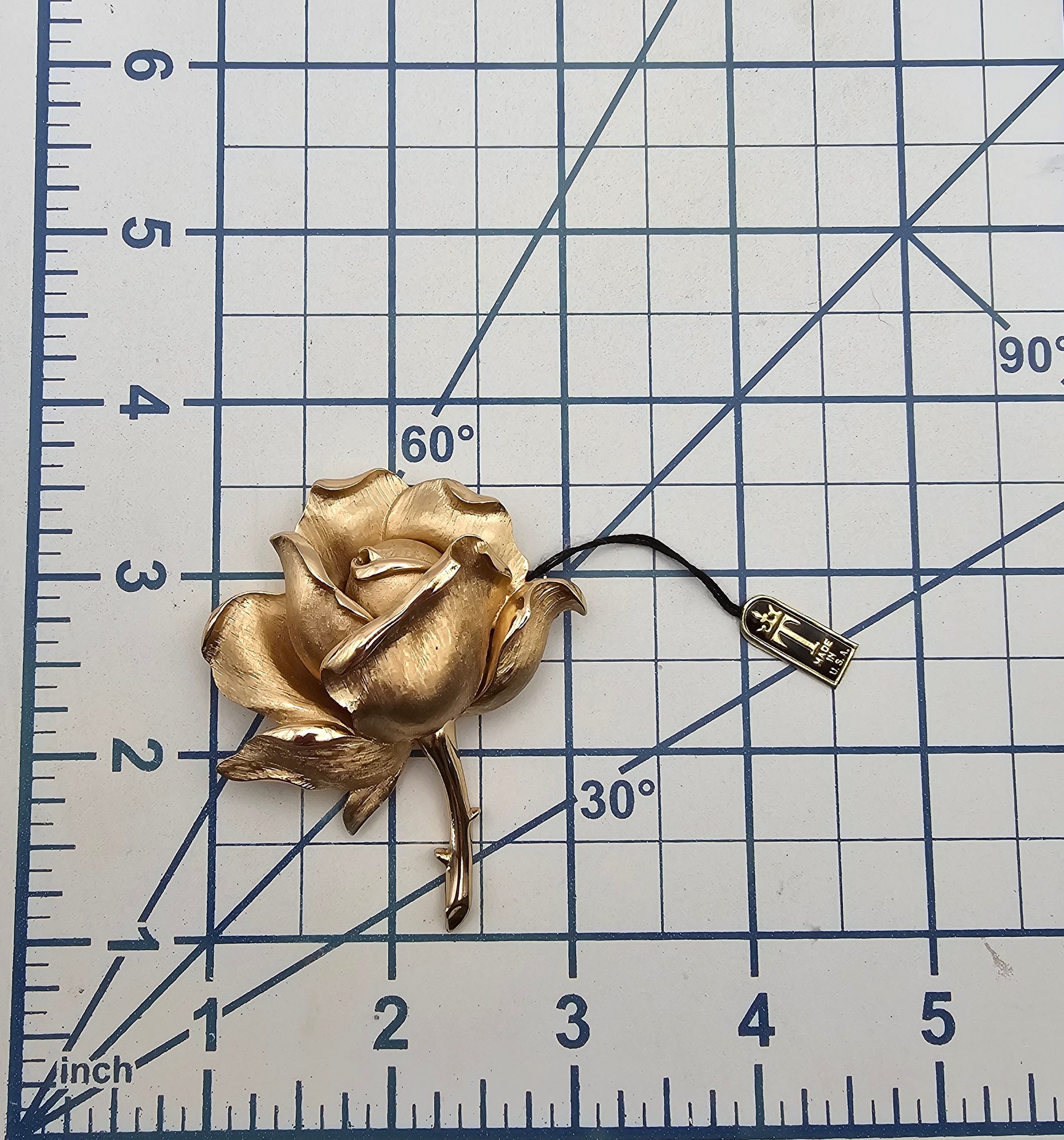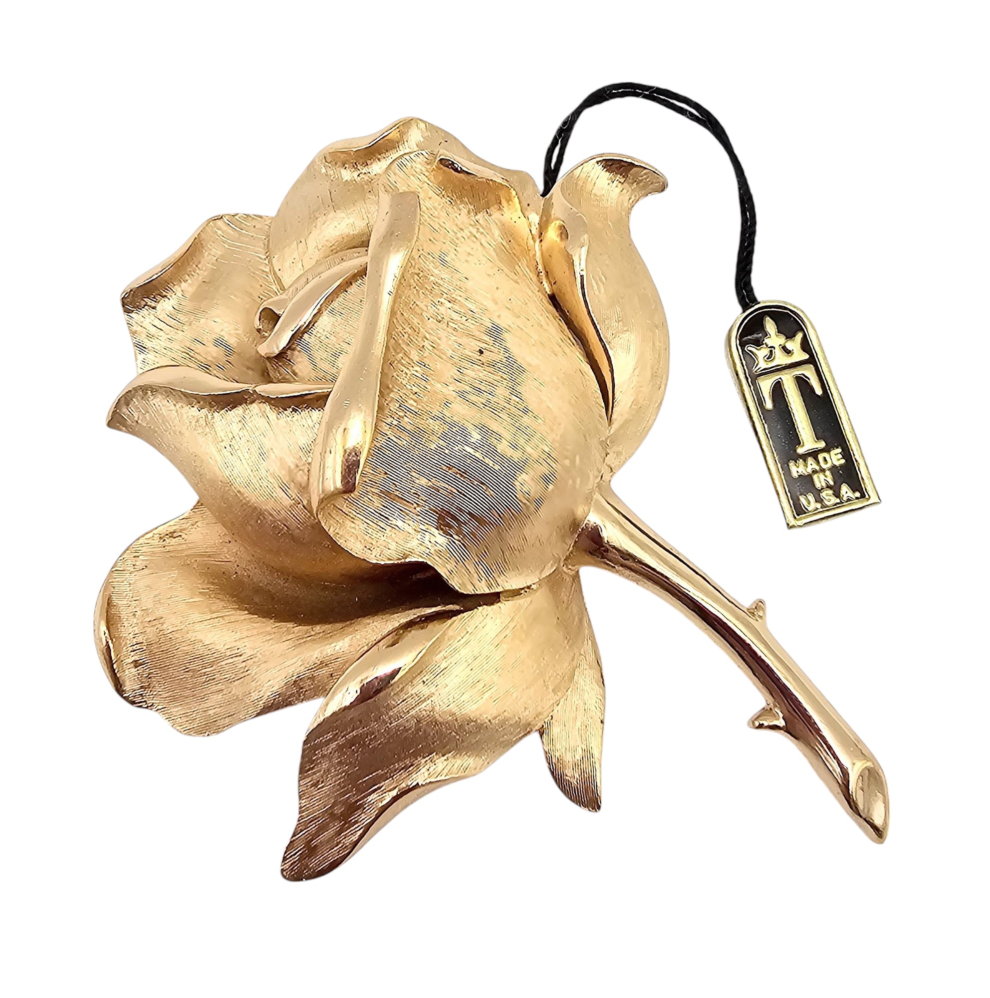 Crown Trifari Vintage Brushed Gold Tone Rose Brooch
