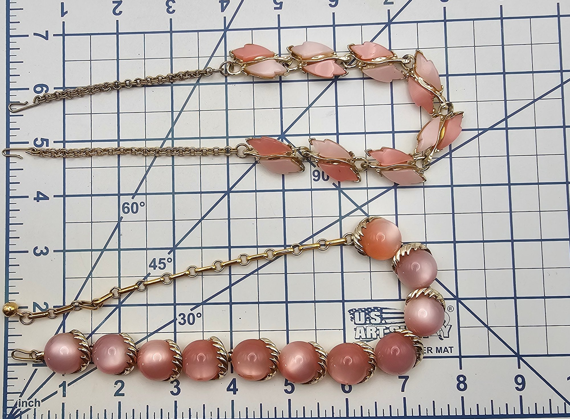 Vintage Lot 2 Pink Moonglow Thermoset/Lucite Necklaces