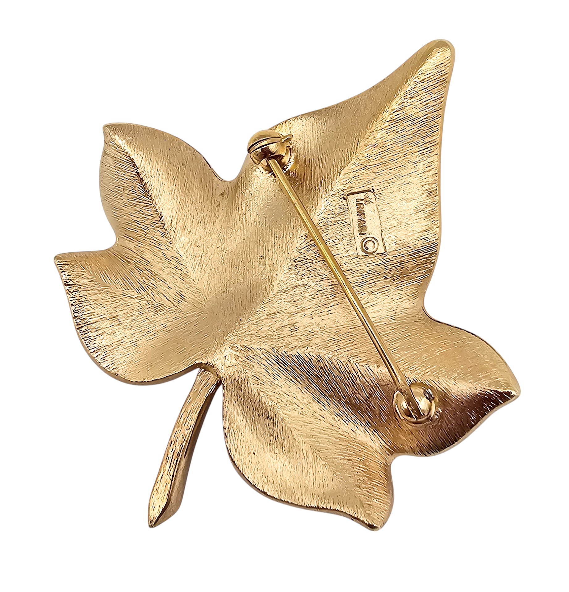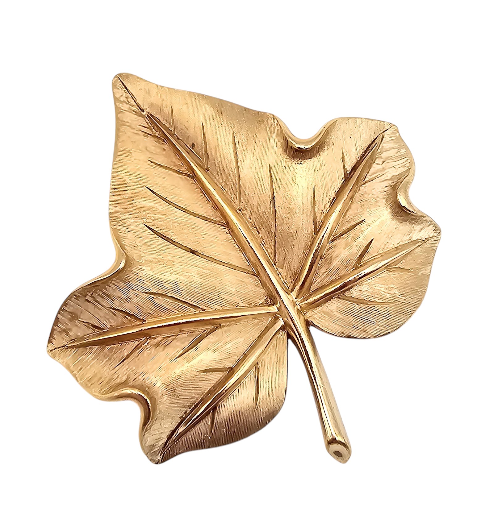 Crown Trifari Brushed Gold Tone Leaf Brooch