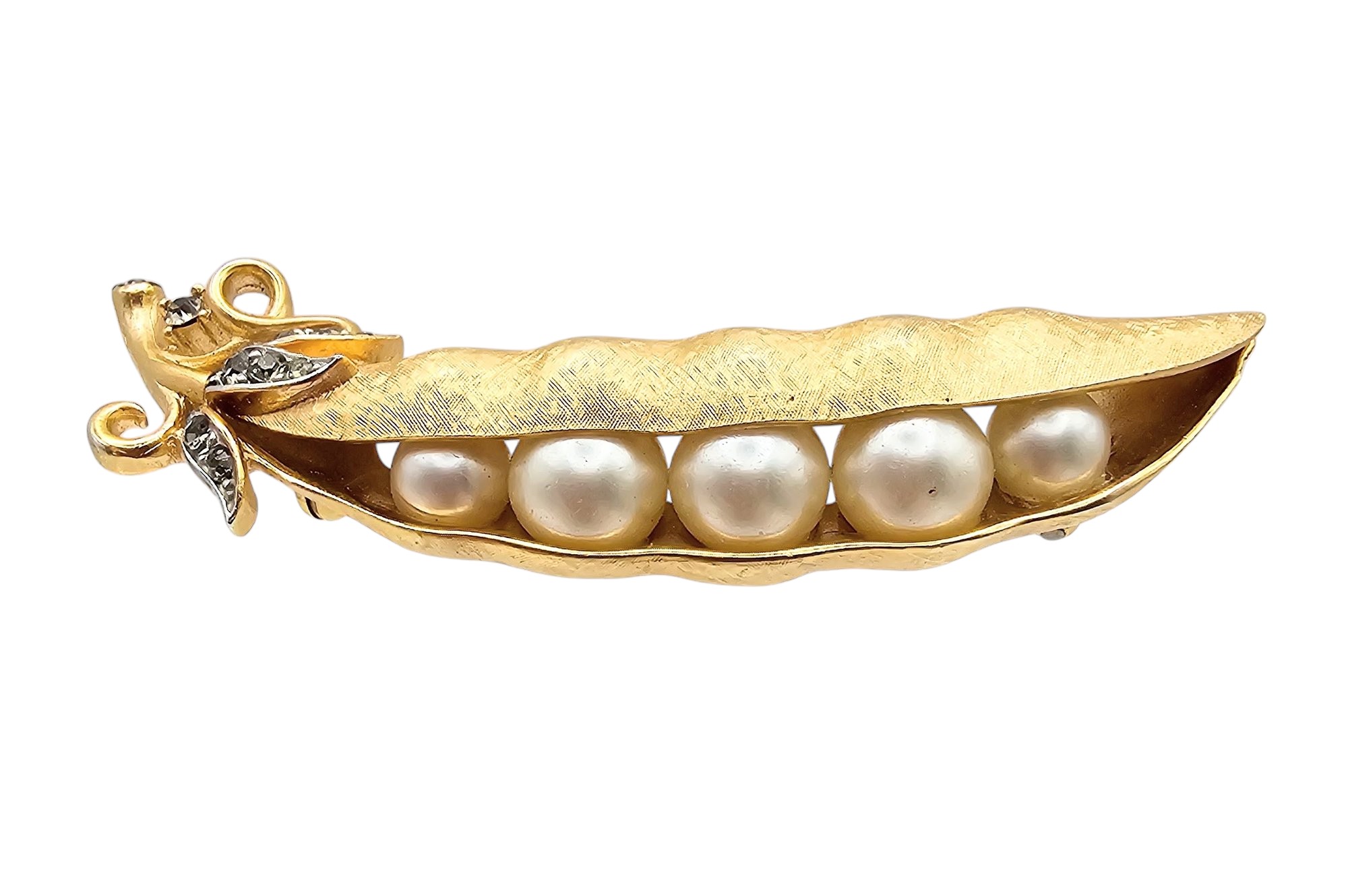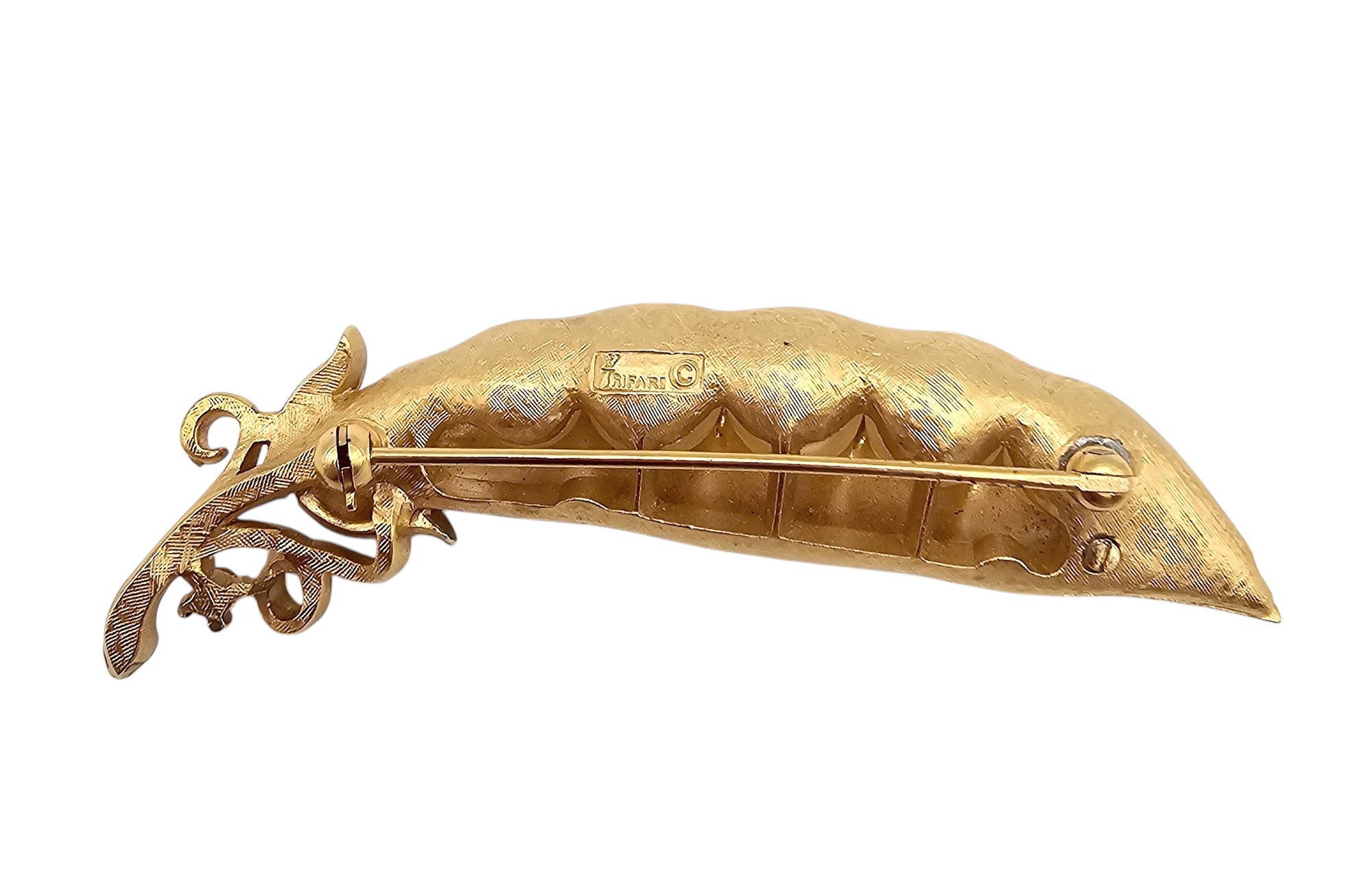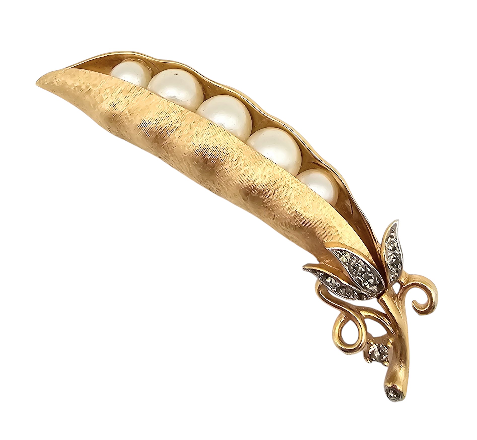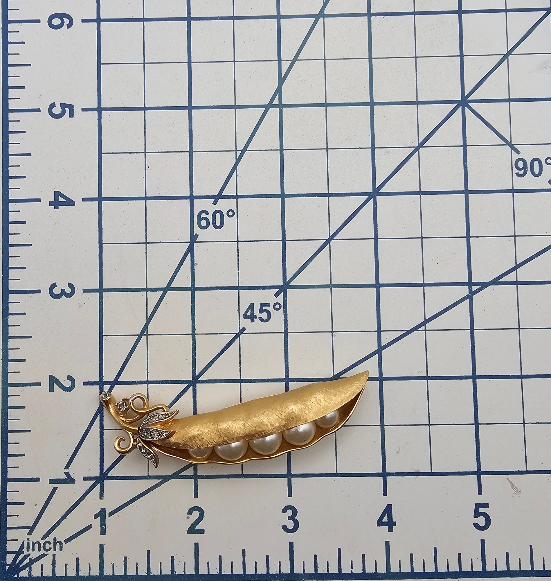 Crown Trifari Pearl Rhinestone Peas In A Pod Brushed Gold Tone Brooch