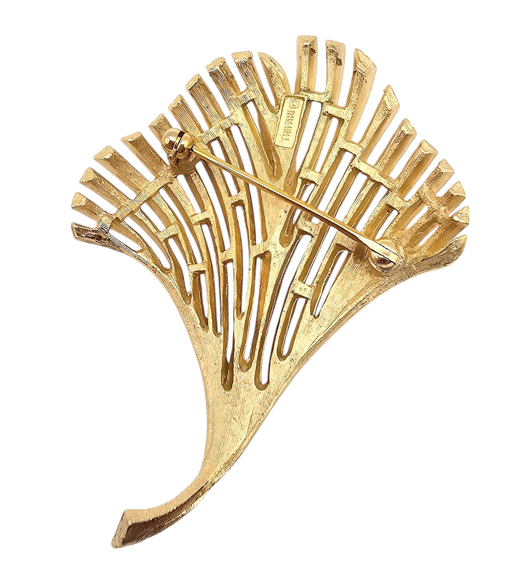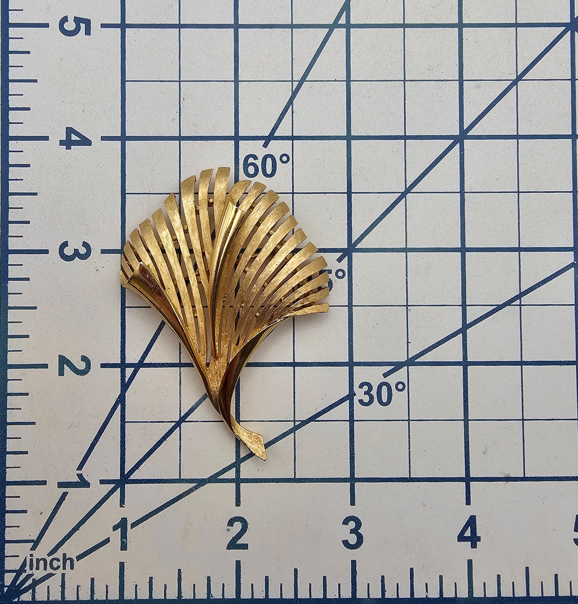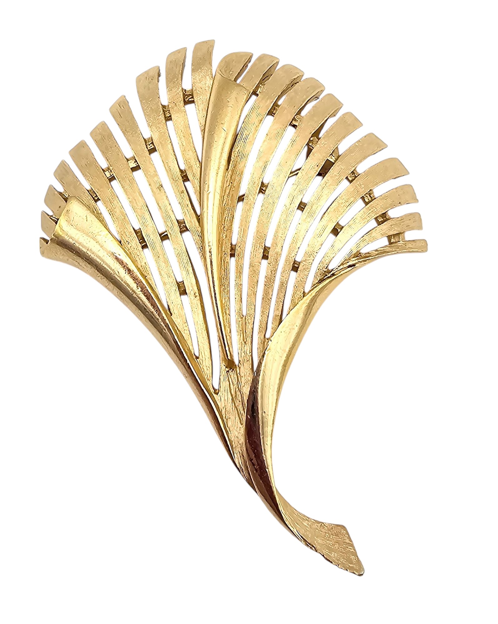 Crown Trifari Brushed Gold Tone Twist Leaf Brooch