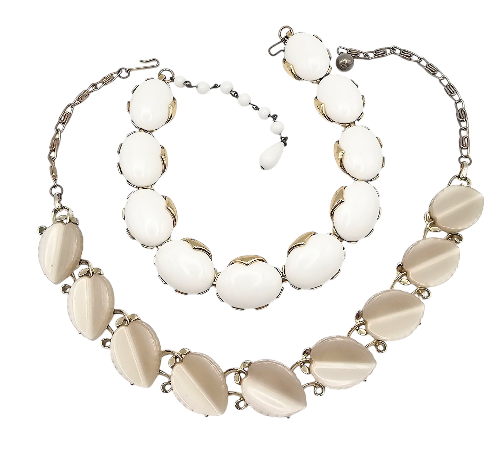 Vintage Lot 2 cream White Thermoset/Lucite Necklaces