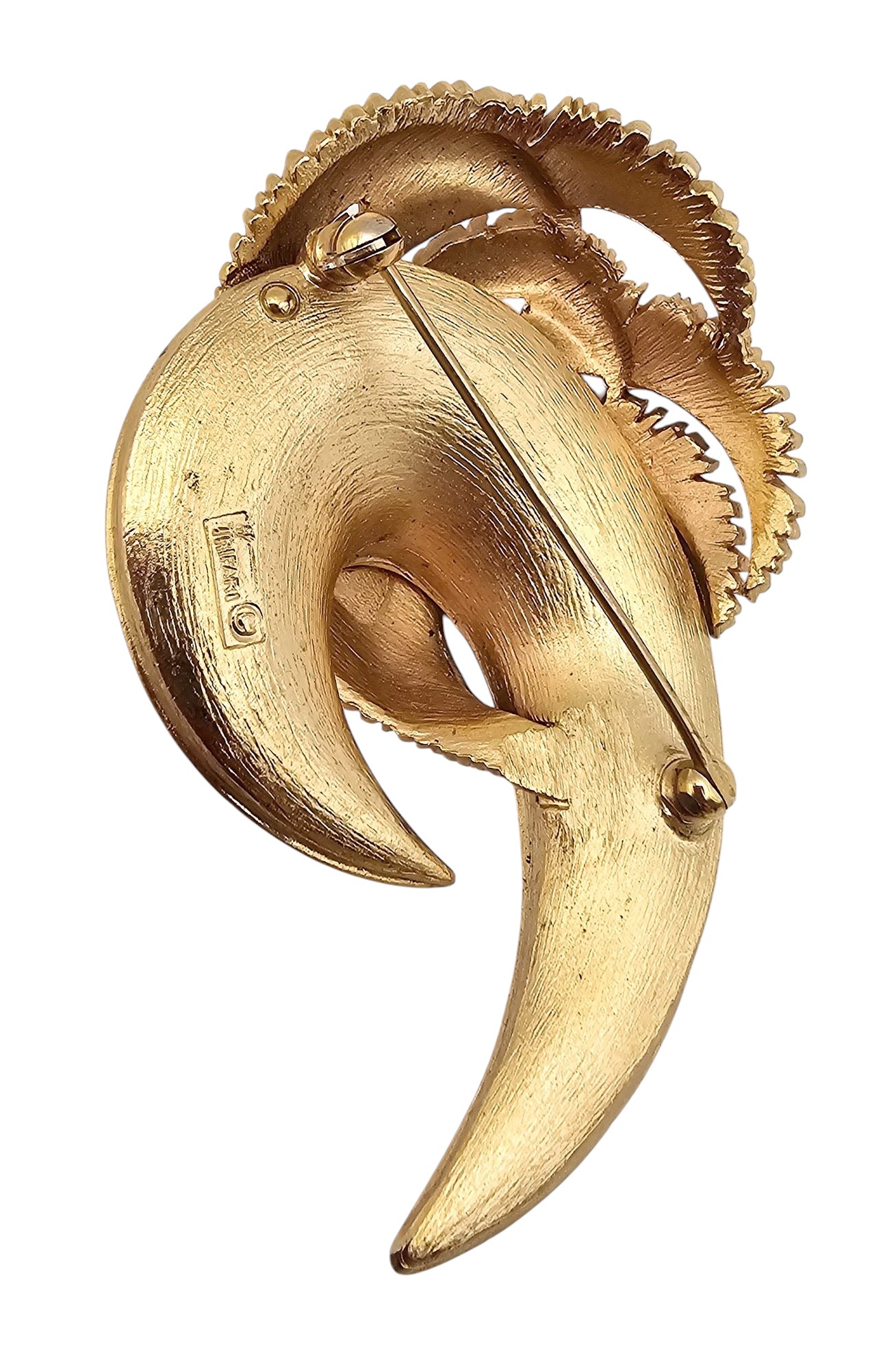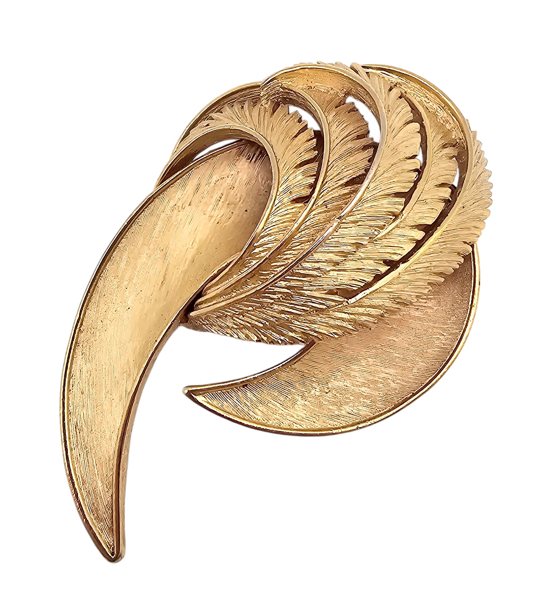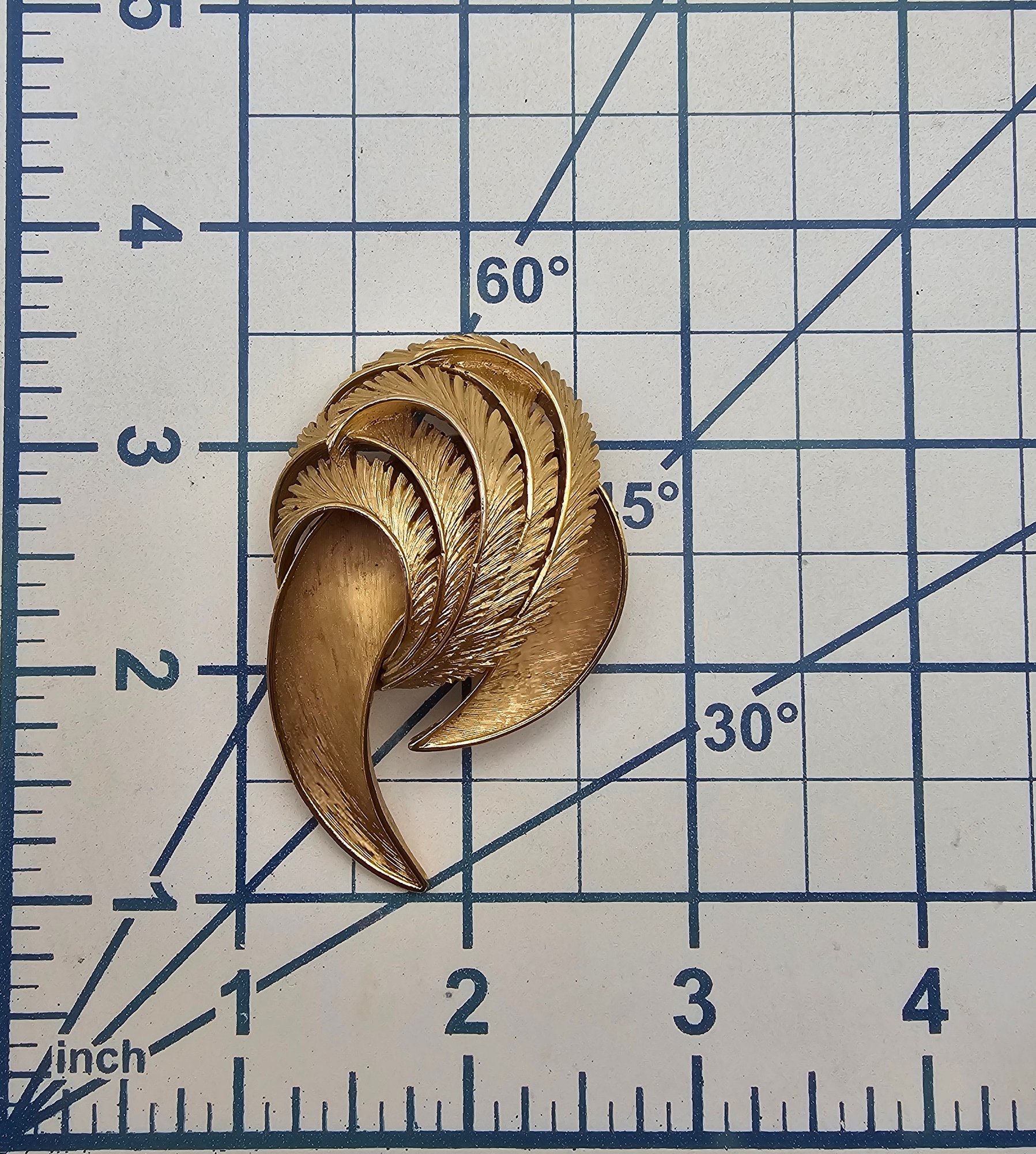 Crown Trifari Brushed Gold Tone Swirl Feather Brooch