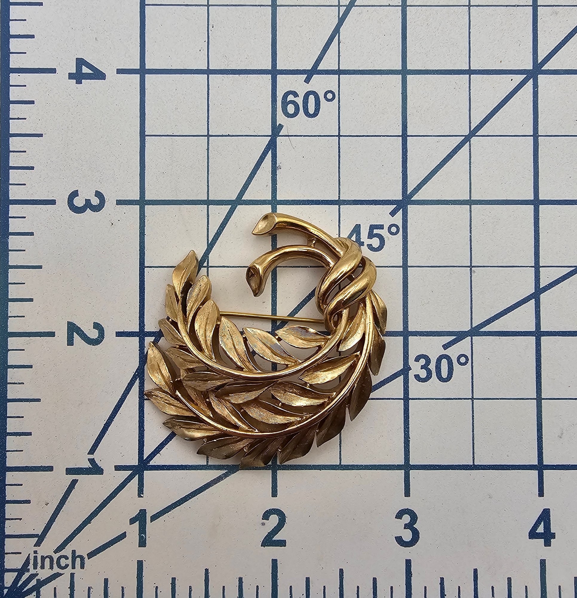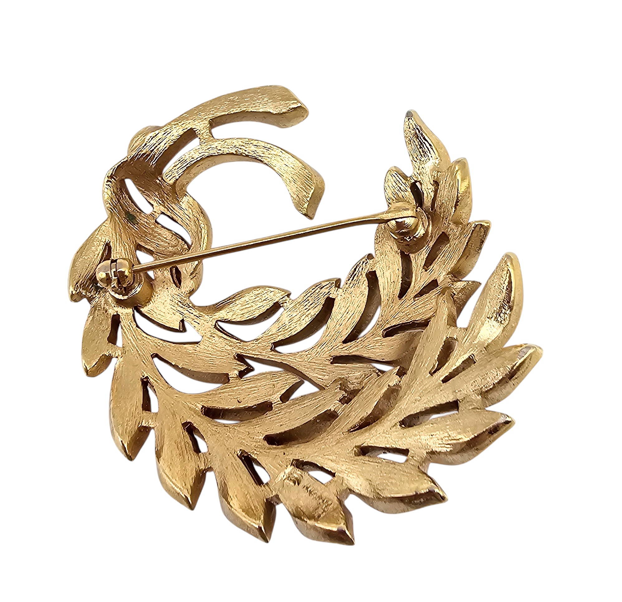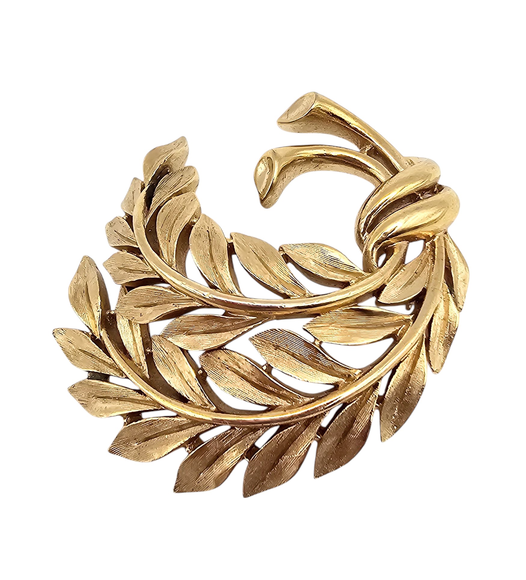 Crown Trifari Vintage Brushed Gold Tone Semi Circle Leaf Brooch