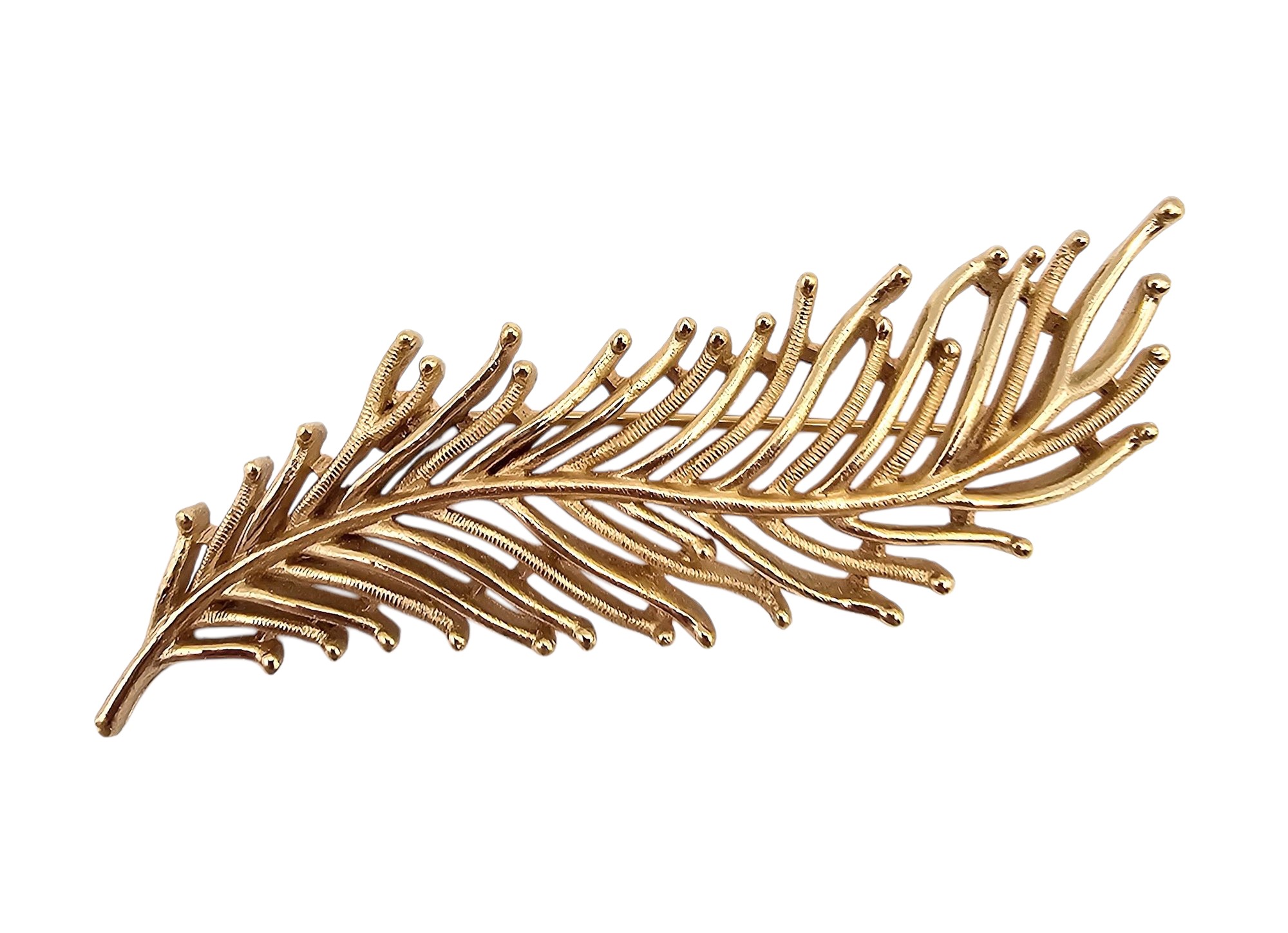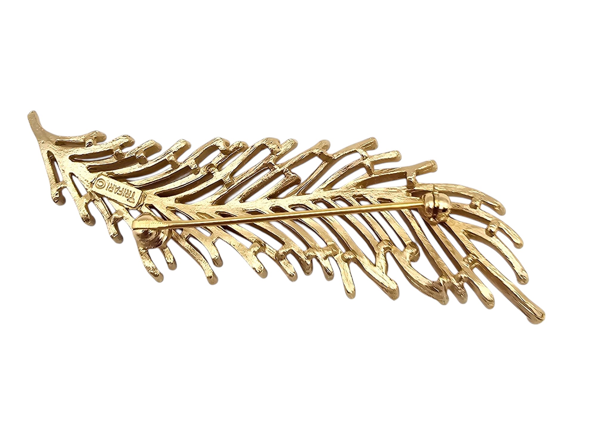 Crown Trifari Vintage Gold Tone Long Spike Leaf Brooch