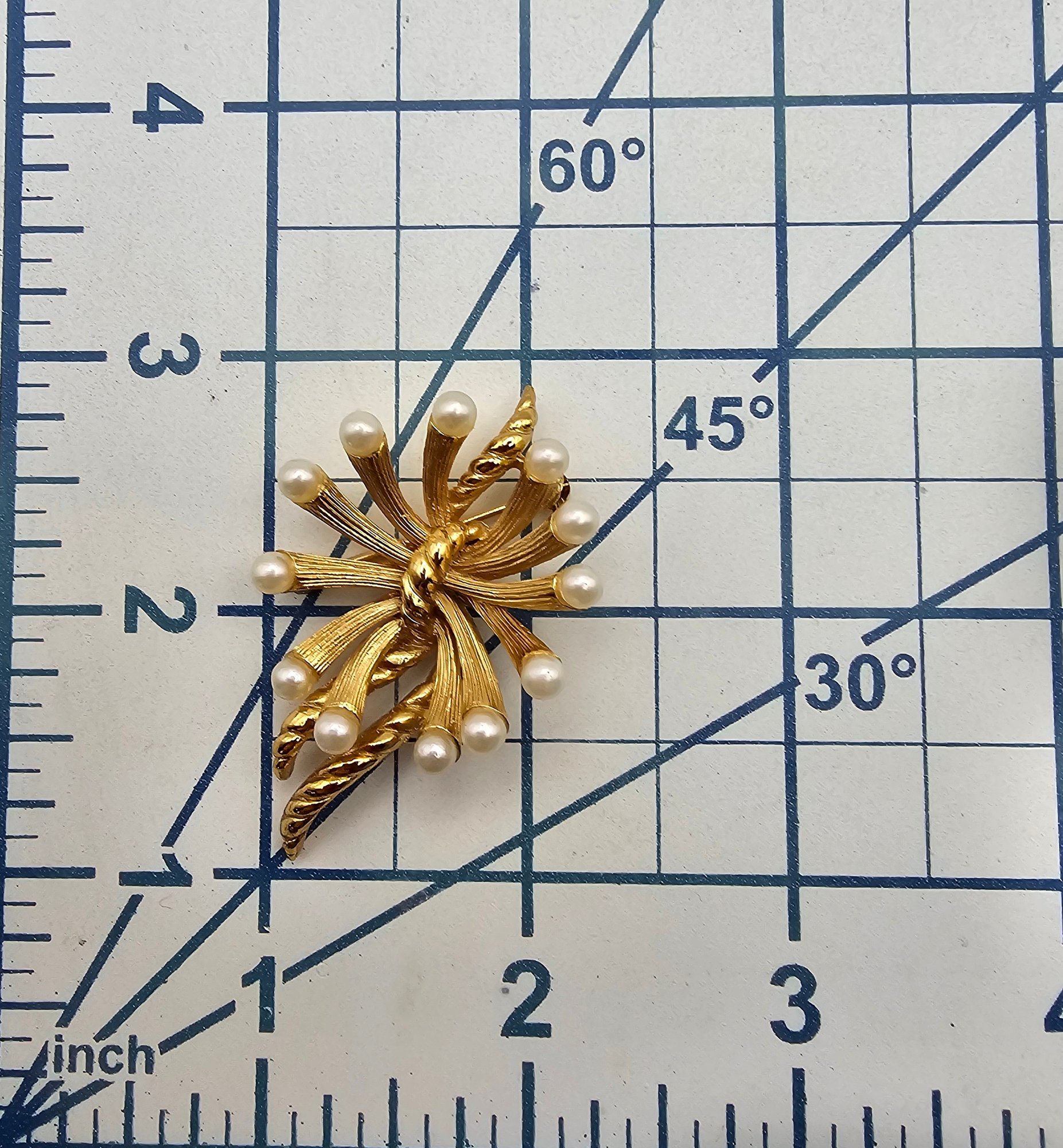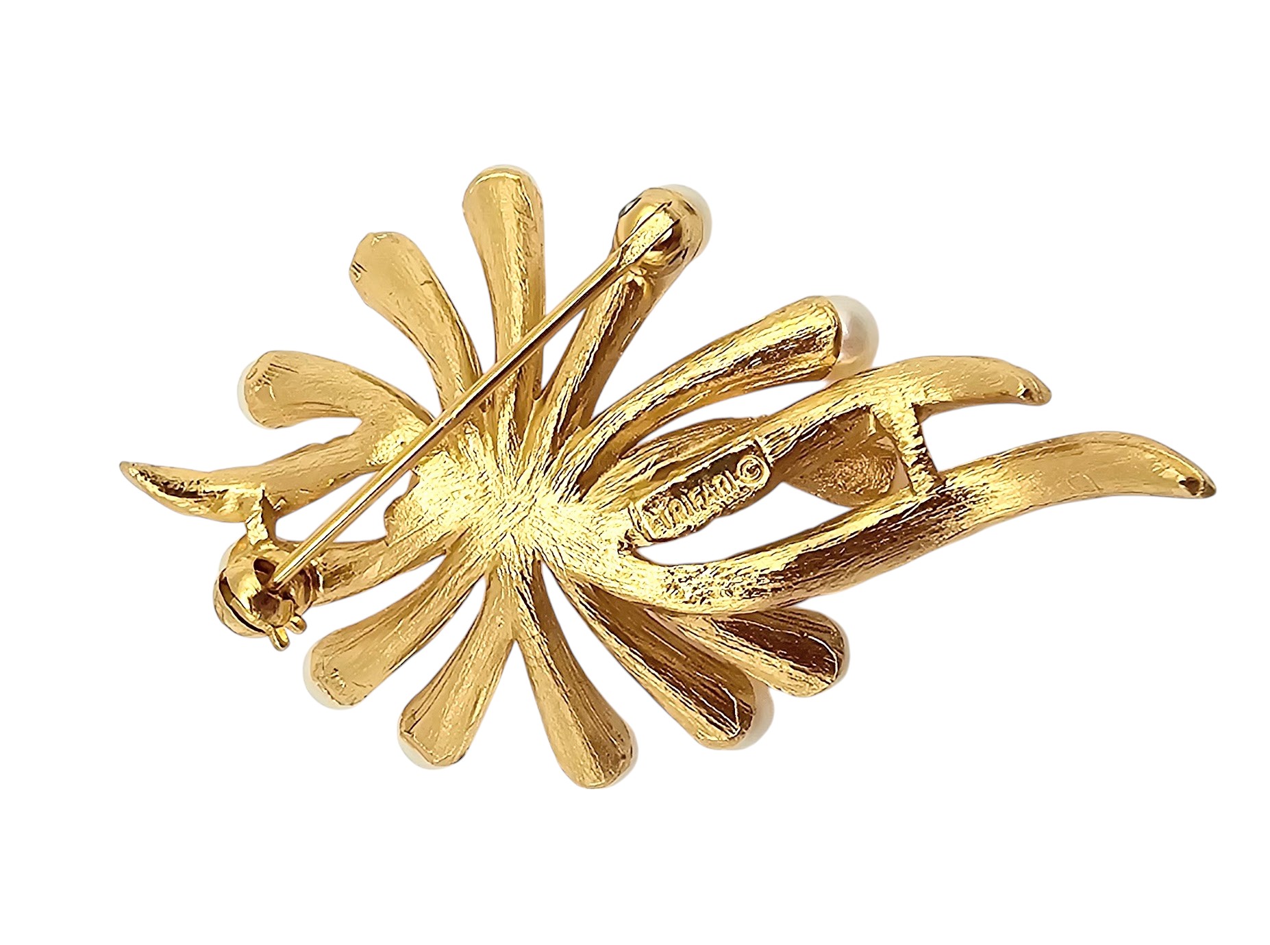 Crown Trifari Faux Pearl Gold Tone Spray Brooch