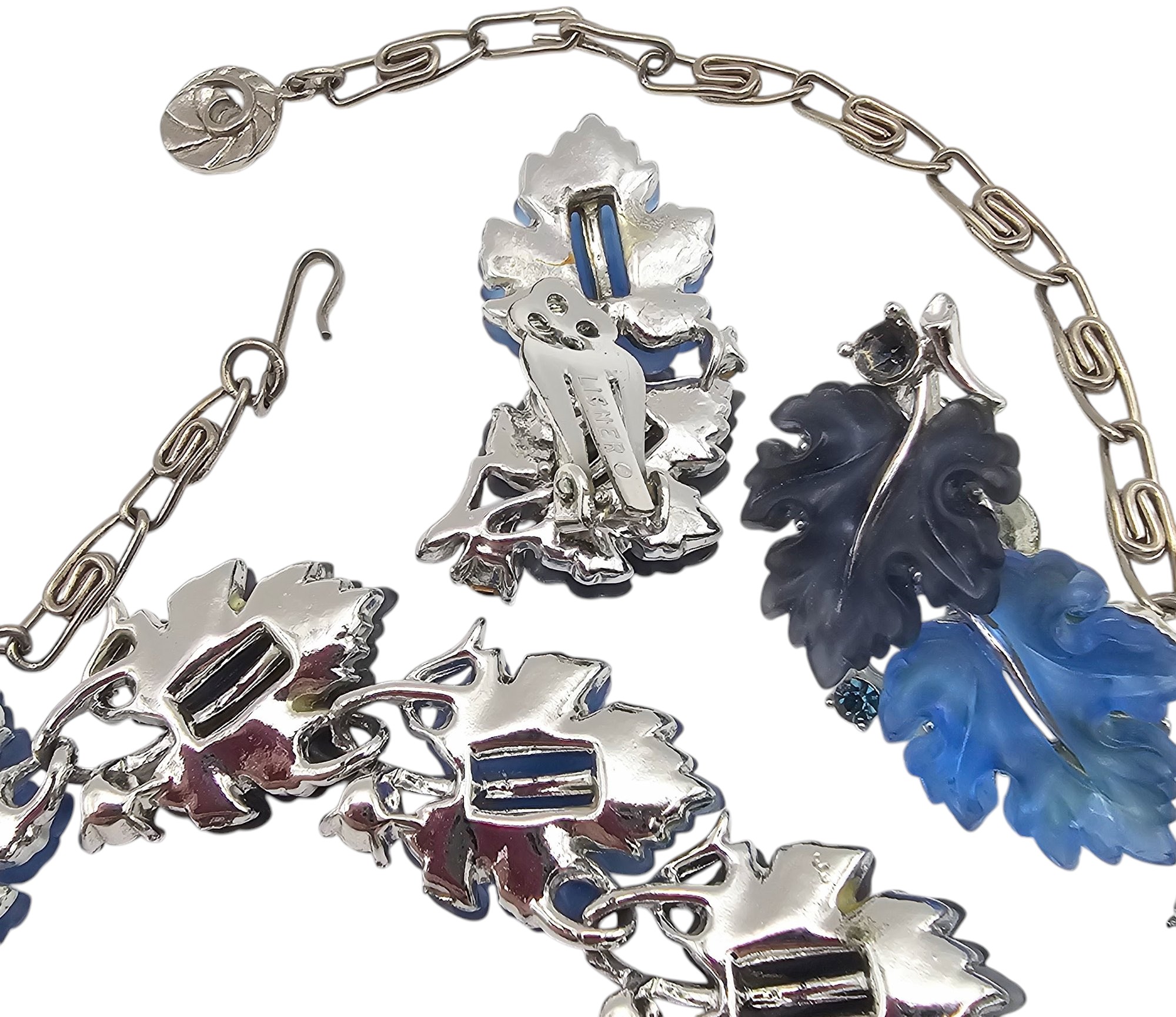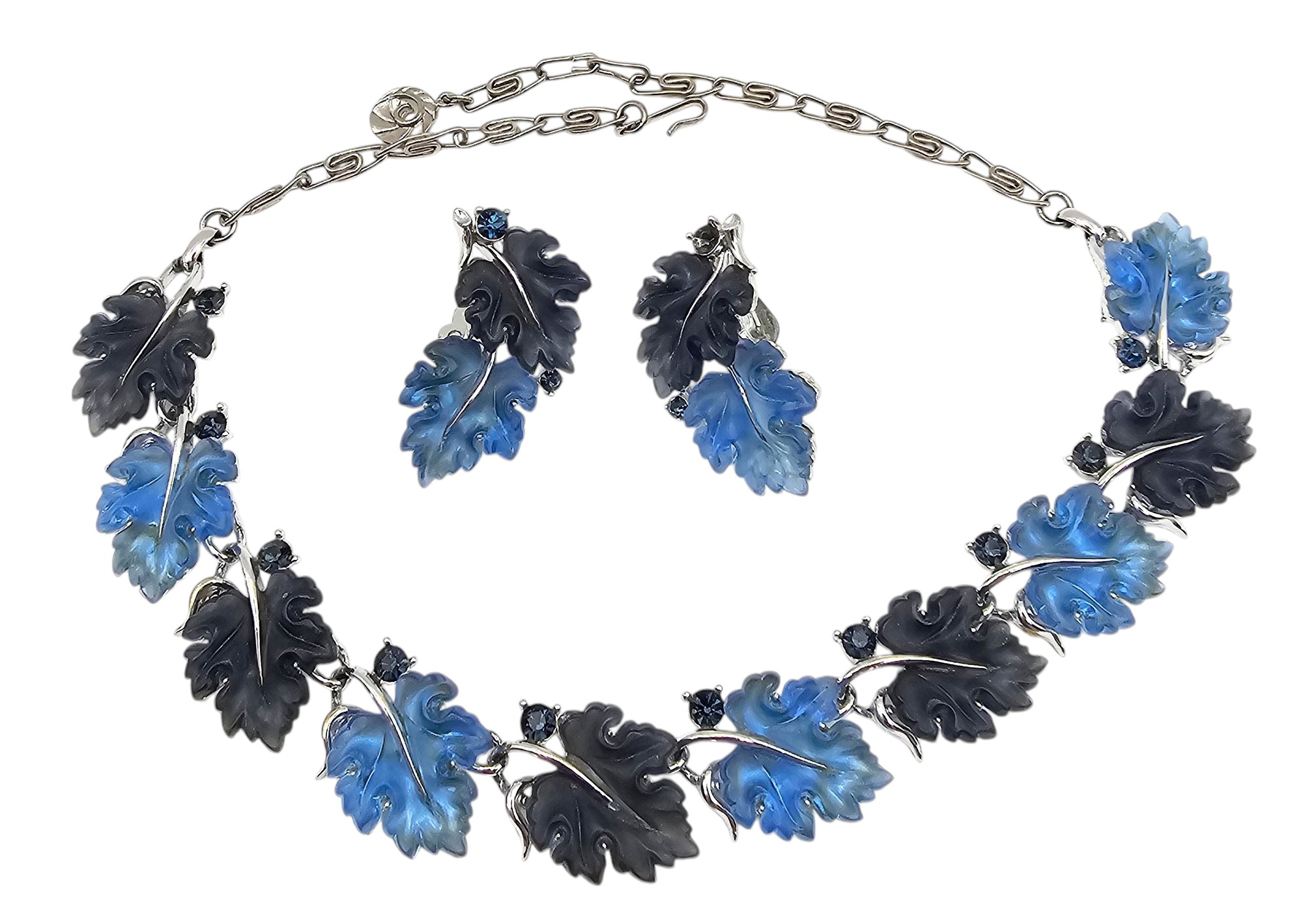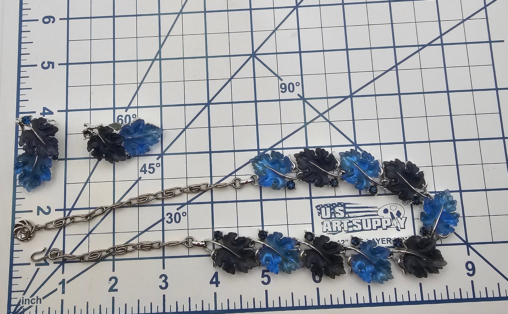 Lisner Vintage Blue Thermoset/Lucite Leaf Necklace Earrings Set