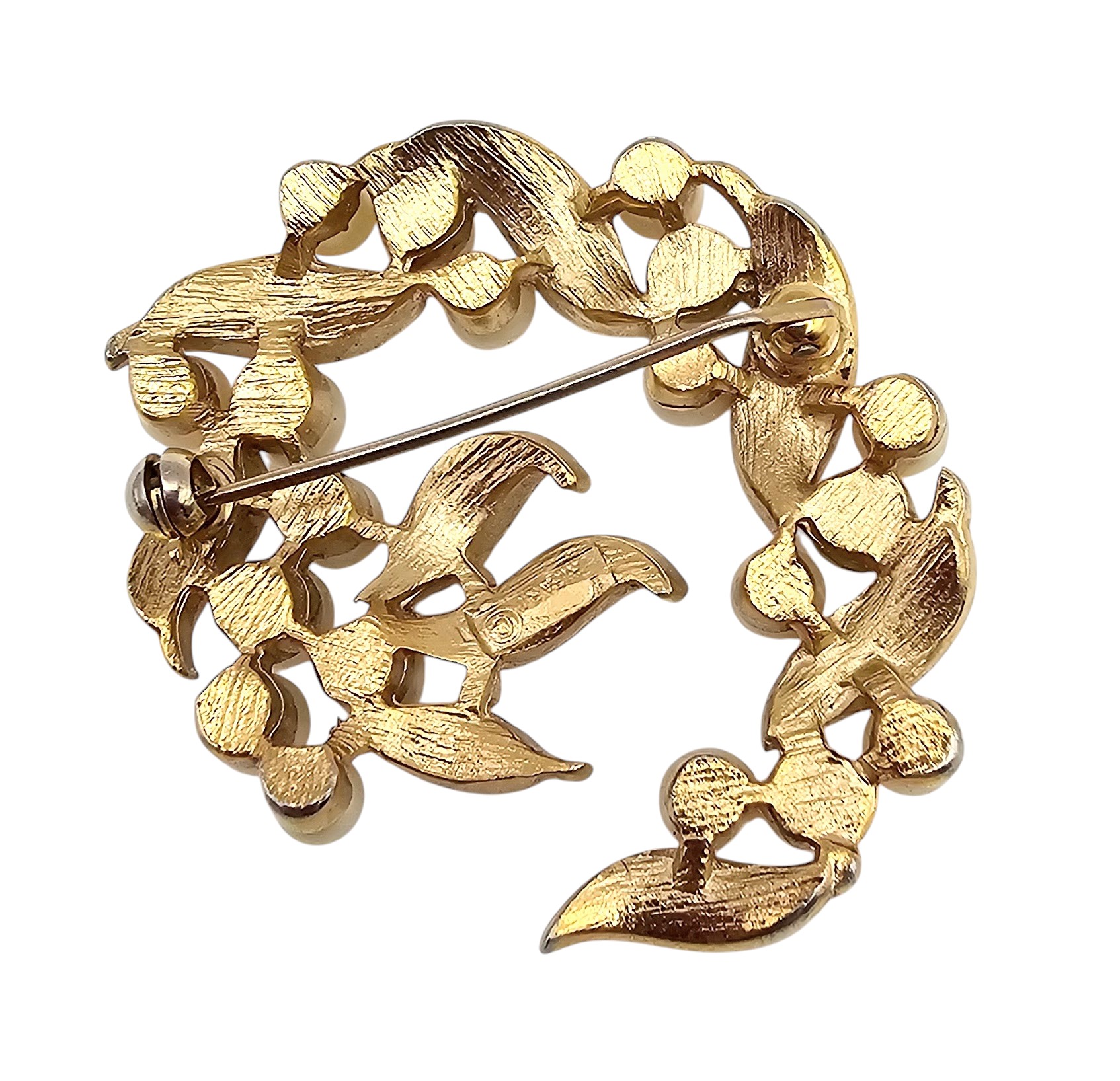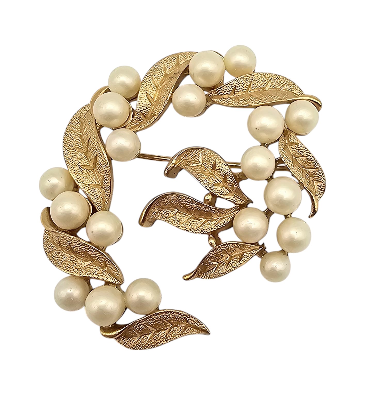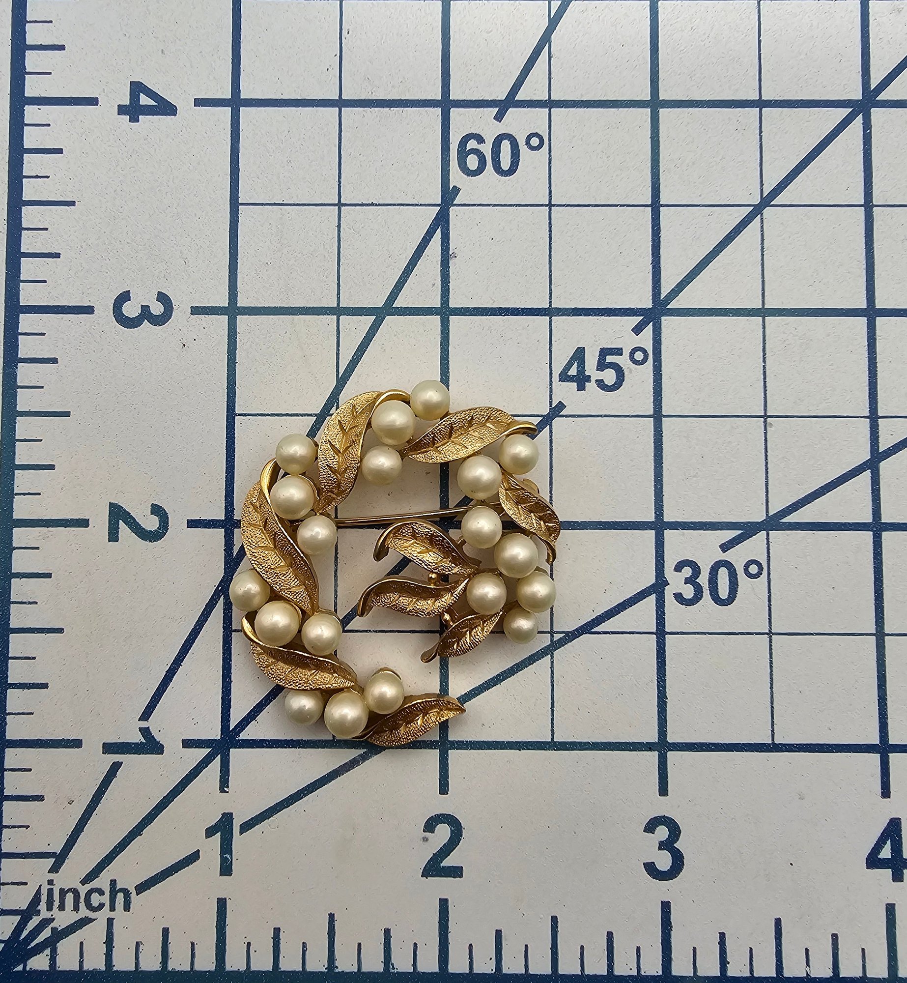 Crown Trifari Vintage Faux Pearl Gold Tone Circle Brooch