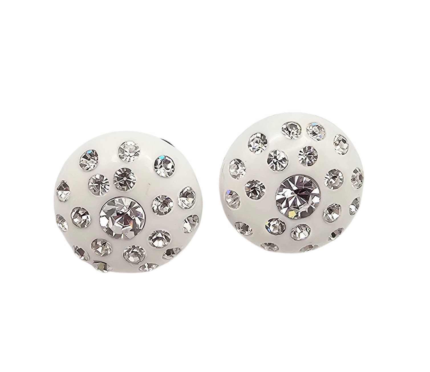 Vintage 1950’s White Thermoset Clear Rhinestone Earrings In a lot from a Weiss Collection