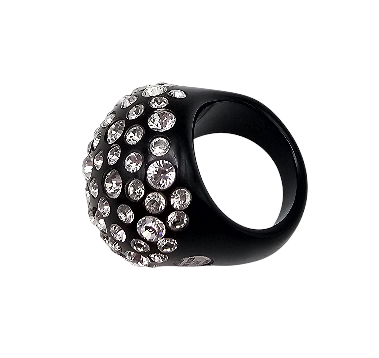Vintage Lucite Italy Black Clear Rhinestone Dome Ring Size 6.25