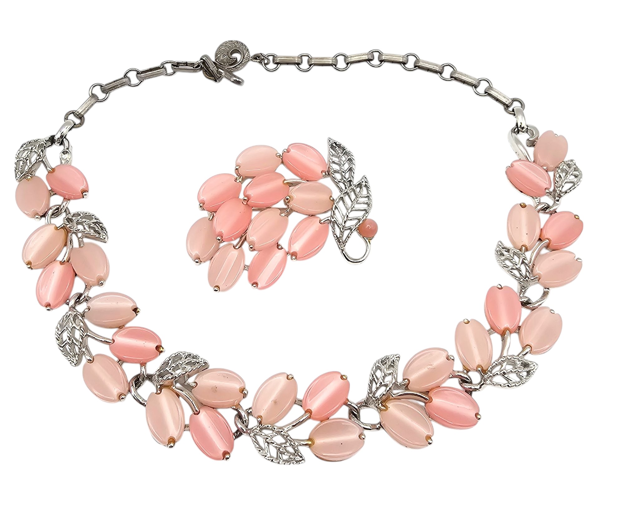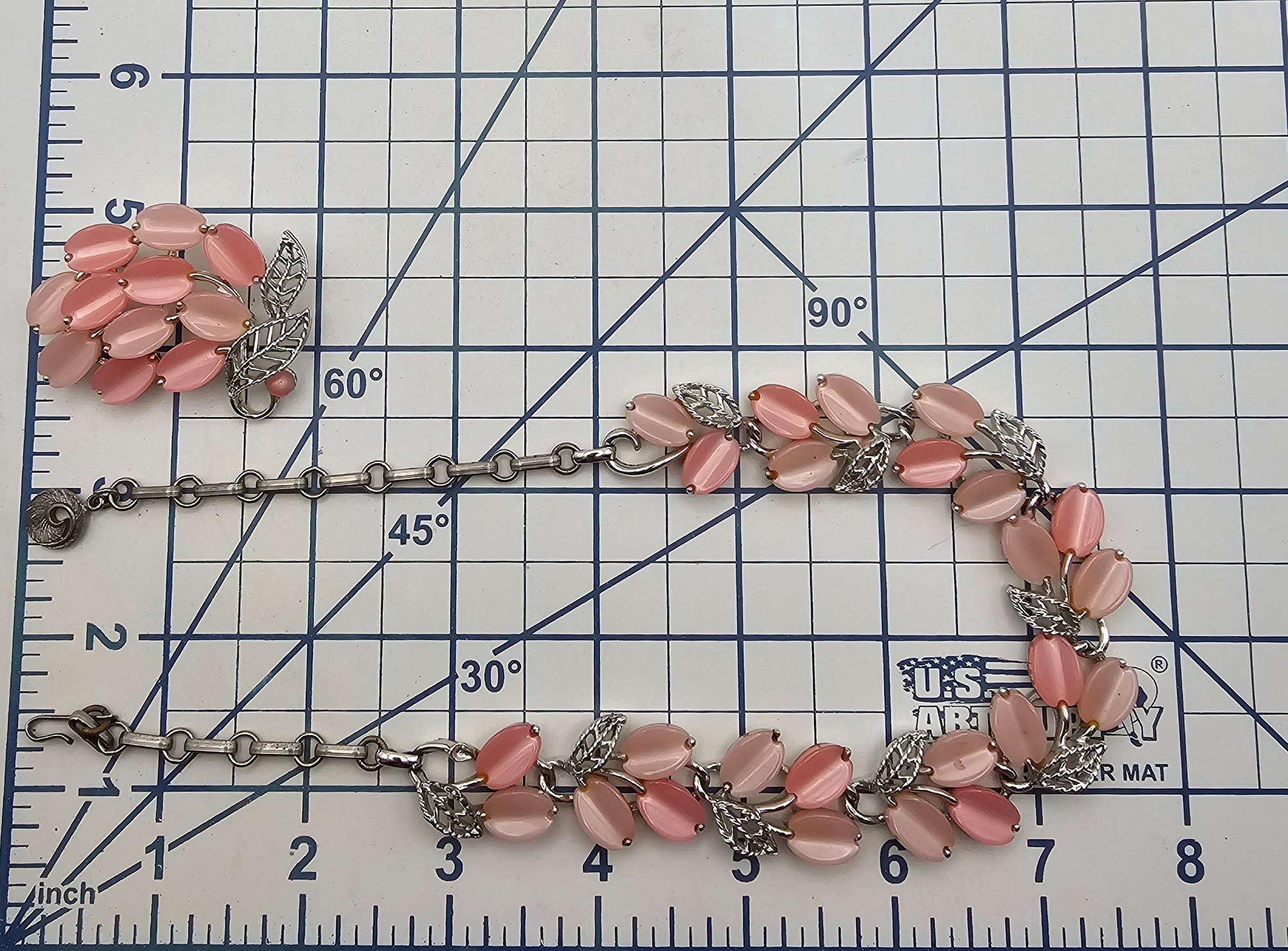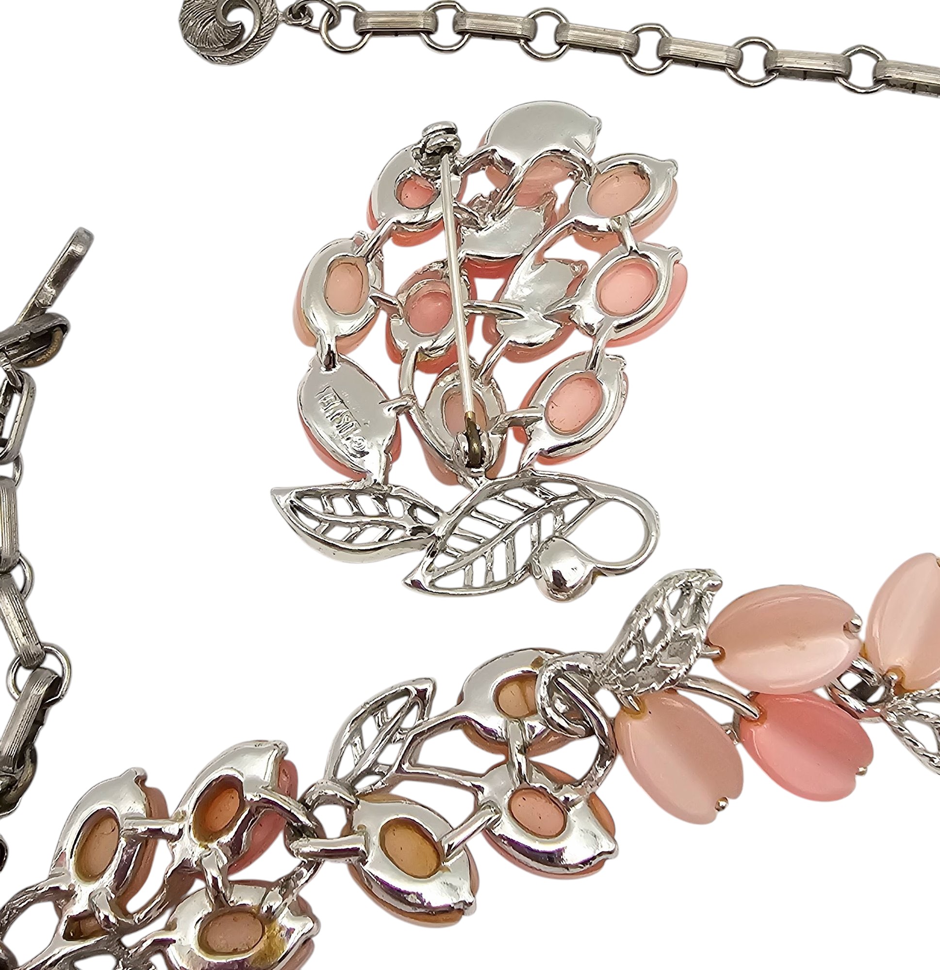Lisner Vintage Pink Thermoset/Lucite Silver Tone Bracelet Brooch Set