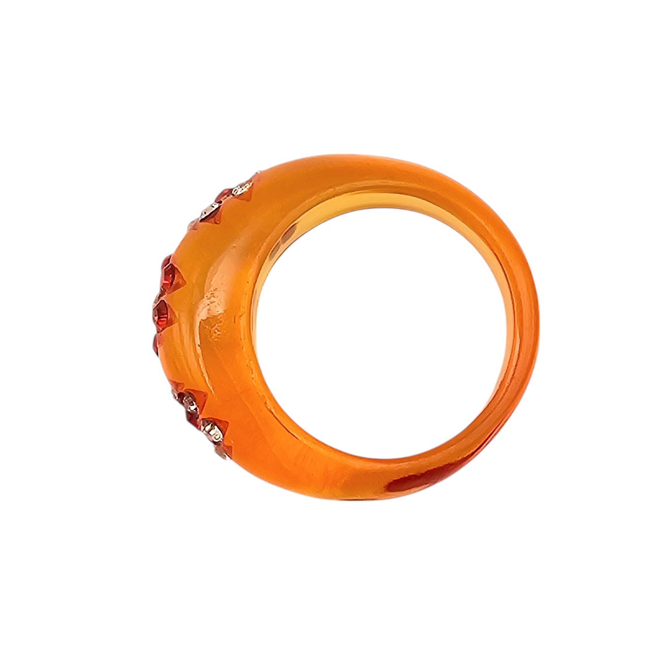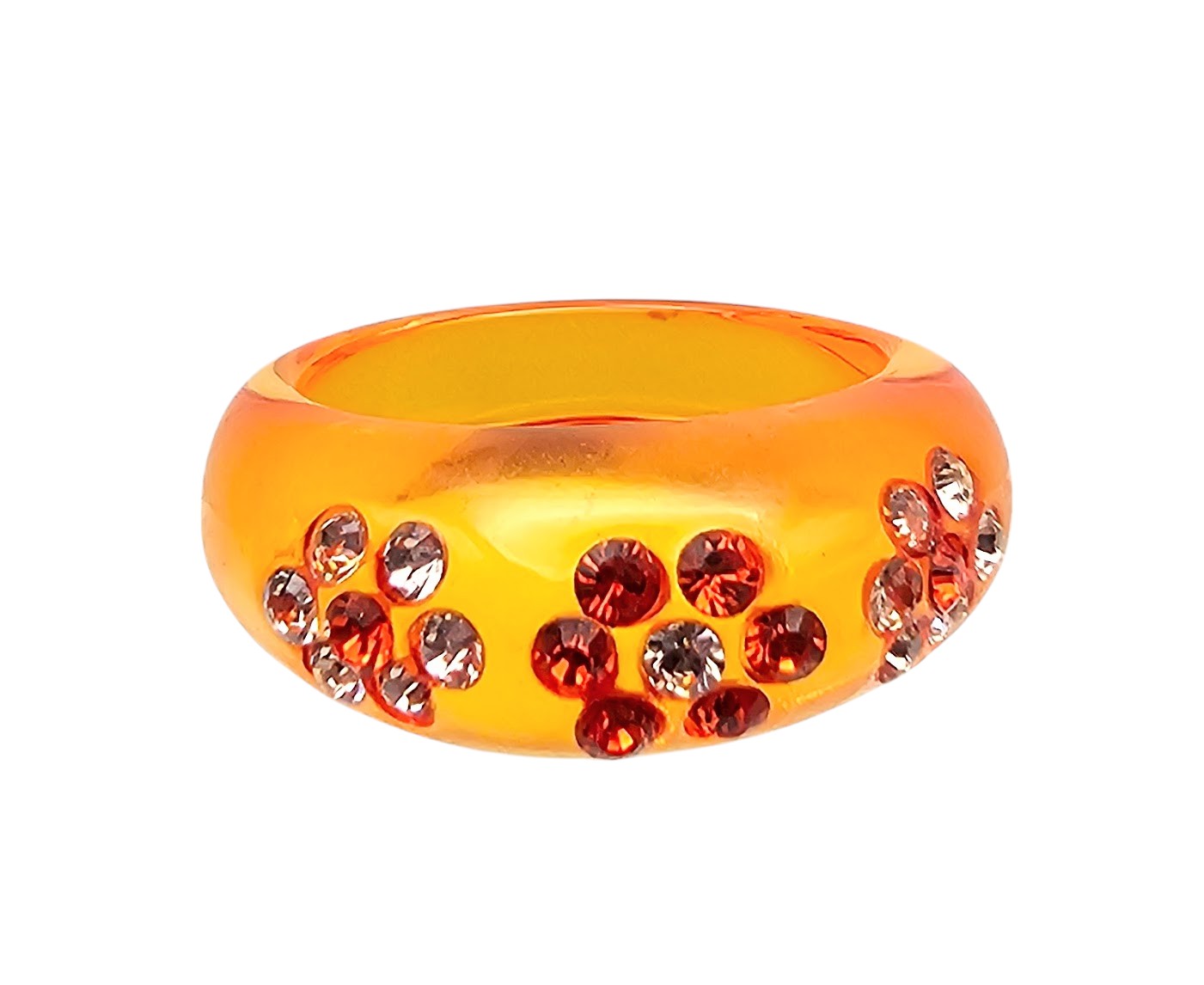 Vintage 1950’s Orange Lucite Floral Rhinestone Ring Size 7.5