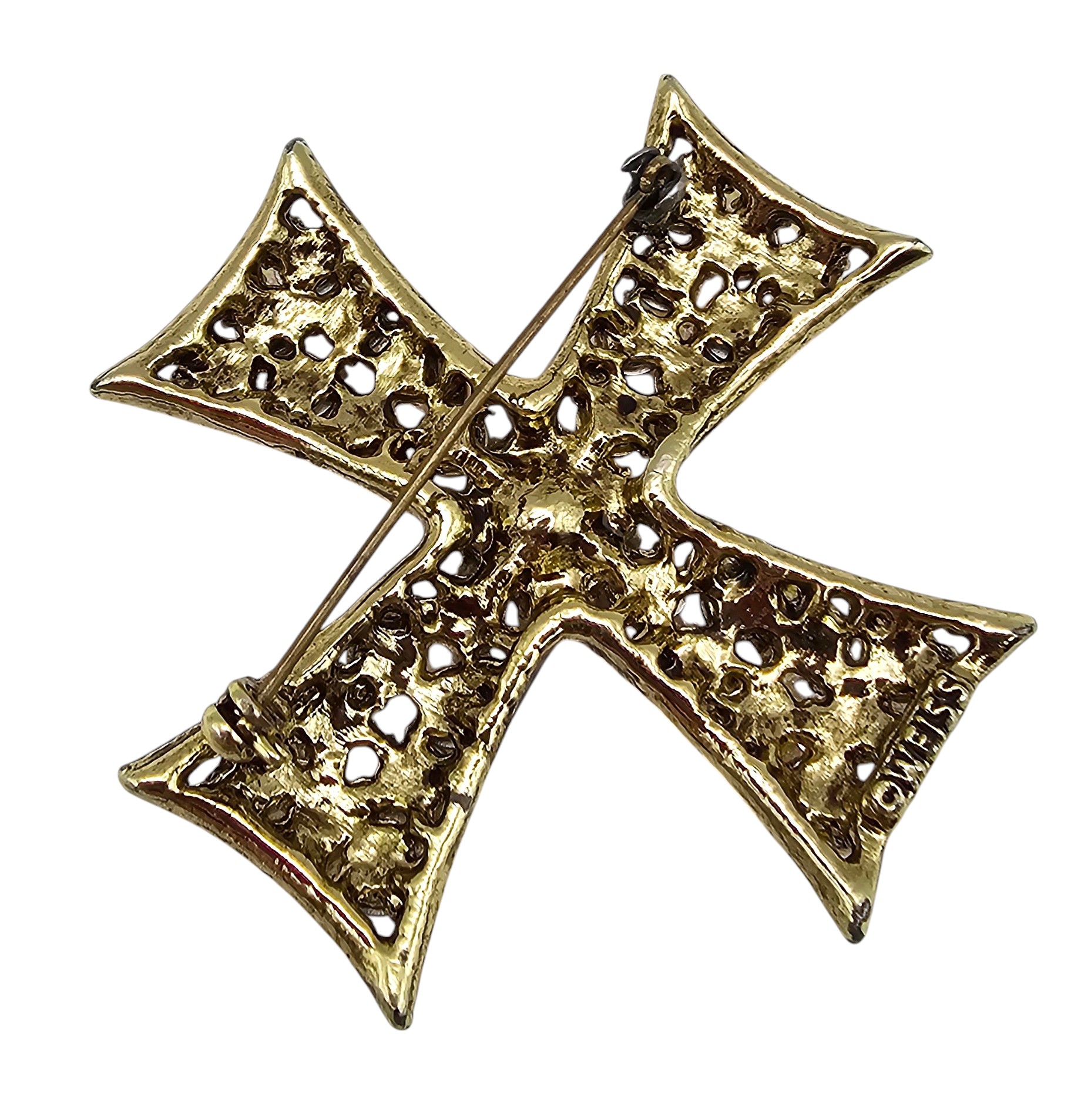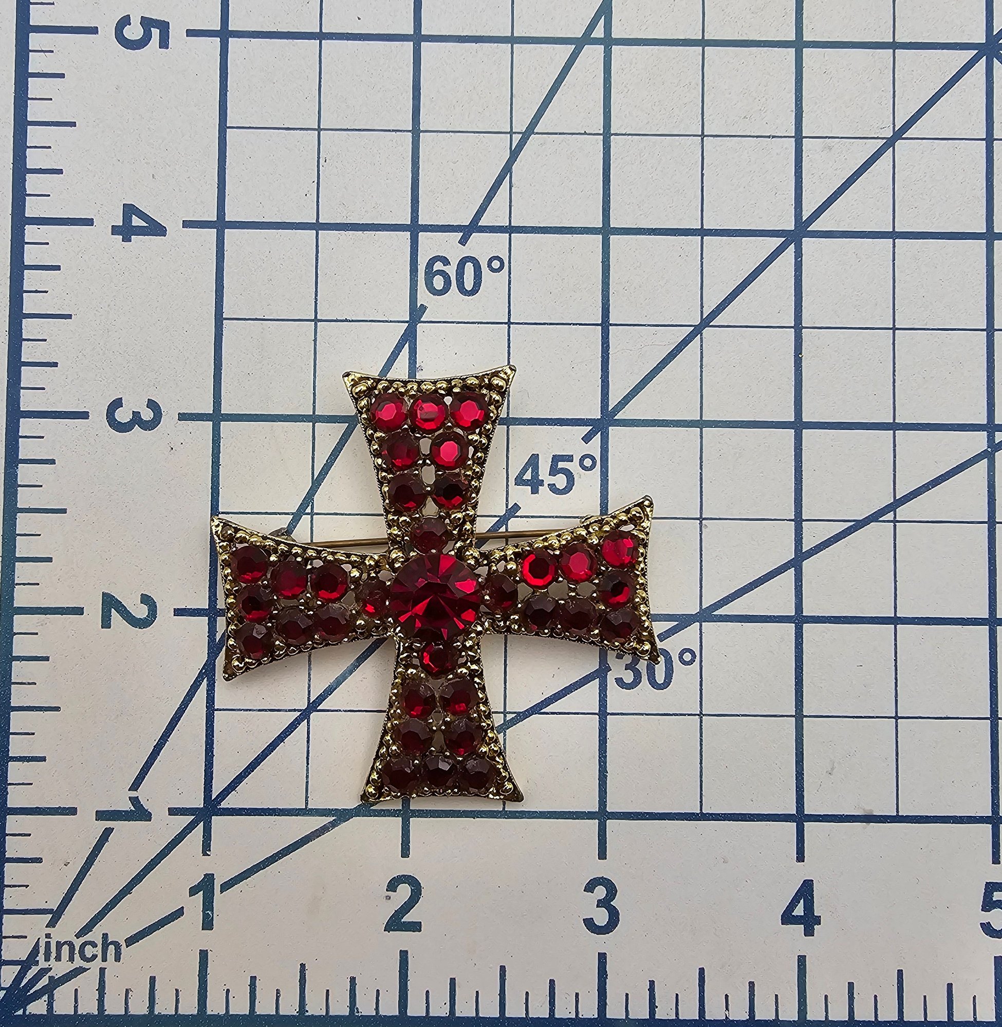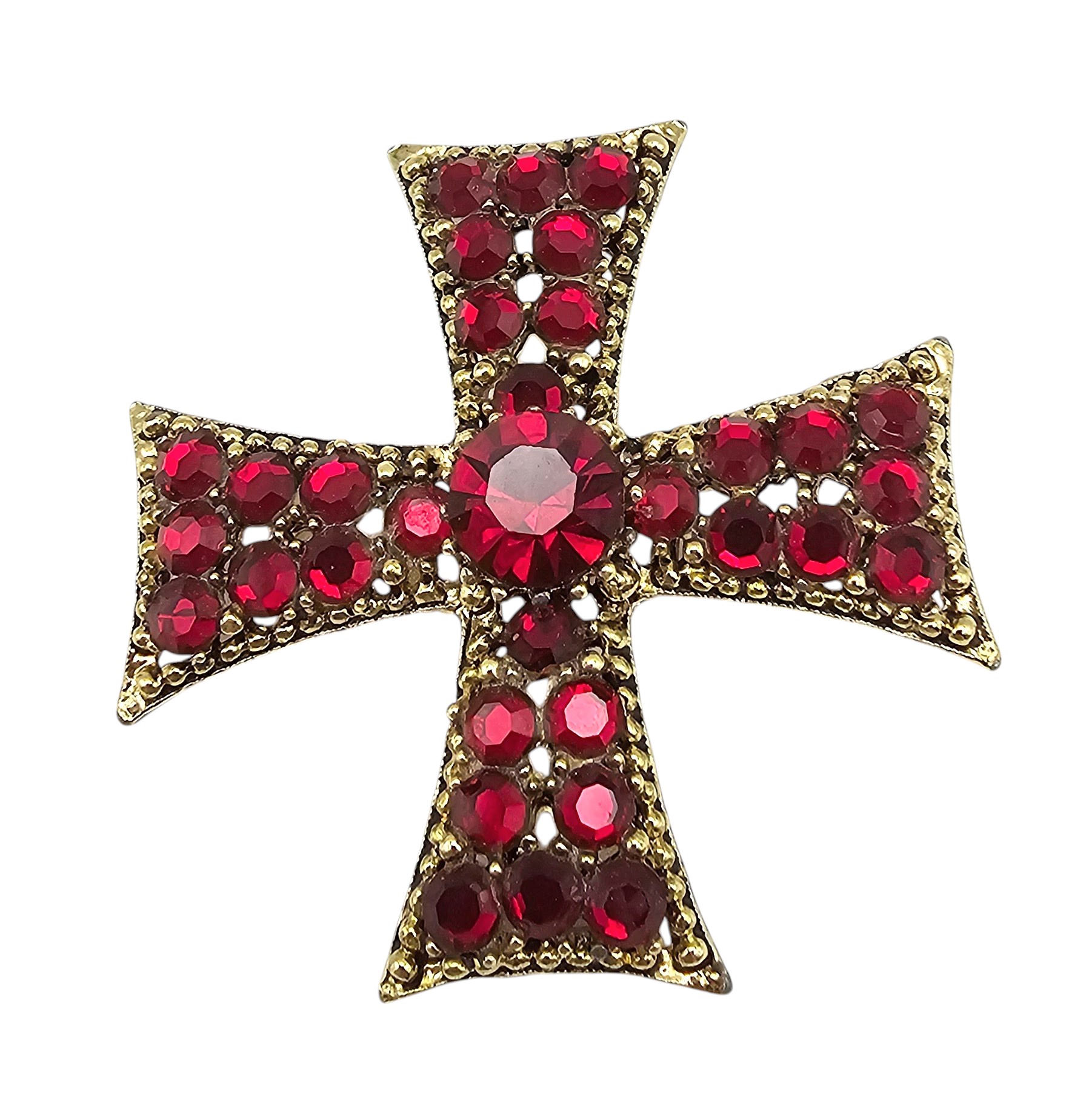 Weiss Vintage Red Rhinestone Gold Tone Cross Brooch