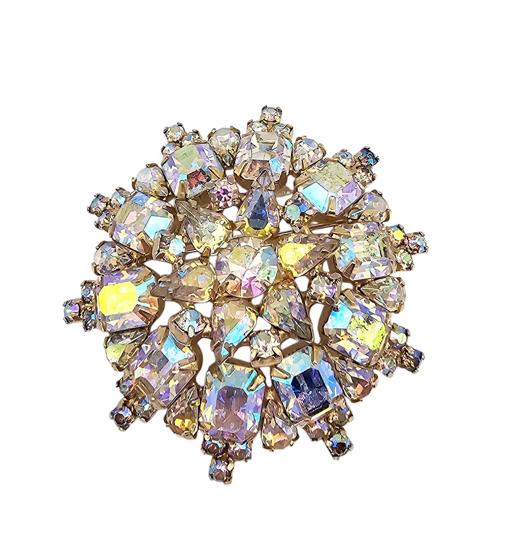 Weiss Vintage Aurora Borealis Silver Tone Dome Burst Brooch