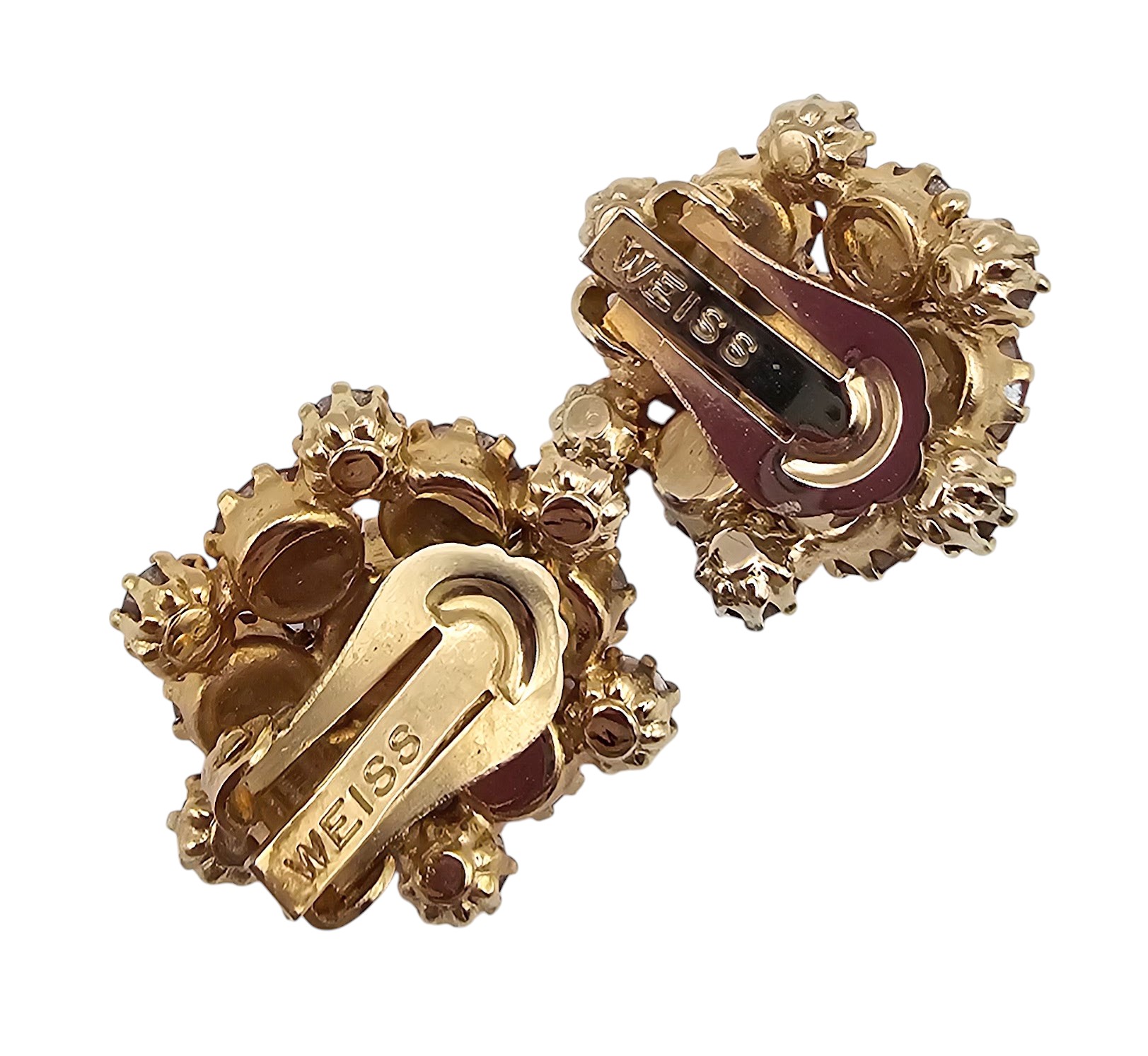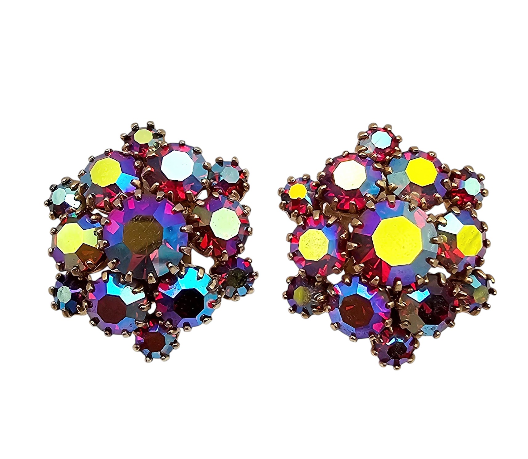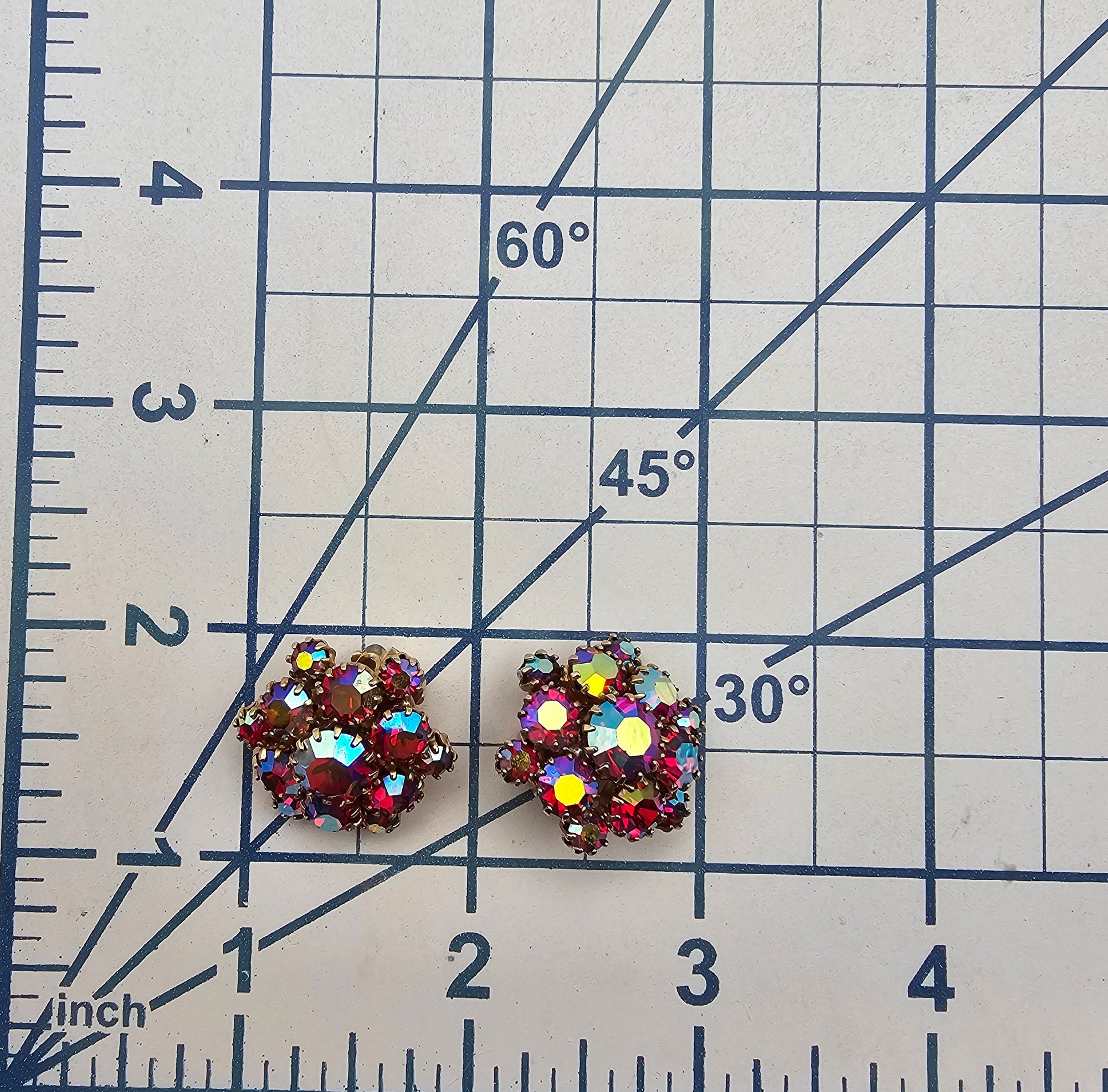 Weiss Red Aurora Borealis Rhinestone Cluster Earrings