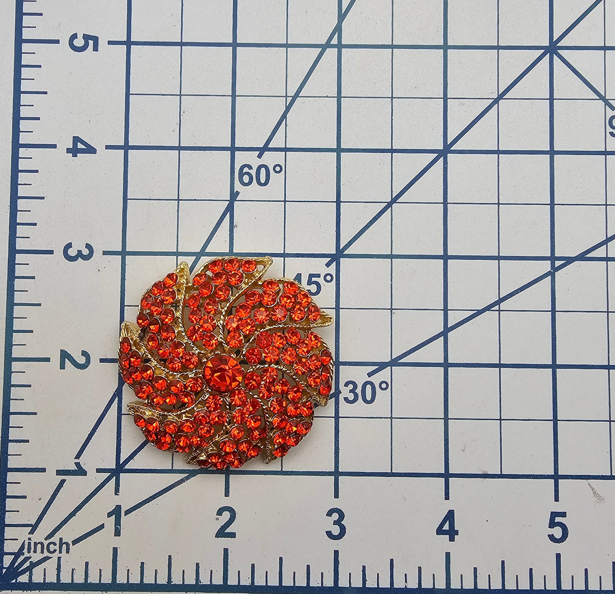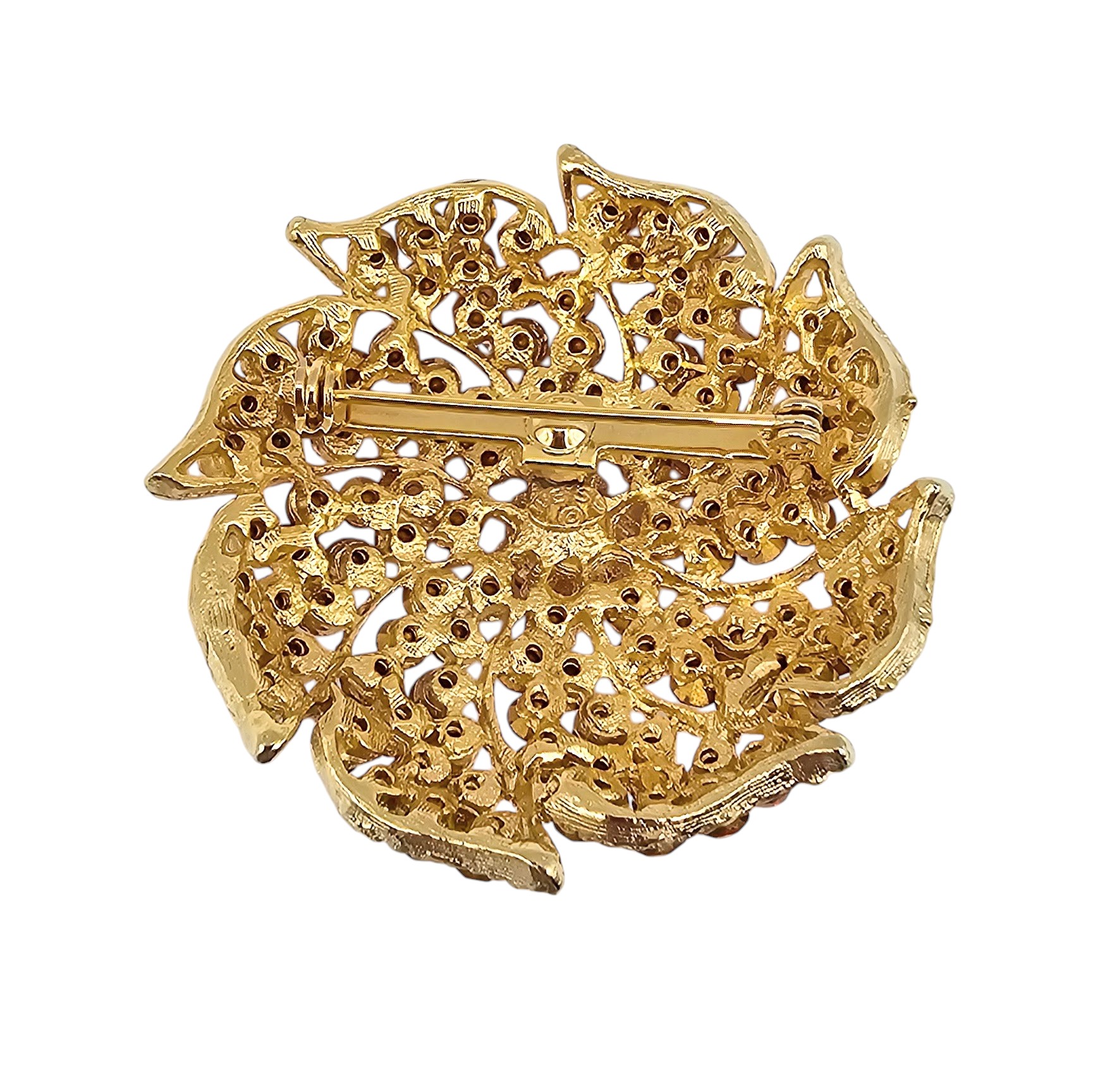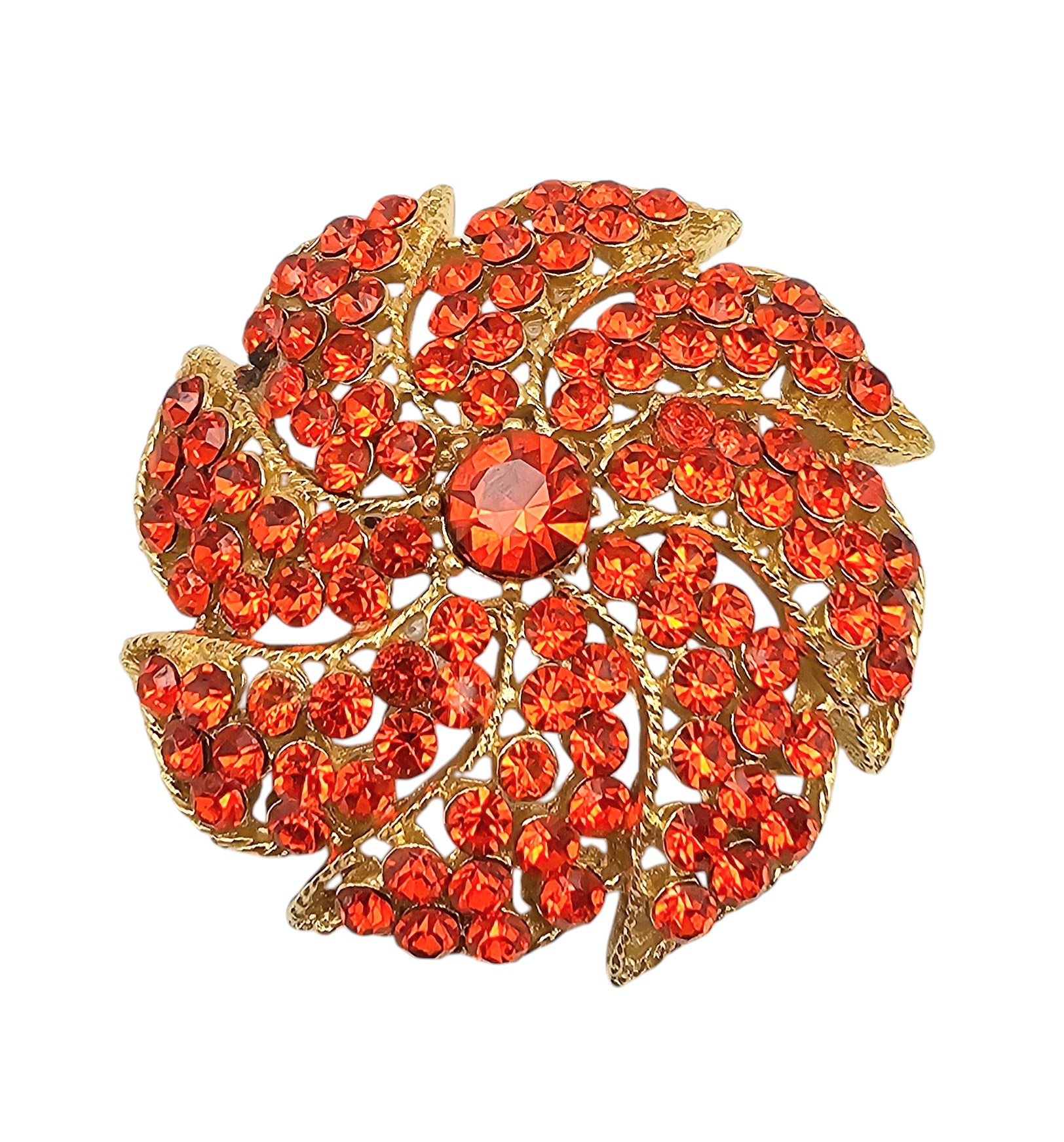 Weiss Vintage Vibrant Orange Rhinestone Gold Tone Sunburst Brooch