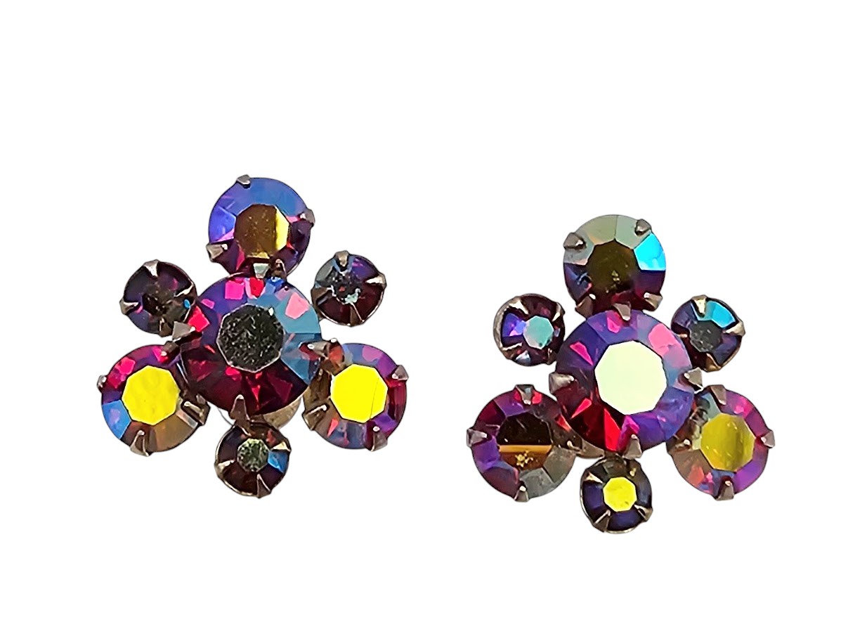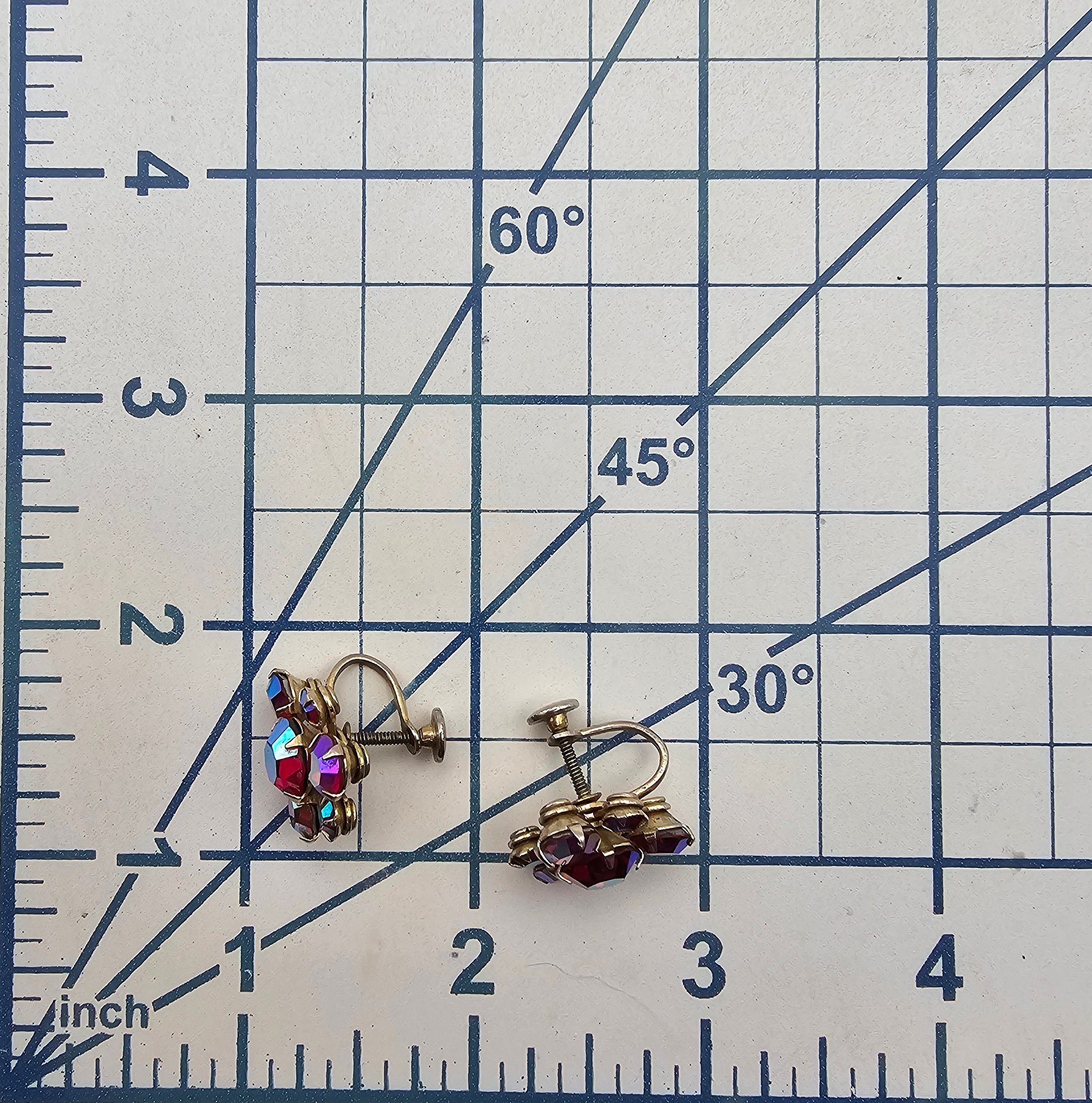 Weiss Red Aurora Borealis Rhinestone Gold Tone Earrings