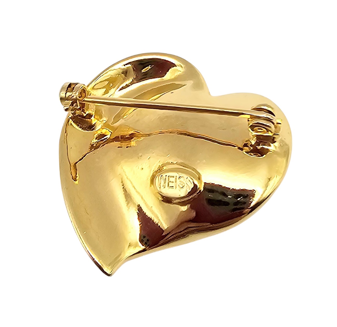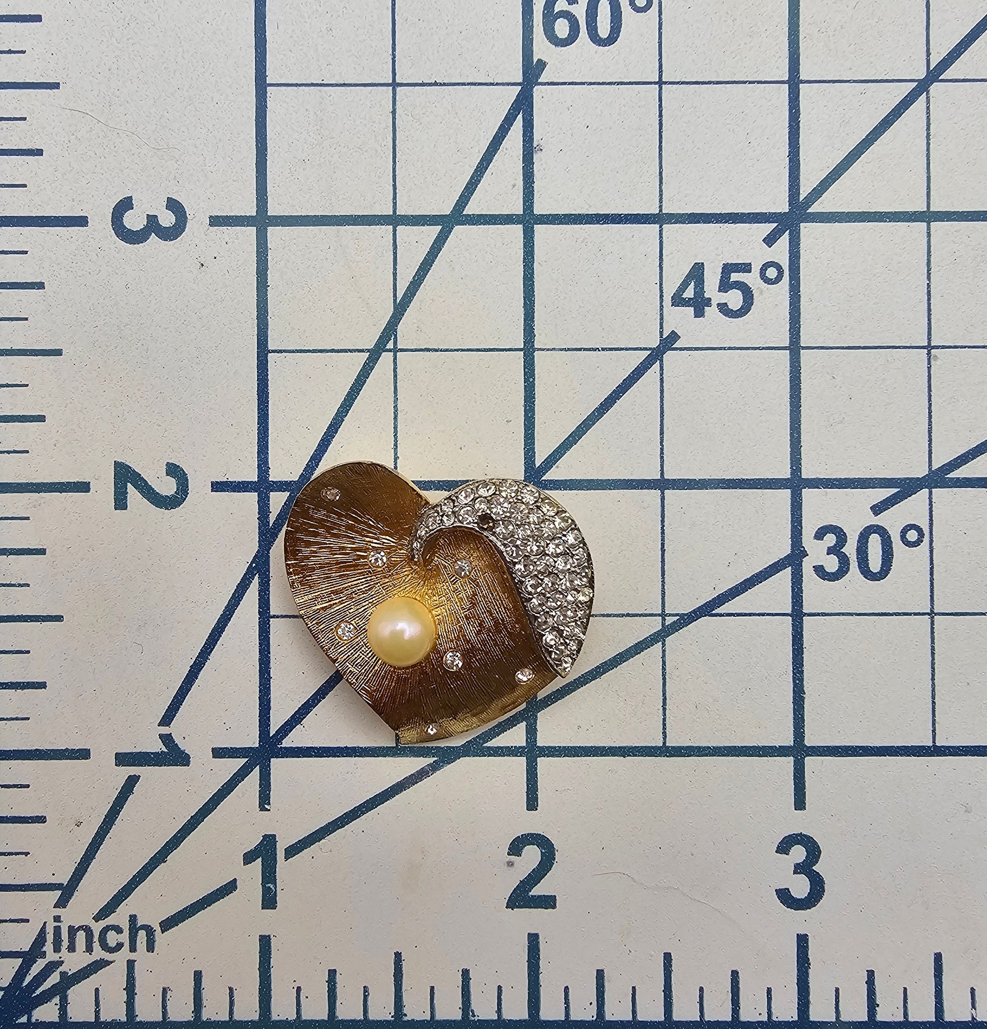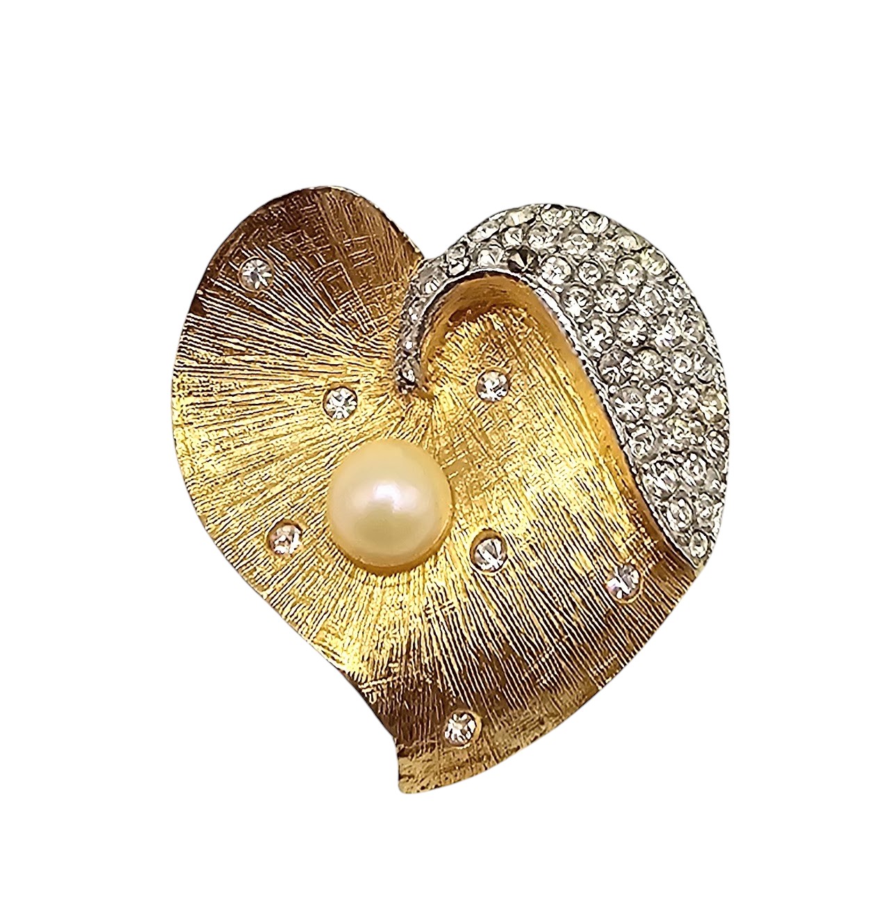 Weiss Faux Pearl Rhinestone Gold Tone Leaf Brooch