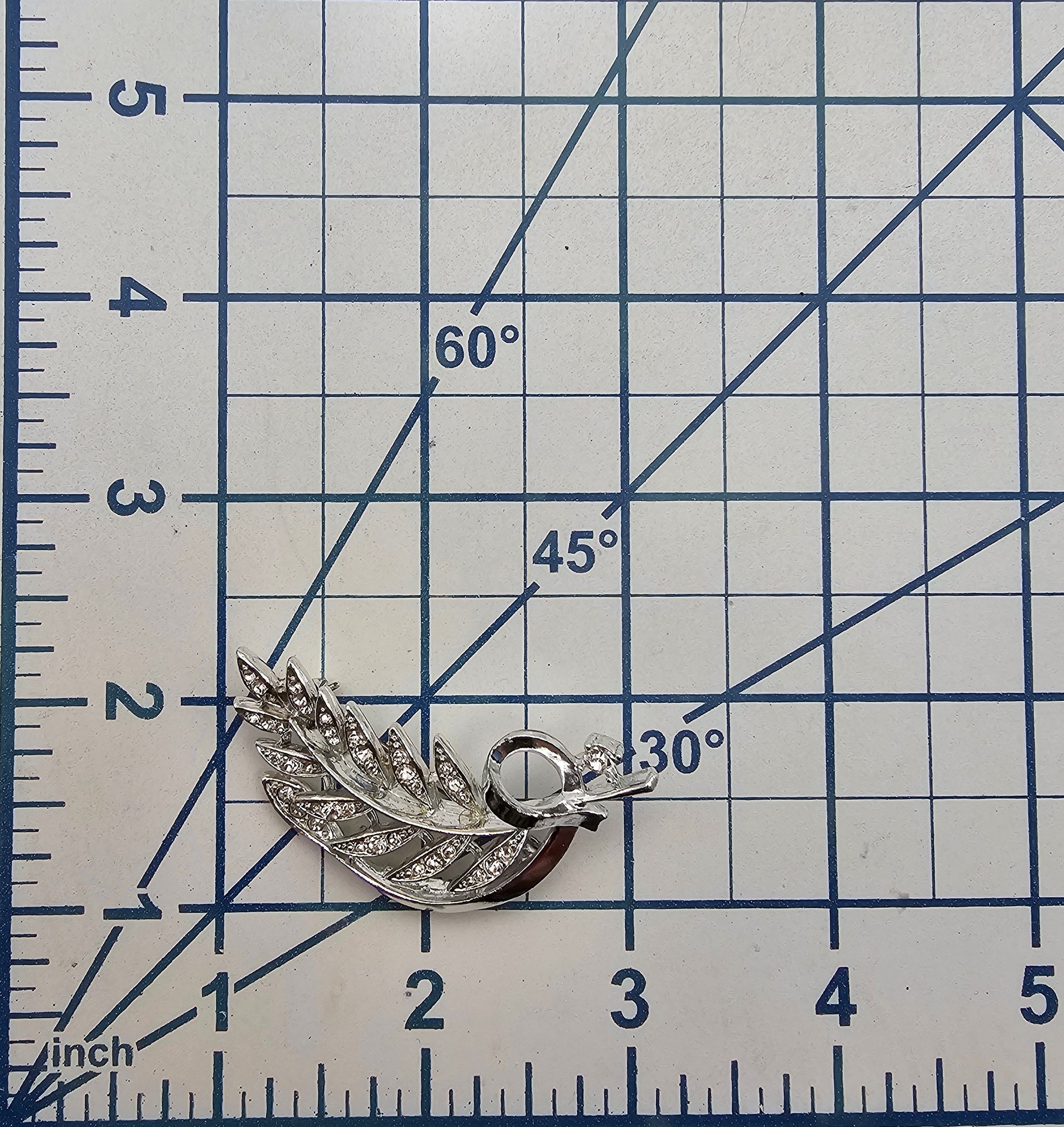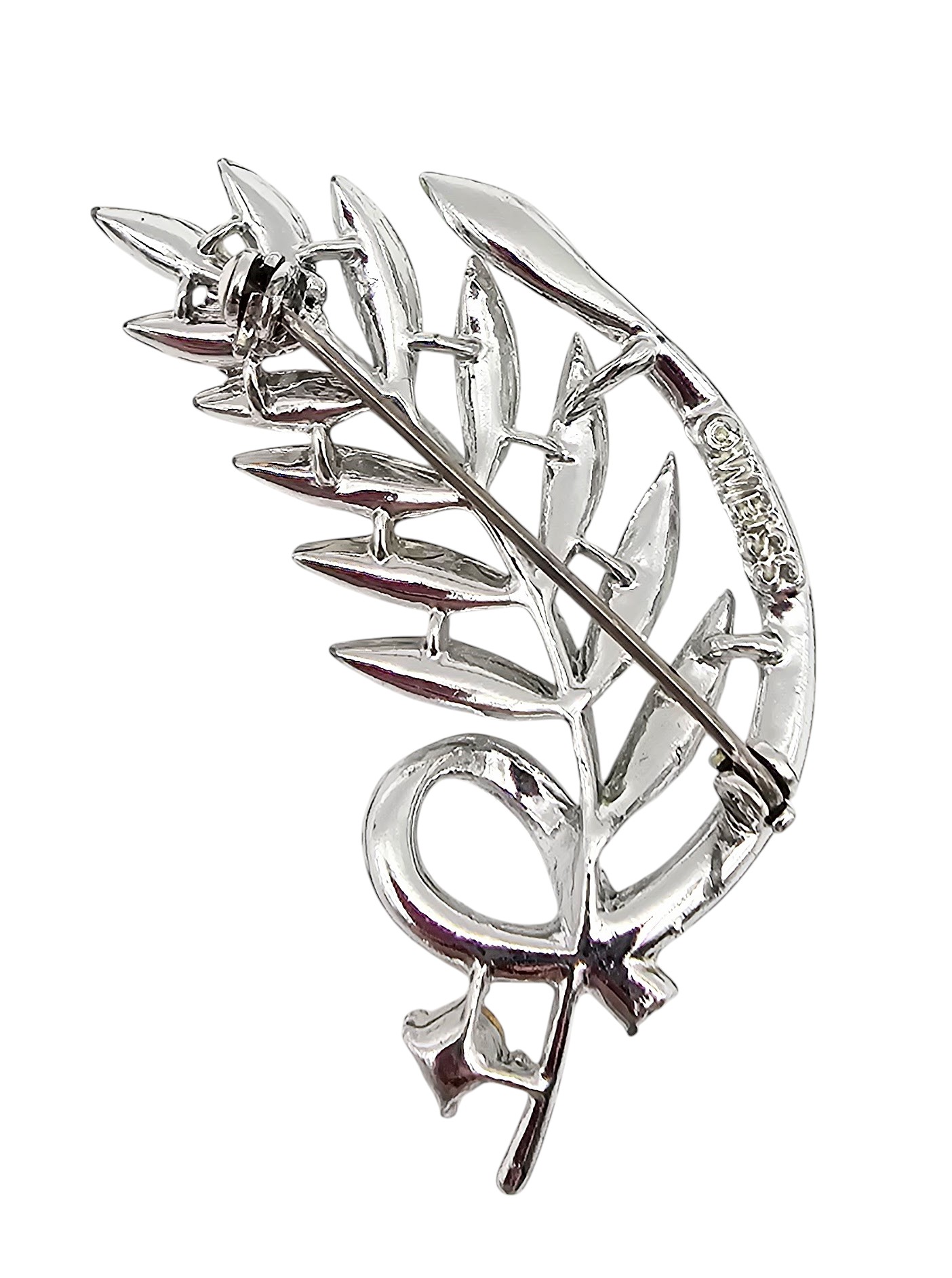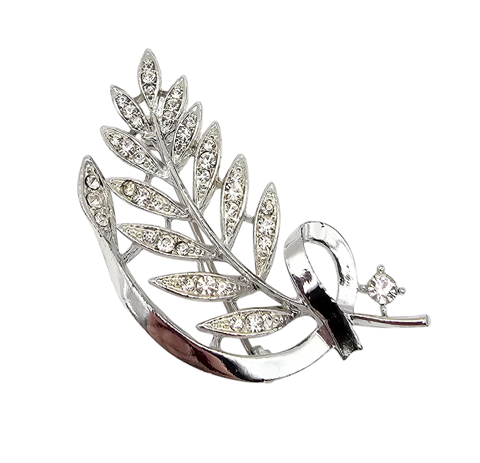 Weiss Vintage Clear Rhinestone Silver Tone Leaf Brooch