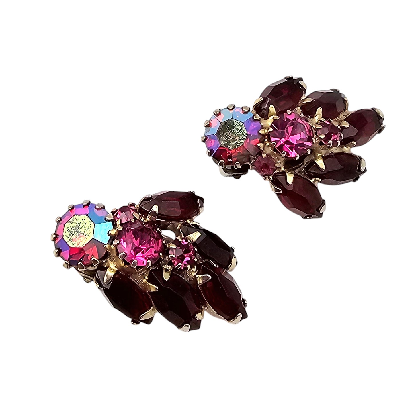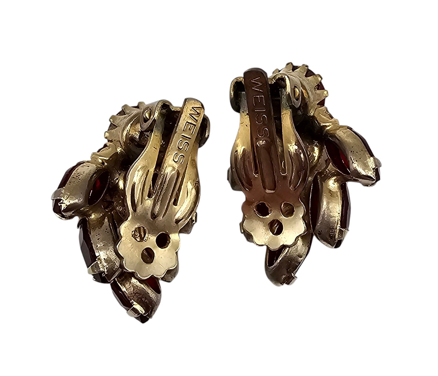 Weiss Red Rhinestone Gold Tone Earrings