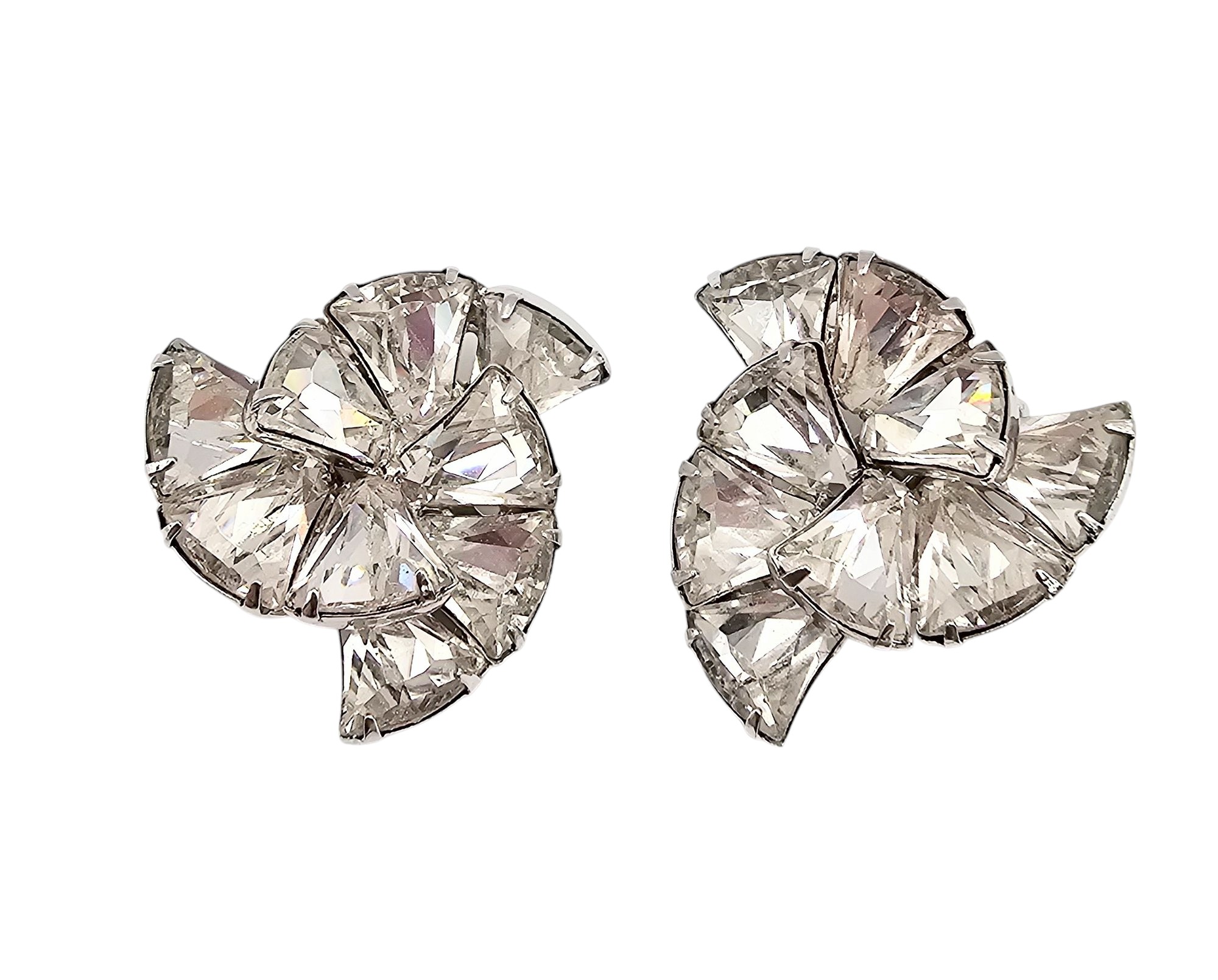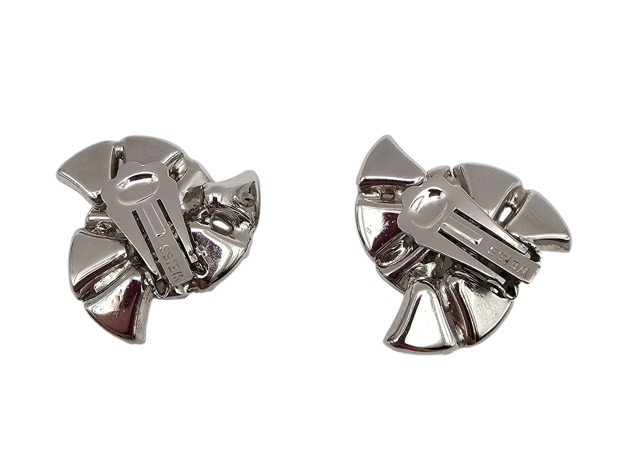 Weiss Vintage Clear Rhinestone Silver Tone Swirl Earrings