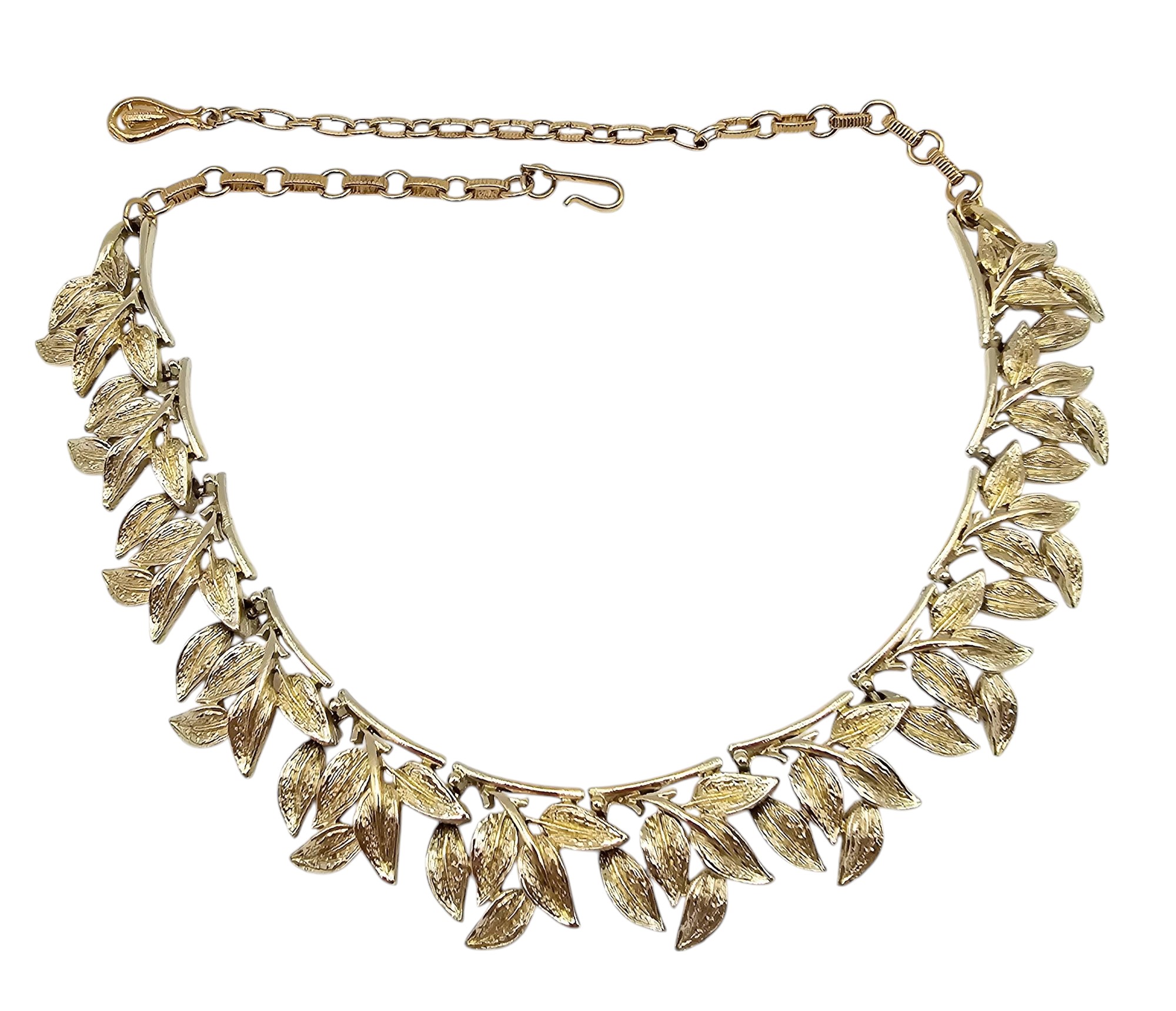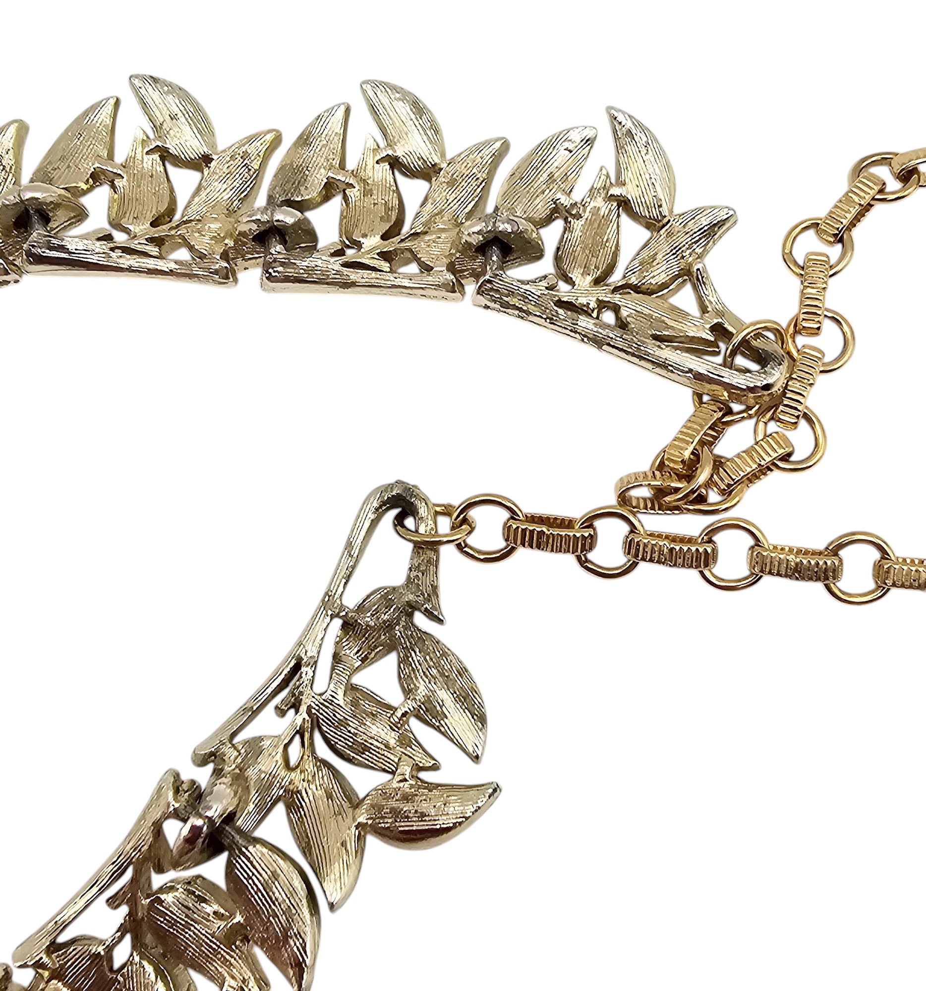 Coro Vintage Brushed Gold Tone Leaf Link Necklace