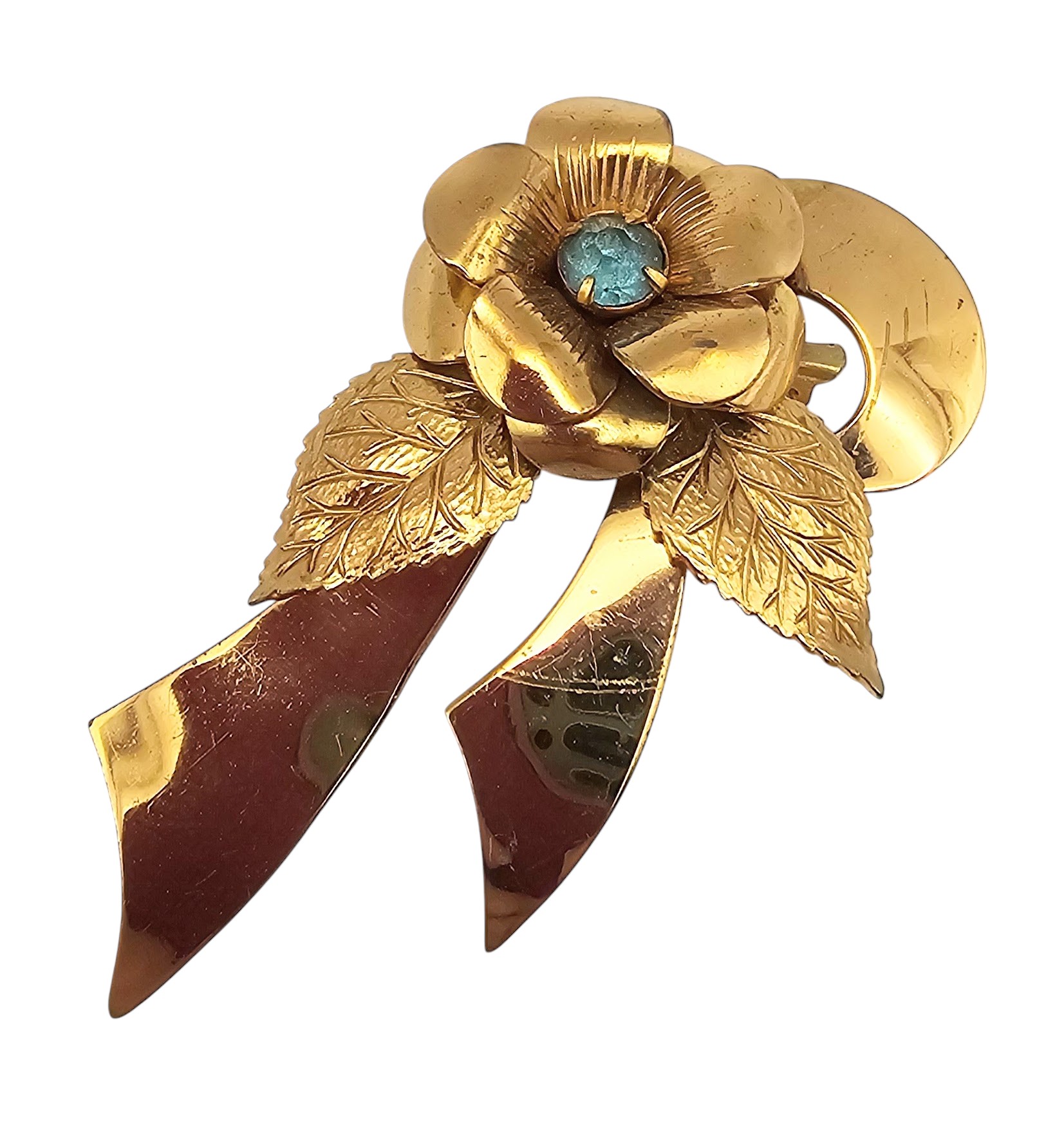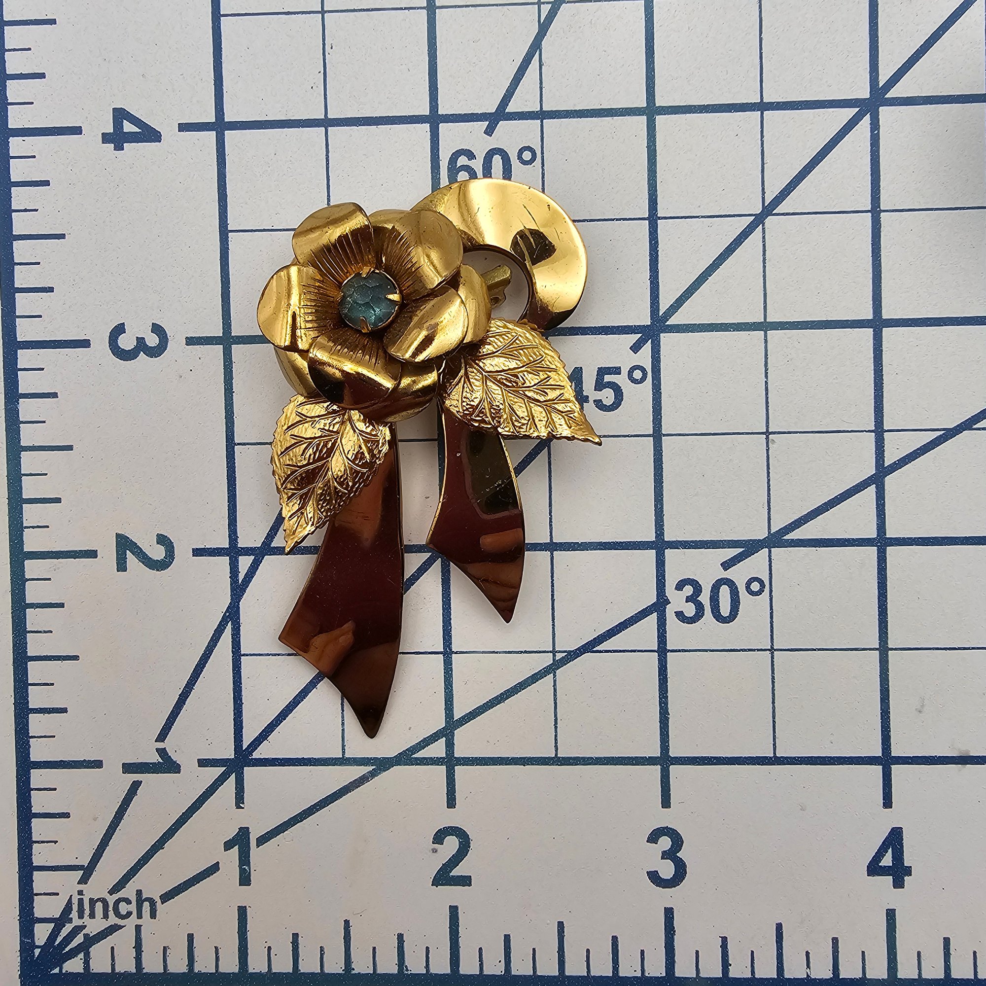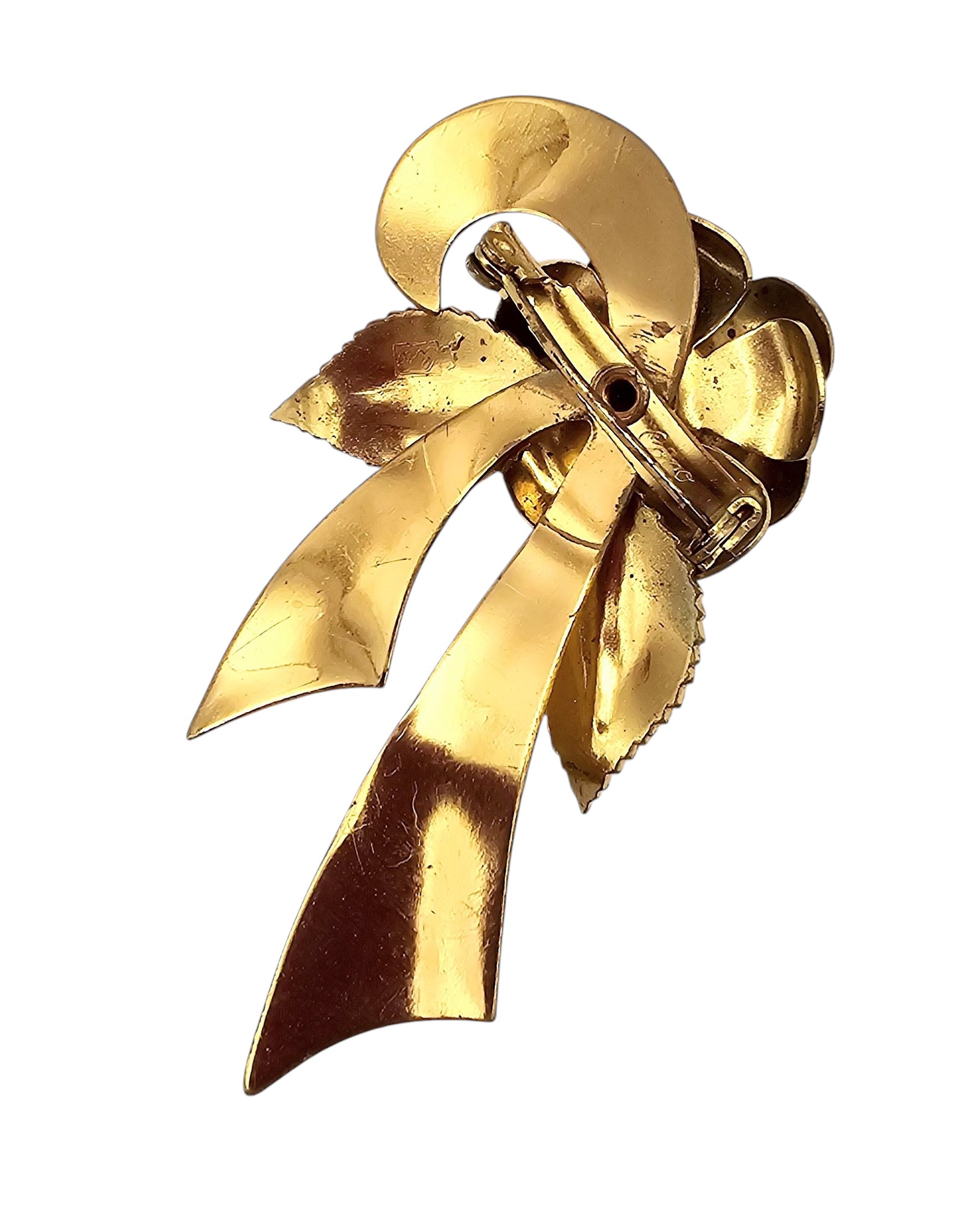 Coro Rhinestone Gold Tone Flower Ribbon Brooch