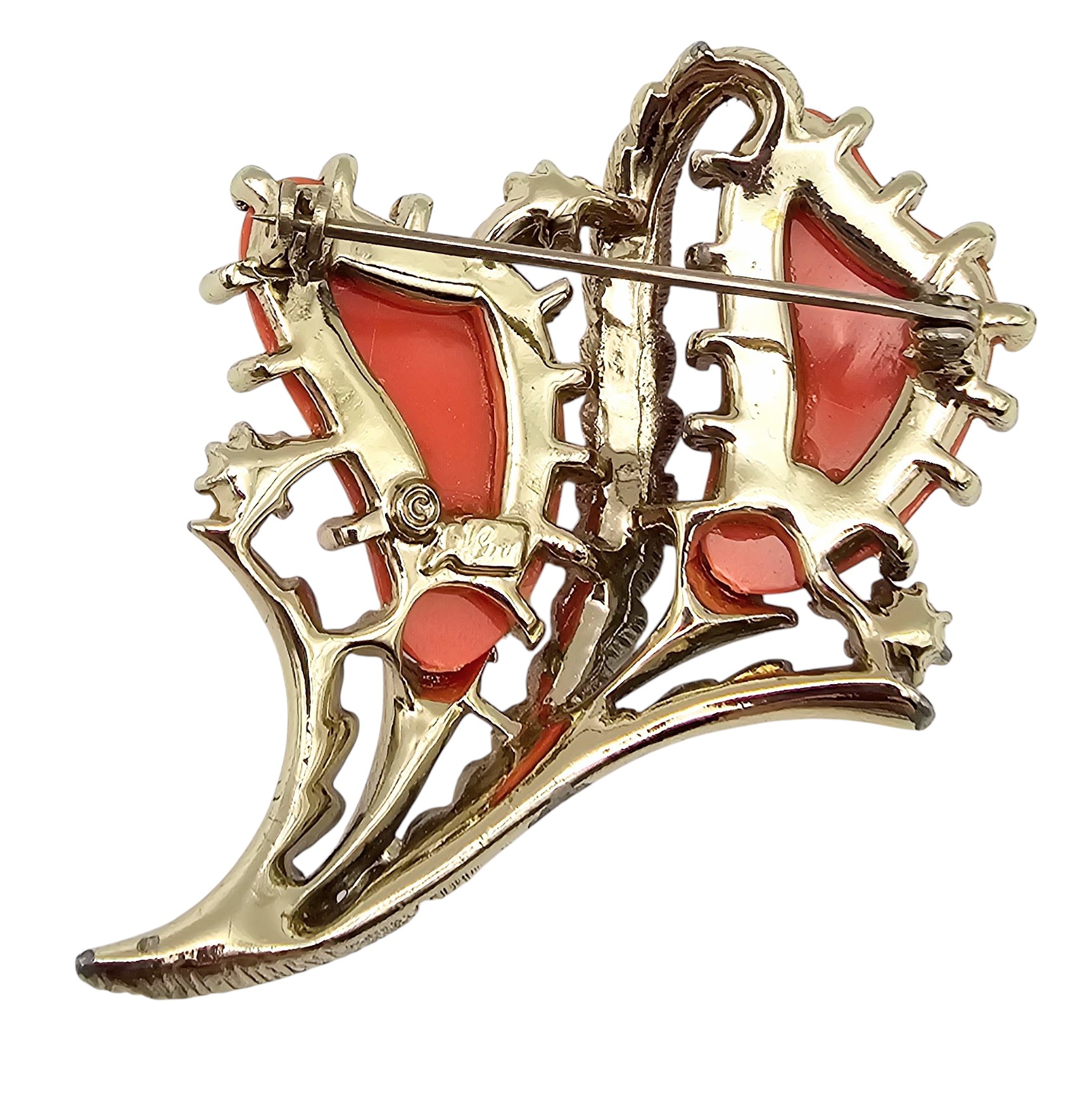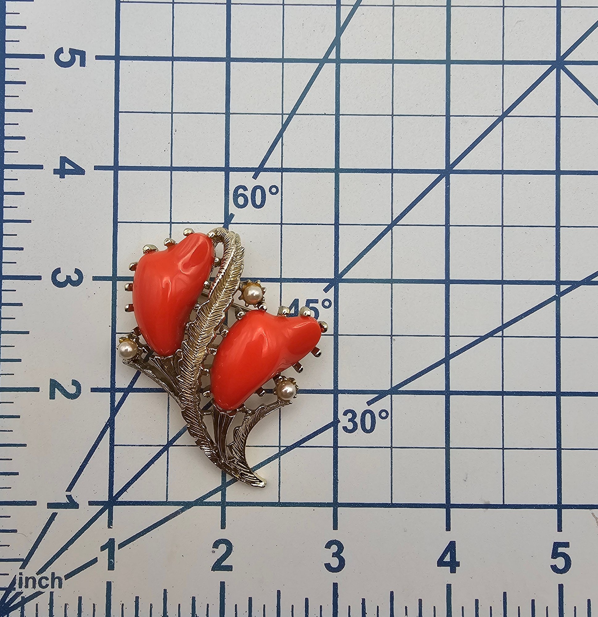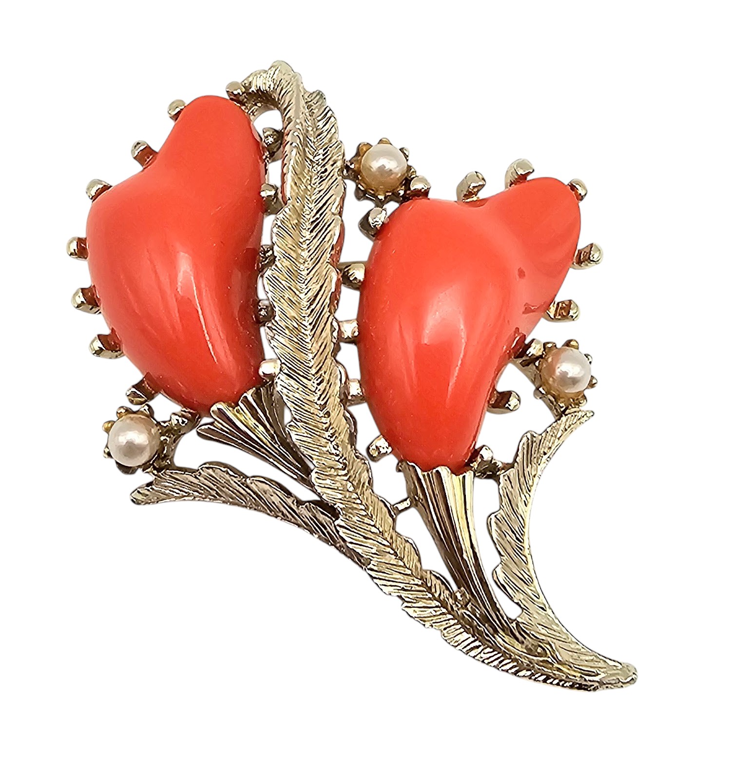 Pegasus Coro Thermoset Faux Pearl Gold Tone Floral Brooch