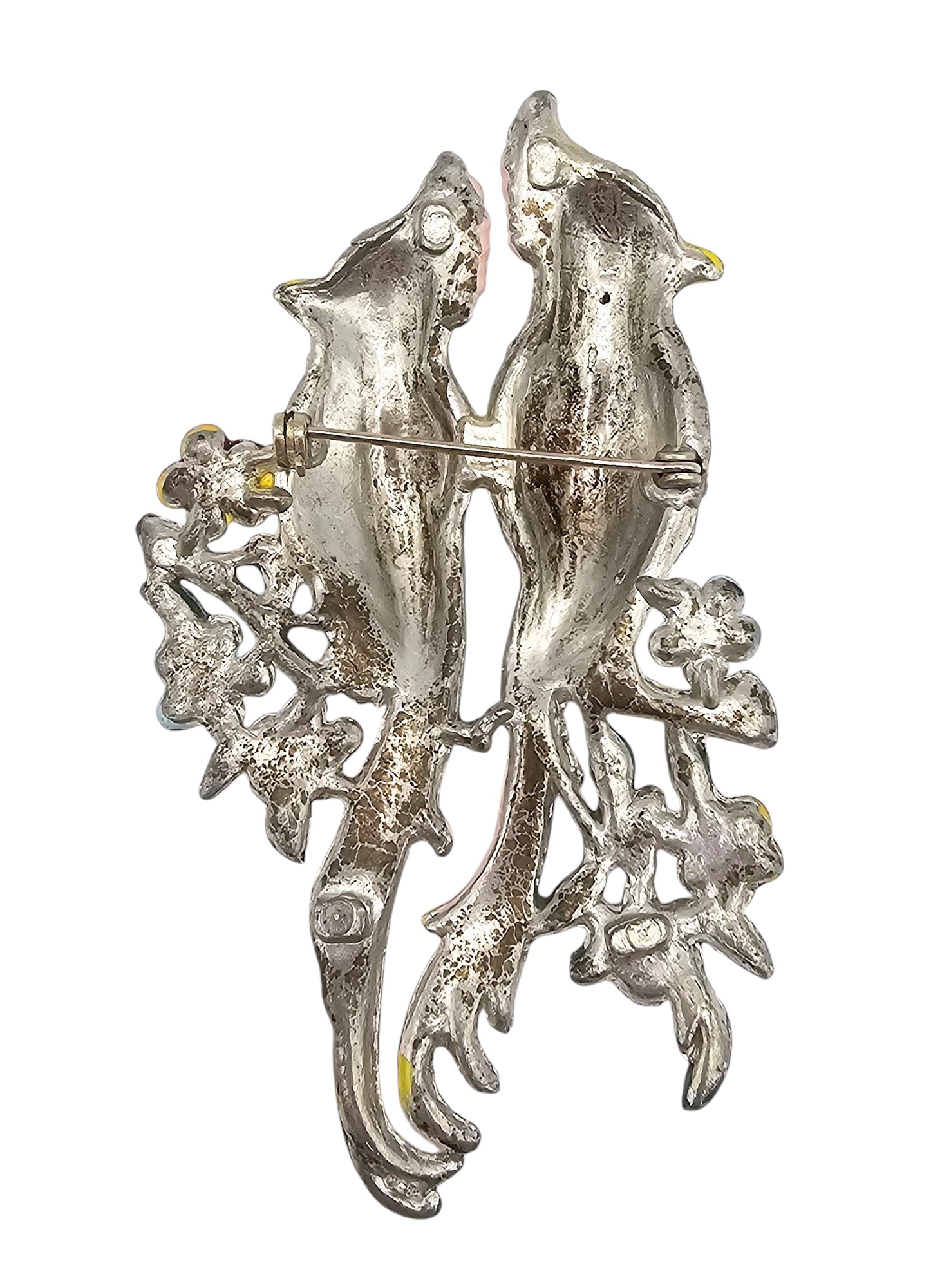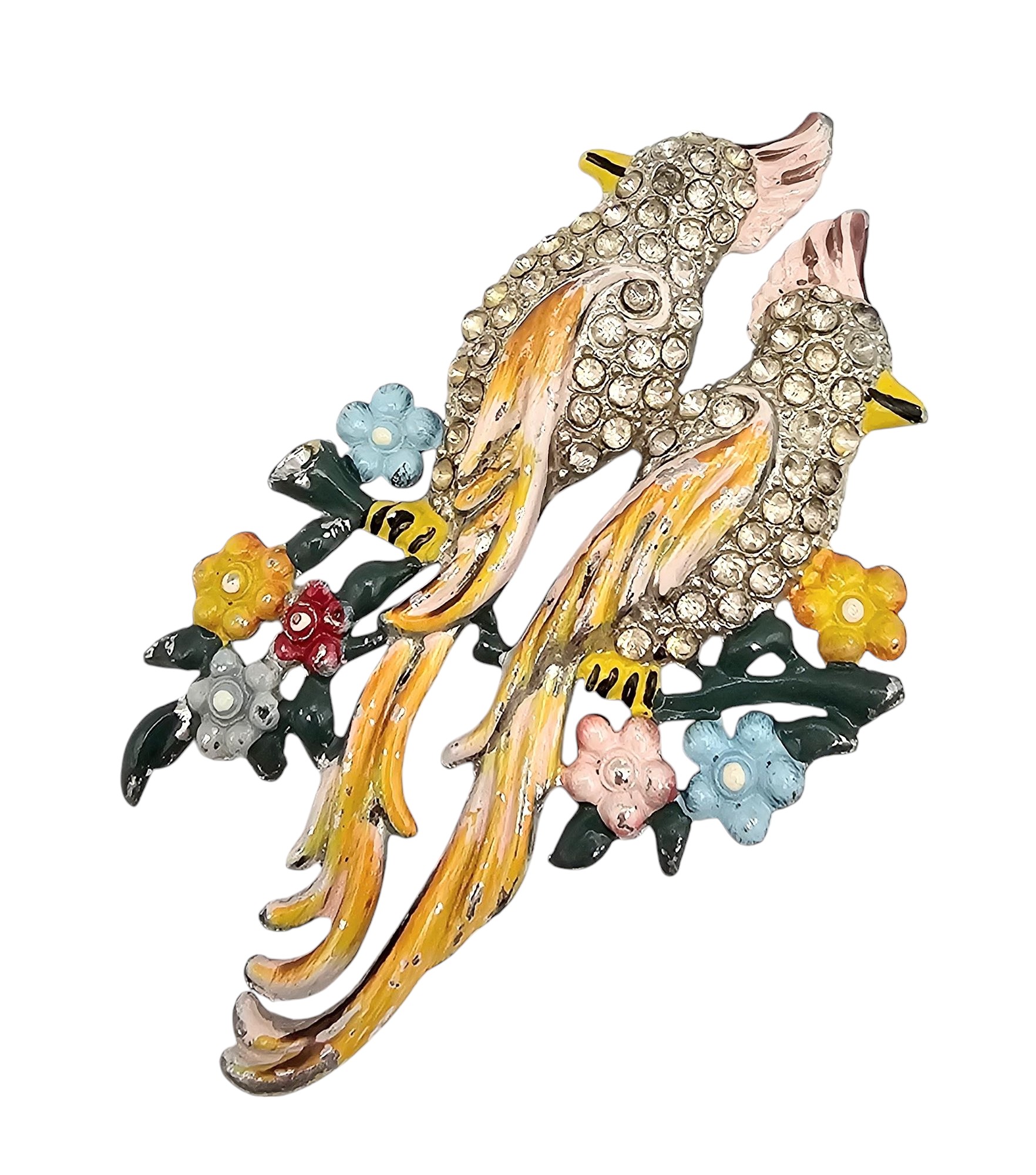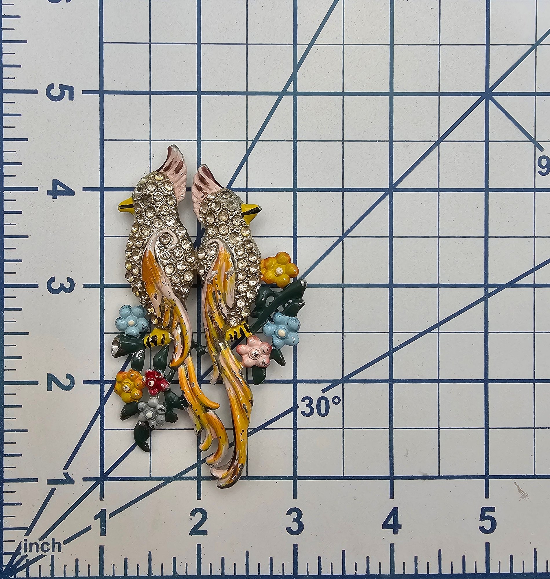 Unsigned Coro Vintage Enamel Rhinestone Cockatoo Bird Brooch